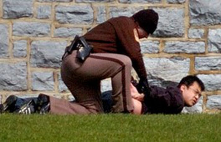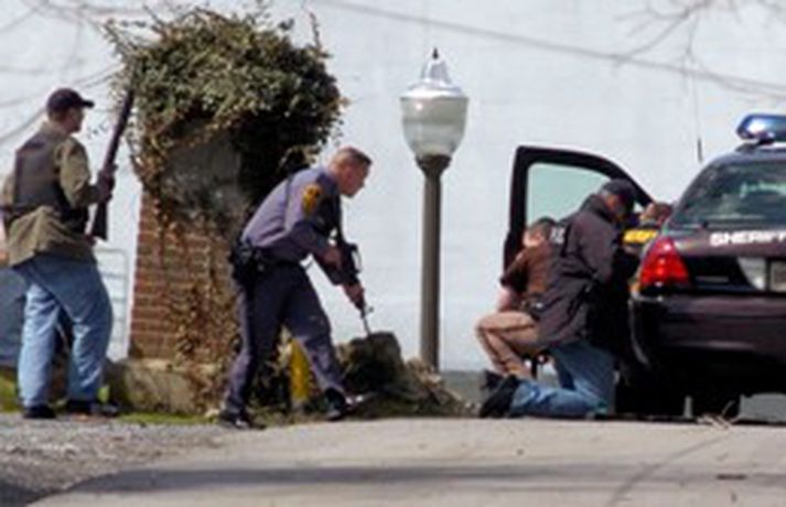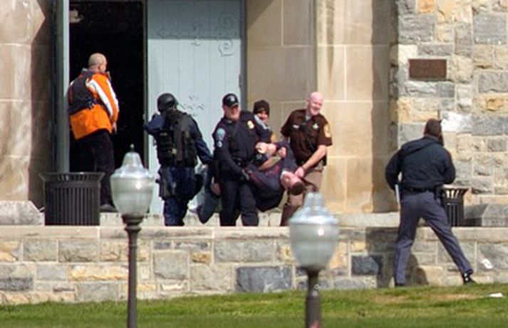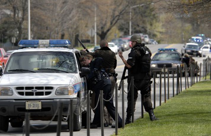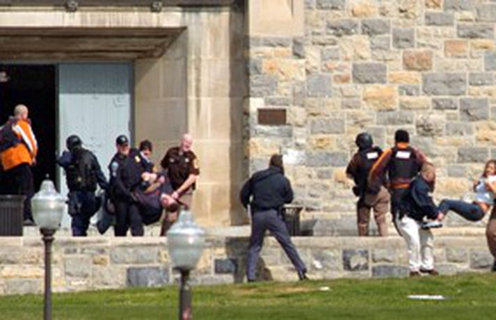 32 látnir eftir skotárás í bandarískum háskóla 16. apríl 2007 16:09 32 eru látnir eftir skotárás í Virgina-tækniháskólanum í Blacksburg í Virginiuríki í Bandaríkjunum í dag. Um 20 manns eru á spítala með skotsár. Talið er að einn maður hafi verið að verki í í tveimur árásum með um tveggja klukkustunda millibili. Samkvæmt nýjustu fregnum var byssumaðurinn ungur karlmaður af asískum uppruna. Hann mun hafa komið inn í skólann að leita að kærustunni sinni, vopnaður skammbyssu og hóf brátt skothríðina. Hann fór meðal annars inn í skólastofu og skaut á nemendur sem þar voru og síðan á heimavist skólans. Dagmar Kristín Hannesdóttir, sem er í doktorsnámi í sálfræði við skólann, sagðist í samtali við Stöð 2 að klukkustund hafi verið liðin af fyrstu kennslustund morgunsins þegar fréttir bárust af því að byssumaður væri laus í skólanum. Hún sagði að yfirmaður hefði komið og beðið um að kennslustofunni yrði læst þegar í stað. Það var gert strax og við tók bið í eina og hálfa klukkustund. Dagmar segir að þann tíma hafi takmarkaðar fréttir af ástandinu borist þeim. Síðan þegar ljóst hafi orðið hversu margir voru drepnir hafi alger skelfing gripið um sig í skólanum. "Ég brotnaði alveg saman, ég hafði ekki áttað mig á því að þetta væri svona rosalegt," sagði Dagmar í samtali við Stöð 2 í kvöld. George W. Bush, forseti Bandaríkjanna, hefur lýst yfir hryllingi vegna skotárásanna. Talsmaður hans sagði hann fyrst og fremst hugsa um fjölskyldur þeirra sem létu lífið og að hann samhryggðist þeim. Óstaðfestar fregnir herma að fleiri kunni að vera látnir en ekki liggur fyrir hvort árásarmaðurinn hafi svipt sig lífi. Sjónvottar sögðu að nemendur jafnvel stokkið út á fjórðu hæð skólans til að forðast árásarmanninn. Ekki er vitað hvort að byssumaðurinn hafi verið nemandi í skólanum. 26 þúsund manns eru í skólanum. Allri kennslu hefur verið hætt í honum og var fólki sem statt var á háskólasvæðinu ráðlagt að læsa að sér og halda sig frá gluggum. Tólf létu lífið í sams konar skotárás í Columbine-framhaldsskólanum í Littleton í Colorado árið 1999. Þá særðust 24. Lögreglumenn sjást hér bera fólk út úr skólanum.APFréttamynd úr CNN í dagAPLögreglumenn á vakt fyrir utan skólann.APLögreglumaður sést hér handtaka einn á skólalóðinni í tengslum við skotárásirnar.APÖnnur mynd úr útsendingu CNN í dag.APLögreglumenn að störfum á skólalóðinni.APSkjámynd úr útsendingu CNN í dag.APLögreglumenn bera saman bækur sínar áður en þeir fara inn á skólalóðina.APLögreglumenn bera sært fólk út úr skólabyggingunni.APLögreglumenn sjást hér bera sært fólk úr einni af byggingum skólans.AP Erlent Mest lesið „Því miður er verklagið þannig“ Innlent Reyndu að fá flugmann Maduros til að aðstoða við handtöku hans Erlent Viðbrögð hjólreiðamannsins að einhverju leyti skiljanleg Innlent Fjárhagsstaðan alvarleg hjá ríkislögreglustjóra Innlent Opnun Brákarborgar frestað enn á ný Innlent Fastur heima í þrjá daga út af engum mokstri Innlent Ögmundur Ísak ráðinn til þingflokks Sjálfstæðisflokksins Innlent „Þetta verður allt saman stórvarasamt í fyrramálið“ Veður Kallar Biden ljótan að utan sem innan og vill hann í fangelsi Erlent Ein hinna reknu segir konunum kastað fyrir ljónin Innlent Fleiri fréttir Reyndu að fá flugmann Maduros til að aðstoða við handtöku hans Kallar Biden ljótan að utan sem innan og vill hann í fangelsi Sjö hundruð drónum og eldflaugum skotið að Úkraínu Telja Kínverja geta fjarstýrt strætisvögnum af sömu gerð og Strætó notar Fordæmalaus eyðilegging vegna Melissu Losa hreðjatakið í eitt ár Útlit fyrir að hnífjafnt verði í Hollandi í fyrsta skipti Svipt barnabótunum vegna flugmiðakaupa Vill hefja tilraunir með kjarnavopn að nýju Fleiri handteknir vegna ránsins í Louvre „Samþykki“ tekið upp í frönskum lögum í kjölfar Pelicot málsins Útlit fyrir nauman sigur frjálslyndra og fyrsta samkynheigða forsætisráðherra landsins Fjórir látnir á Jamaíku og tuttugu í Haítí Hafa játað aðild að ráninu í Louvre Furstadæmin dæla vopnum og kínverskum drónum til Súdan Bandidos-bifhjólagengið bannað í Danmörku Prófuðu annað kjarnorkuknúið vopn Ákærðir fyrir hryðjuverk gegn ísraelska sendiráðinu í Kaupmannahöfn Segja vopnahléið aftur í gildi eftir miklar árásir Fundu flöskuskeyti frá tímum fyrri heimsstyrjaldarinnar Ódæði eftir fall El Fasher: Blóðið sýnilegt úr geimnum Rak nefndina sem átti að taka fyrir viðhafnarsalinn og sigurbogann Fjórtán drepnir í árásum á meinta fíkniefnasmyglara Þriðju kosningarnar á fjórum árum Stærsti fellibylur í sögu Jamaíka Færeyingar marka leið fyrir risastór neðansjávargöng Ísraelsher gerir árás á Gasa Andstæðingar olíuleitar Norðmanna hrósa sigri þrátt fyrir tap Skipar hernum að gera árásir á Gasa Áfrýjar sakfellingu í þagnargreiðslumálinu Sjá meira