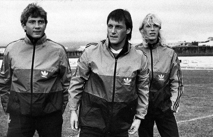 Ásgeir sá besti í sögunni Óskar Ófeigur Jónsson skrifar 15. október 2008 07:00 Ásgeir sést hér ásamt öðrum sem voru heiðraðir í gær. Efri röð frá vinstri: Pétur Pétursson, Rúnar Kristinsson, Arnór Guðjohnsen, Eiður Smári Guðjohnsen, Guðni Bergsson. Neðri röð frá vinstri: Ingi Björn Albertsson sem veitti viðtöku verðlaunum fyrir föður sinn Albert, Ásgeir, Ríkharður Jónsson og Atli Eðvaldsson. Sigurður Jónsson komst ekki. Vísir/Arnþór Sérstök valnefnd á vegum KSÍ og Stöð 2 Sport hefur með aðstoð íslensku þjóðarinnar valið Ásgeir Sigurvinsson besta knattspyrnumann sögunnar úr glæsilegum hópi tíu knattspyrnumanna sem þóttu hafa skarað fram úr á fyrstu 62 árunum í sögu Knattspyrnusambands Íslands. Ásgeir fékk verðlaunin afhent í gær í glæsilegu hófi en þar voru samankomnir allir tíu bestu knattspyrnumenn Íslands frá upphafi fyrir utan Albert heitinn Guðmundsson.Neðar á síðunni má sjá tengil á myndasafn frá ferli ÁsgeirsÁsgeir Sigurvinsson lék sautján tímabil við góðan orðstír í Belgíu (1973-1981) og Vestur-Þýskalandi (1981-1990) þar sem lið hans voru oftast í fremstu röð í sínum deildum. Hans lið enduðu átta sinnum meðal þeirra þriggja efstu og í fjórtán af þessum sautján tímabilum lék hann með liði sem var í hópi sex bestu liða deildarinnar. Ásgeir var tvívegis kjörinn íþróttamaður ársins af samtökum íþróttamanna, árin 1974 og 1984.Ásgeir sést hér í sínum síðasta landsleik gegn Tyrkjum, árið 1989. Ísland vann 2-1.Ásgeir er fæddur og uppalinn í Vestmannaeyjum og var kominn í stórt hlutverk hjá ÍBV árið 1972 þegar hann var aðeins á sínu sautjánda ári. Ásgeir gerðist síðan atvinnumaður hjá belgíska liðinu Standard Liege um mitt sumar 1973, þá aðeins 18 ára gamall. Hann náði strax að tryggja sér fast sæti í liðinu. Ásgeir lék með Standard í átta tímabil eða fram á sumar 1981. Sumarið 1981 gekk hann hins vegar til liðs við þýska stórveldið Bayern München þar sem léku margar stærstu stjörnur þýska boltans. Ásgeir fékk þar fá tækifæri og ákvað að yfirgefa félagið eftir aðeins eitt tímabil. Ásgeir valdi að semja við Stuttgart og við tók farsæll og glæsilegur ferill hans á Neckarstadion. Ásgeir var lengi fyrirliði Stuttgart og þótti einn besti leikmaður í þýska boltanum í mörg ár.Ásgeir lék við frábæran orðstír hjá Stuttgart og var valinn besti leikmaður þýsku deildarinnar árið 1984.Hápunktur ferils Ásgeirs var án nokkurs vafa tímabilið 1983-1984 þegar hann varð lykilmaður á bak við það að Stuttgart tryggði sér meistaratitilinn í þýsku Bundesligunni. Þetta var fyrsti meistaratitill félagsins í 32 ár og eftir tímabilið var Ásgeir kosinn besti leikmaðurinn af öðrum leikmönnum í deildinni. Ásgeir skoraði 12 mörk í 31 leik á tímabilinu og var aðalarkitektinn á bak við sóknarleik Stuttgart-liðsins. Ásgeir náði því einnig að verða bikarmeistari í þremur löndum, Íslandi (ÍBV 1972), Belgíu (Standard Liege 1981) og Vestur-Þýskalandi (Bayern München 1982). Eyjapeyinn lék alls 481 deildarleik á ferlinum, 21 með ÍBV (7 mörk), 249 með Standard Liege (57 mörk), 17 með Bayern München (1 mark) og 194 með Stuttgart (39 mörk). Ásgeir náði að skora 103 mörk í þessum leikjum en hundraðasta deildarmarkið hans kom í 4-0 stórsigri á Nürnberg 13. september 1988. Ásgeir spilaði alls 60 leiki í Evrópukeppni fyrir sín félög og skoraði í þeim tólf mörk.Ásgeir sést hér ungur að árum í leik með ÍBV.Ásgeir lék alls 45 landsleiki á ferlinum en þegar hann lék þann fyrsta á móti Dönum 3. júlí 1972 var hann yngsti landsliðsmaður Íslands frá upphafi eða aðeins 17 ára og 56 daga gamall. Ásgeir lék í raun alltof fáa landsleiki á sínum ferli en hann lék þann 45. og síðasta í 2-1 sigri á Tyrkjum 20. september 1989. Ásgeir skoraði fimm mörk fyrir landsliðið. Ásgeir endaði feril sinn á toppnum þá 35 ára gamall þegar hann var með samningstilboð úr mörgum áttum. Ásgeir lék sinn síðasta leik með Stuttgart 12. maí 1990. Ásgeir Sigurvinsson var stórt nafn í evrópskri knattspyrnu á sínum tíma. Franz Beckenbauer, landsliðseinvaldur Þýskalands á þeim tíma, sagði að hann hefði valið Ásgeir í þýska landsliðið og þegar Stuttgart mætti Napoli í úrslitaleikjum UEFA-bikarsins 1989 var leikjunum stillt upp sem einvígi á milli Ásgeirs og Diego Armando Maradona. Hæfileikar Ásgeirs á knattspyrnuvellinum voru vissulega einstakir. Yfirsýn hans og sendingageta gat splundrað vörn mótherjanna á svipstundu og vinstri fóturinn var hans þekktasta vopn enda bjó Ásgeir yfir mikilli skothörku og skottækni. Ásgeir skoraði sem dæmi ófá stórglæsileg mörk á sínum farsæla ferli og einstakur ferill hans hefur nú tryggt honum útnefninguna besti knattspyrnumaður Íslands fyrr og síðar.Maí 1975, knattspyrnulandslið karla á æfingu á grasvellinum í Kópavogi. Ásgeir Sigurvinsson sýnir leikni sína með boltann.Júlí 1973. Fótboltaleikur á milli Íslands og Austur Þýskalands á Laugardalsvelli. Guðni Kjartansson landsliðsmaður til hægri og Ásgeir Sigurvinsson til vinstri.Ásgeir með verðlaunagripinn sem íþróttamaður ársins 1984. F.v. Ásgeir Sigurvinsson, Tanja Rut Ásgeirsdóttir og Ásta Guðmundsdóttir.Ásgeir Sigurvinsson klæddur búningi VfB Stuttgart.1979. Hér skorar Ásgeir Sigurvinsson fyrsta mark í leik Charleroy og Standard Liège, leiknum lauk 2-1 fyrir Standard Liège.Júlí 1973. Fótboltaleikur á milli Íslands og Austur Þýskalands á Laugardalsvelli. Íslendingar í dökkum búningum. Guðni Kjartansson t.v. og Ásgeir Sigurvinsson t.h. Ásgeir skallar boltann.Ásgeir Sigurvinsson.Ásgeir Sigurvinsson, landsliðsþjálfari, stjórnar æfingu á Laugardalsvellinum.Ásg