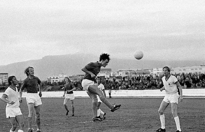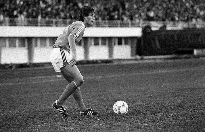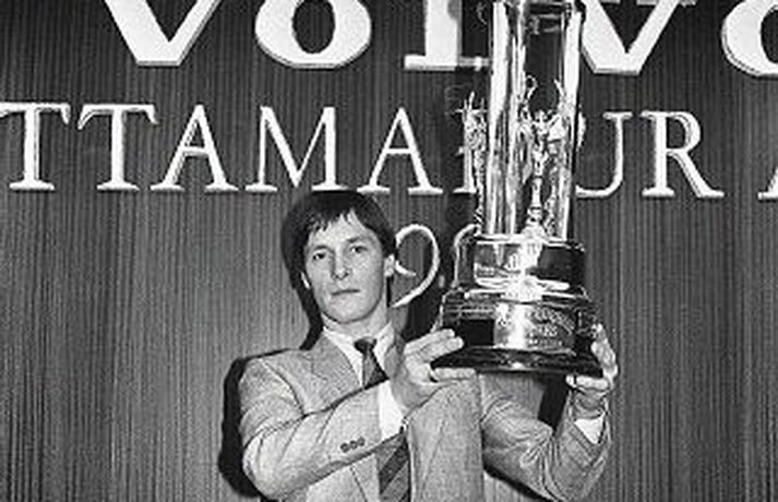 Sérstök valnefnd á vegum KSÍ og Stöð 2 Sport hefur með aðstoð íslensku þjóðarinnar valið Ásgeir Sigurvinsson besta knattspyrnumann sögunnar úr glæsilegum hópi tíu knattspyrnumanna sem þóttu hafa skarað fram úr á fyrstu 62 árunum í sögu Knattspyrnusambands Íslands. Ásgeir fékk verðlaunin afhent í gær í glæsilegu hófi en þar voru samankomnir allir tíu bestu knattspyrnumenn Íslands frá upphafi fyrir utan Albert heitinn Guðmundsson.Neðar á síðunni má sjá tengil á myndasafn frá ferli ÁsgeirsÁsgeir Sigurvinsson lék sautján tímabil við góðan orðstír í Belgíu (1973-1981) og Vestur-Þýskalandi (1981-1990) þar sem lið hans voru oftast í fremstu röð í sínum deildum. Hans lið enduðu átta sinnum meðal þeirra þriggja efstu og í fjórtán af þessum sautján tímabilum lék hann með liði sem var í hópi sex bestu liða deildarinnar. Ásgeir var tvívegis kjörinn íþróttamaður ársins af samtökum íþróttamanna, árin 1974 og 1984.Ásgeir sést hér í sínum síðasta landsleik gegn Tyrkjum, árið 1989. Ísland vann 2-1.Ásgeir er fæddur og uppalinn í Vestmannaeyjum og var kominn í stórt hlutverk hjá ÍBV árið 1972 þegar hann var aðeins á sínu sautjánda ári. Ásgeir gerðist síðan atvinnumaður hjá belgíska liðinu Standard Liege um mitt sumar 1973, þá aðeins 18 ára gamall. Hann náði strax að tryggja sér fast sæti í liðinu. Ásgeir lék með Standard í átta tímabil eða fram á sumar 1981. Sumarið 1981 gekk hann hins vegar til liðs við þýska stórveldið Bayern München þar sem léku margar stærstu stjörnur þýska boltans. Ásgeir fékk þar fá tækifæri og ákvað að yfirgefa félagið eftir aðeins eitt tímabil. Ásgeir valdi að semja við Stuttgart og við tók farsæll og glæsilegur ferill hans á Neckarstadion. Ásgeir var lengi fyrirliði Stuttgart og þótti einn besti leikmaður í þýska boltanum í mörg ár.Ásgeir lék við frábæran orðstír hjá Stuttgart og var valinn besti leikmaður þýsku deildarinnar árið 1984.Hápunktur ferils Ásgeirs var án nokkurs vafa tímabilið 1983-1984 þegar hann varð lykilmaður á bak við það að Stuttgart tryggði sér meistaratitilinn í þýsku Bundesligunni. Þetta var fyrsti meistaratitill félagsins í 32 ár og eftir tímabilið var Ásgeir kosinn besti leikmaðurinn af öðrum leikmönnum í deildinni. Ásgeir skoraði 12 mörk í 31 leik á tímabilinu og var aðalarkitektinn á bak við sóknarleik Stuttgart-liðsins. Ásgeir náði því einnig að verða bikarmeistari í þremur löndum, Íslandi (ÍBV 1972), Belgíu (Standard Liege 1981) og Vestur-Þýskalandi (Bayern München 1982). Eyjapeyinn lék alls 481 deildarleik á ferlinum, 21 með ÍBV (7 mörk), 249 með Standard Liege (57 mörk), 17 með Bayern München (1 mark) og 194 með Stuttgart (39 mörk). Ásgeir náði að skora 103 mörk í þessum leikjum en hundraðasta deildarmarkið hans kom í 4-0 stórsigri á Nürnberg 13. september 1988. Ásgeir spilaði alls 60 leiki í Evrópukeppni fyrir sín félög og skoraði í þeim tólf mörk.Ásgeir sést hér ungur að árum í leik með ÍBV.Ásgeir lék alls 45 landsleiki á ferlinum en þegar hann lék þann fyrsta á móti Dönum 3. júlí 1972 var hann yngsti landsliðsmaður Íslands frá upphafi eða aðeins 17 ára og 56 daga gamall. Ásgeir lék í raun alltof fáa landsleiki á sínum ferli en hann lék þann 45. og síðasta í 2-1 sigri á Tyrkjum 20. september 1989. Ásgeir skoraði fimm mörk fyrir landsliðið. Ásgeir endaði feril sinn á toppnum þá 35 ára gamall þegar hann var með samningstilboð úr mörgum áttum. Ásgeir lék sinn síðasta leik með Stuttgart 12. maí 1990. Ásgeir Sigurvinsson var stórt nafn í evrópskri knattspyrnu á sínum tíma. Franz Beckenbauer, landsliðseinvaldur Þýskalands á þeim tíma, sagði að hann hefði valið Ásgeir í þýska landsliðið og þegar Stuttgart mætti Napoli í úrslitaleikjum UEFA-bikarsins 1989 var leikjunum stillt upp sem einvígi á milli Ásgeirs og Diego Armando Maradona. Hæfileikar Ásgeirs á knattspyrnuvellinum voru vissulega einstakir. Yfirsýn hans og sendingageta gat splundrað vörn mótherjanna á svipstundu og vinstri fóturinn var hans þekktasta vopn enda bjó Ásgeir yfir mikilli skothörku og skottækni. Ásgeir skoraði sem dæmi ófá stórglæsileg mörk á sínum farsæla ferli og einstakur ferill hans hefur nú tryggt honum útnefninguna besti knattspyrnumaður Íslands fyrr og síðar.Maí 1975, knattspyrnulandslið karla á æfingu á grasvellinum í Kópavogi. Ásgeir Sigurvinsson sýnir leikni sína með boltann.Júlí 1973. Fótboltaleikur á milli Íslands og Austur Þýskalands á Laugardalsvelli. Guðni Kjartansson landsliðsmaður til hægri og Ásgeir Sigurvinsson til vinstri.Ásgeir með verðlaunagripinn sem íþróttamaður ársins 1984. F.v. Ásgeir Sigurvinsson, Tanja Rut Ásgeirsdóttir og Ásta Guðmundsdóttir.Ásgeir Sigurvinsson klæddur búningi VfB Stuttgart.1979. Hér skorar Ásgeir Sigurvinsson fyrsta mark í leik Charleroy og Standard Liège, leiknum lauk 2-1 fyrir Standard Liège.Júlí 1973. Fótboltaleikur á milli Íslands og Austur Þýskalands á Laugardalsvelli. Íslendingar í dökkum búningum. Guðni Kjartansson t.v. og Ásgeir Sigurvinsson t.h. Ásgeir skallar boltann.Ásgeir Sigurvinsson.Ásgeir Sigurvinsson, landsliðsþjálfari, stjórnar æfingu á Laugardalsvellinum.Ásgeir á landsliðsæfingu sem þjálfari.Ísland - Færeyjar í undankeppni EM. Fór fram á Þórshafnarvellií Þórshöfn í Færeyjum. Ísland sigraði 2-1. Eiður Smári Guðjohnsen og Pétur Marteinsson skoruðu mörk Íslands.Ásgeir Sigurvinsson Íþróttamaður ársins 1984.Ásgeir Sigurvinsson Íþróttamaður ársins 1984.26. maí 1984. Ásgeir í leik með Stuttgart.Desember 1981. Æfing hjá knattspynufélaginu Bayern München.1980-1990. Landsliðsæfing í knattspyrnu. 
