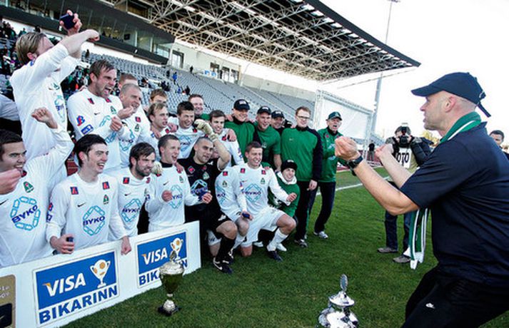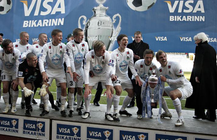 Breiðablik varð í dag bikarmeistari í fyrsta sinn í sögu karlaliðs félagsins eftir að liðið vann 5-4 sigur á Fram í vítakeppni eftir að liðin gerðu 2-2 jafntefli. Daníel Rúnarsson, ljósmyndari var á staðnum og tók margar skemmtilegar myndir af sigurgleði Breiðabliks. Breiðablik varð ellefta félagið til þess að verða bikarmeistari en það voru liðin 38 ár síðan að Blikar komust í sinn fyrsta bikarúrslitaleik og þann eina fyrir leikinn í dag. Kári Ársælsson fyrirliði Blika með bikarinn.Mynd/DaníelGuðmann Þórisson fagnar markaskoraranum Alfreð Finnbogasyni með því að hefja hann á loft.Mynd/DaníelGuðmundur Pétursson var í bikarmeistaraliði annað árið í röð.Mynd/DaníelBikarinn í höfn. Blikar fagna sigri í vítakeppninni.Mynd/DaníelÓlafur Helgi Kristjánsson, þjálfari Breiðabliks, stjórnaði sigursöngnum í leikslok.Mynd/DaníelÞað var mikið fjör í Blikaklefanum eftri leik.Mynd/DaníelTveggja marka maðurinn Alfreð Finnbogason var mjög sáttur með bikarinn.Mynd/DaníelIngvar Þór Kale ver hér vítaspyrnu Hjálmars Þórarinssonar.Mynd/DaníelBlikar fögnuðu sínum fyrsta stóra titli í karlaflokki.Mynd/DaníelAlfreð Finnbogason býr sig undir að taka vítaspyrnu.Mynd/DaníelGuðnmundur Pétursson lét finna fyrir sér í leiknum. Hér er hann með Kristján Hauksson og Auðun Helgason á hælunum.Mynd/DaníelArnar Grétarsson spilaði hugsanlega síðasta leikinn sinn á ferlinum.Mynd/DaníelIngvar Þór Kale kyssir bikarinn í leikslok.Mynd/DaníelÞað gekk mikið á í fagnaðarlátum Blika í leikslok.Mynd/DaníelArnór Sveinn Aðalsteinsson á léttu nótunum eftir leik.Mynd/DaníelKristinn Steindórsson var ánægður með daginn.Mynd/DaníelBikarinn að fara á loft í fyrsta sinn í sögu karlaliðs Breiðabliks.Mynd/Daníel