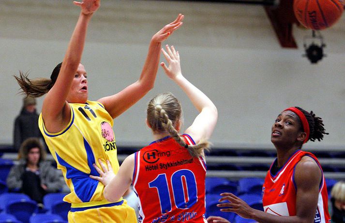 Kvennalið Fjölnis vann mikilvægan sigur á Snæfelli í gær í baráttunni fyrir sæti sínu í Iceland Express deild kvenna. Þetta var fyrsti sigur Fjölnis í B-deildinni en eftir hann eru Fjölnir og Grindavík jöfn að stigum i tveimur neðstu sætunum. Þetta var jafnframt fyrsti sigur Fjölnis á Snæfellsliðinu í vetur en Snæfell hafði unnið þrjá fyrstu leiki liðanna í vetur þar á meðal með 22 stiga mun þegar liðið mættust síðast á heimavelli Fjölnis. Snæfell er áfram á toppi B-deildarinnar með átta stigum meira en Fjölnir. Stefán Karlsson, ljósmyndari Fréttablaðsins og Vísis, var á leiknum í Grafarvogi í gærkvöldi. Myndirnar má sjá í albúminu hér að neðan. Hægt er að sjá myndirnar stærri með því að smella á þær.