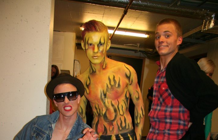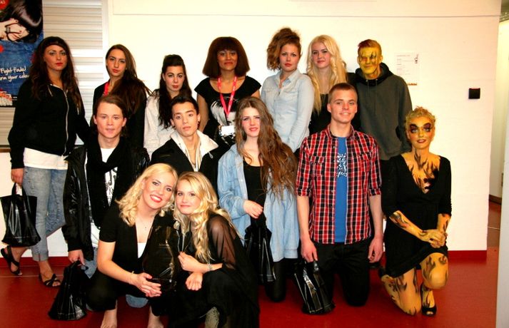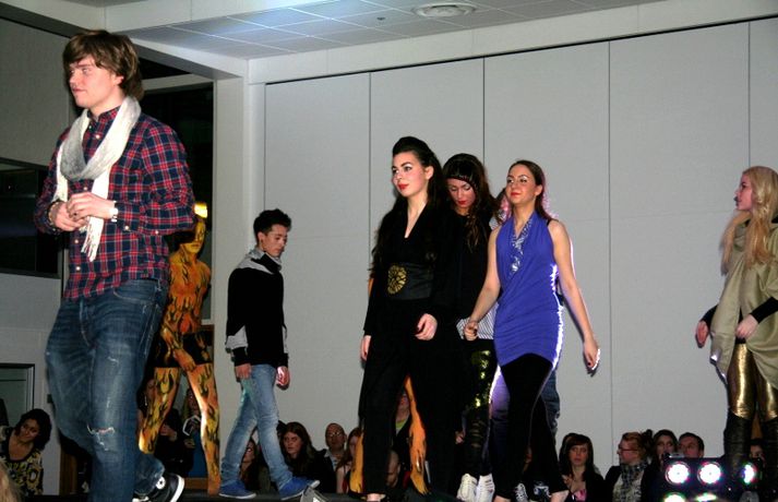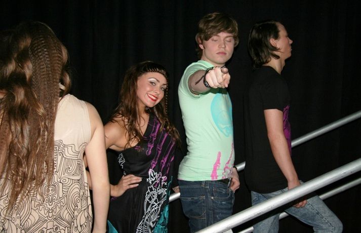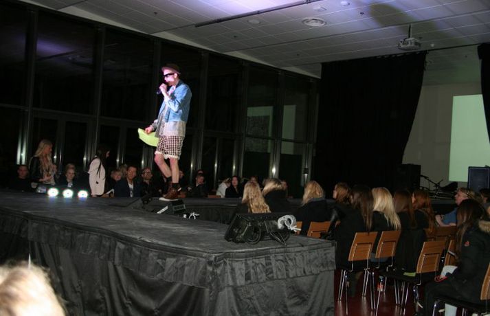 Meðfylgjandi myndir voru teknar á tískusýningu sem fram fór í Fjölbrautaskólanum við Ármúla á fimmtudaginn var. Haffi haff sló í gegn sem kynnir á meðan nemendur fjölbrautaskólans sýndu fatnað frá Volcano, Nikita, Sautján, Kiss, Brim, Naked ape, Gestný Design, Nostalgía, Spútnik og E-label. Nemar úr Tækniskólanum sáu alfarið um hár sýningarfólksins sem fékk gjafapoka frá Schwarzkopf að launum eftir vel heppnaða sýningu.Eins og sjá má á myndunum sátu Ásgeir Kolbeins og Arnar Gauti á fremsta bekk.MYNDIR/Karen Guðjónsdóttir