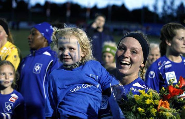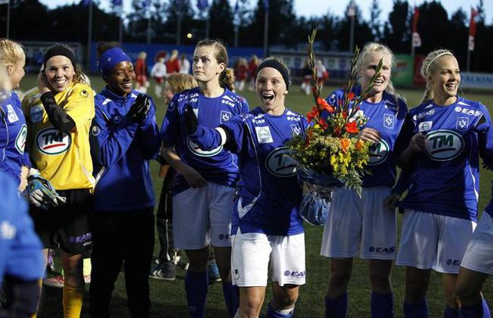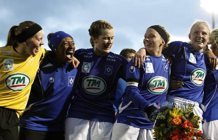 Stjarnan sjöunda félagið sem verður Íslandsmeistari hjá konunum - myndir Óskar Ófeigur Jónsson skrifar 31. ágúst 2011 08:30 Mynd/Stefán Stjörnukonur fögnuðu fyrsta Íslandsmeistaratitli félagsins eftir 3-0 sigur á Aftureldingu í gær. Stjarnan er sjöunda félagið sem nær að verða Íslandsmeistari kvenna í fótbolta en það eru liðin 18 ár síðan að nýtt nafn var skrifað á bikarinn. KR vann Íslandsbikarinn í fyrsta skiptið árið 1993 og varð þá sjötta félagið til að vinna hann en síðan hafa bara Breiðablik (6 sinnum), Valur (6 sinnum) og KR (6 sinnum) unnið Íslandsmeistaratitilinn hjá konunum. Stjarnan hefur unnið þrettán leiki í röð í Pepsi-deild kvenna og náð í 45 af 48 mögulegum stigum í deildinni í sumar. Þær eru því búnar að tryggja sér titilinn þótt að það eigi enn eftir að spila tvær umferðir af mótinu. Stefán Karlsson, ljósmyndari Fréttablaðsins og Vísis, var á leik Stjörnunnar og Aftureldingar á Stjörnuvellinum í gær og náði þessum skemmtilegu myndum. Myndirnar má sjá í albúminu hér að neðan. Hægt er að sjá myndirnar stærri með því að smella á þær. Pepsi Max-deild kvenna Mest lesið „Örugglega nokkrir Fantasy-þjálfarar ósáttir“ Enski boltinn „Haaland er þetta góður“ Enski boltinn Kærastan tók eftir því að eitthvað var að Handbolti Tilþrif 5. umferðar: Jukic stal senunni Körfubolti „Það verður hundleiðinlegt að spila við Val“ Íslenski boltinn Lygilega jafnt á toppnum eftir sigur AC Milan Fótbolti Ítalinn hoppaði upp fyrir Alcaraz eftir sigur í París Sport Uppgjörið: Þýskaland - Ísland 29-31 | Svöruðu skellinum með frábærum sigri Handbolti Hólmbert skoraði í Suður-Kóreu og stjórnaði sigursöngvum eftir leik Fótbolti Hermann tekinn við Val Íslenski boltinn Fleiri fréttir „Það verður hundleiðinlegt að spila við Val“ Hermann tekinn við Val Fóru nýja leið í ár og auglýstu eftir þjálfara: Tommy Nielsen ráðinn Pablo og Óskar Örn inn í þjálfarateymi Hauka FH-ingar kveðja Kjartan Henry Tölur úr Bestu: Bjartur Bjarmi fór í flestar tæklingar af öllum Gísli semur við Skagamenn Óskar Smári tekur við Stjörnunni Bretinn ráðinn tæknilegur ráðgjafi hjá Val Fram þvertekur fyrir metnaðarleysi og leitar að nýjum þjálfurum Tölur úr Bestu: Hallgrímur Mar bjó til langflest færi „Mjög sáttur með samninginn“ „Hefði séð eftir því alla ævi“ Magnús Már í viðræðum við HK Uppgjörið: Ísland - Norður-Írland 3-0 | Áfram hluti af elítunni Tölur úr Bestu 2025: Klúðraði langflestum dauðafærum í sumar FH bíður með að tilkynna nýjan þjálfara Óskar Hrafn fer ekki fet Birnir frá Akureyri í Garðabæ Hættir með Fram Heimir kynntur til leiks í Árbænum Túfa rekinn frá Val Leyndarmáli ljóstrað upp þegar Heimir og Björn kvöddu Leikmenn kusu Patrick og Guðmund Sjáðu bananabombu Antons Loga og önnur síðustu mörk tímabilsins Uppgjörið: Stjarnan - Breiðablik 2-3 | Stjarnan í Evrópu þrátt fyrir tap „Held að ég geti ekki gert mikið meira“ Uppgjörið: Vestri - KR 1-5 | KR bjargaði sér og sendi Vestra í Lengjudeildina Uppgjörið: ÍA - Afturelding 1-0 | Afturelding staldraði stutt við í efstu deild Uppgjörið: Víkingur - Valur 2-0 | Meistararnir klára tímabilið með stæl Sjá meira