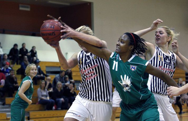 KR-konur hafa nú tapað þremur leikjum í röð í Iceland Express deild kvenna og eru komnar alla leið niður í fjórða sæti deildarinnar eftir að níundu umferðinni lauk í gær. KR tapaði síðast fyrir Njarðvík á heimavelli sínum á þriðjudagskvöldið en tveir af þessum þremur tapleikjum KR-kvenna hafa komið í DHL-höllinni. KR-liðið varð meistari meistaranna og vann síðan fimm fyrstu leiki sína í deildinni en síðan hefur lítið gengið hjá liðinu. Njarðvíkurliðið fór upp í annað sætið með þessum sigri en þetta var fyrsti sigur liðsins í Vesturbænum í tæpan áratug. Njarðvíkurkonur komu öllum á óvart í fyrra og ætla að fylgja því eftir í vetur. Stefán Karlsson, ljósmyndari Fréttablaðsins og Vísis, var á leiknum í DHL-höllinni og náði skemmtilegu myndum. Myndirnar má sjá í albúminu hér að neðan. Hægt er að sjá myndirnar stærri með því að smella á þær.