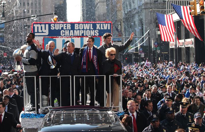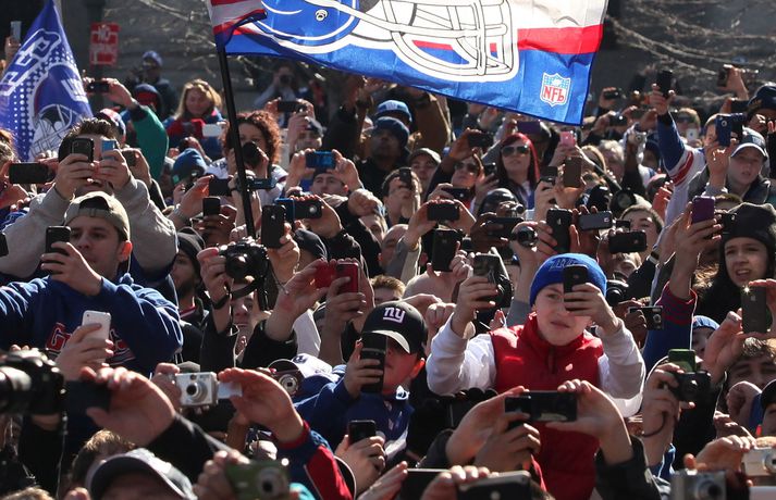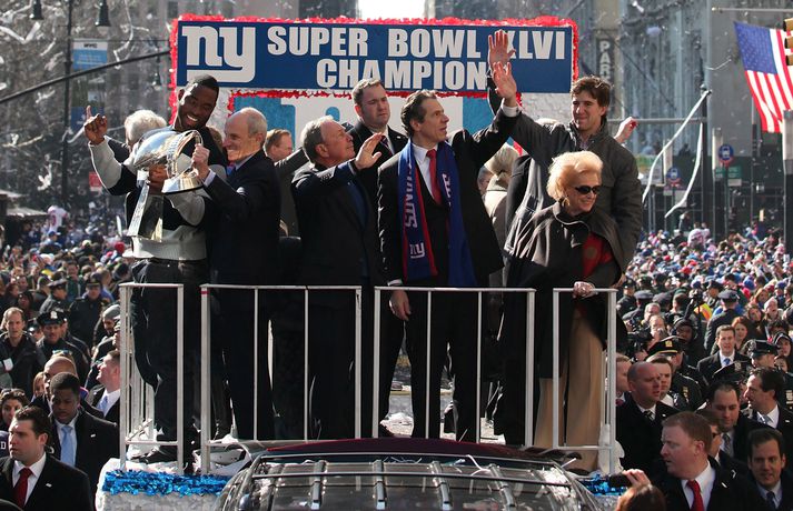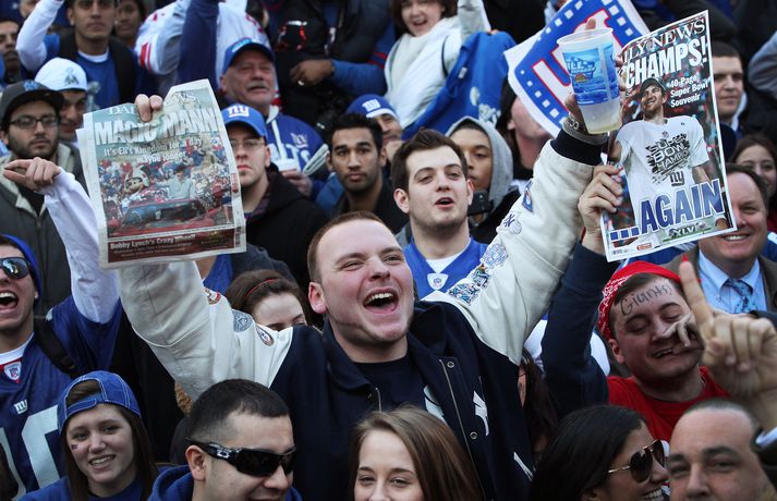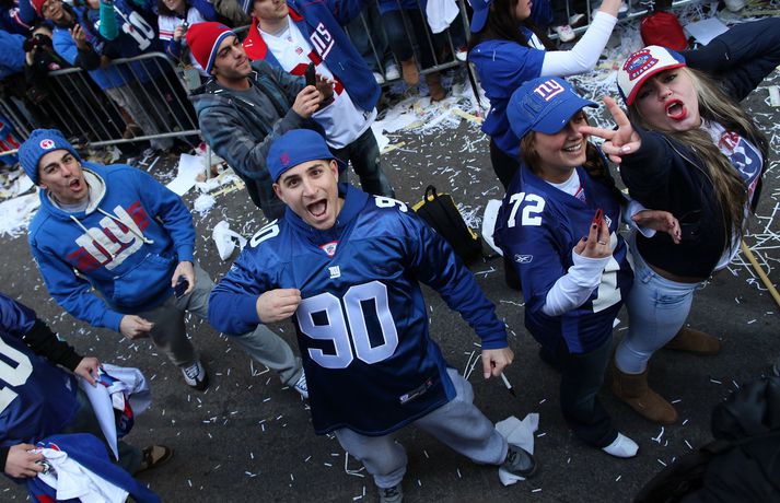 New York Giants vann glæstan sigur á New England Patriots í Super Bowl-leiknum um helgina. Sigur liðsins var dramatískur og ekki öruggur fyrr en á lokasekúndu leiksins. Leikmenn Giants fóru í skrúðgöngu um stræti New York-borgar í dag þar sem ótrúlegur mannfjöldi fagnaði liðinu. Hægt er að sjá myndir af sigurhátíðinni í albúminu hér að neðan.