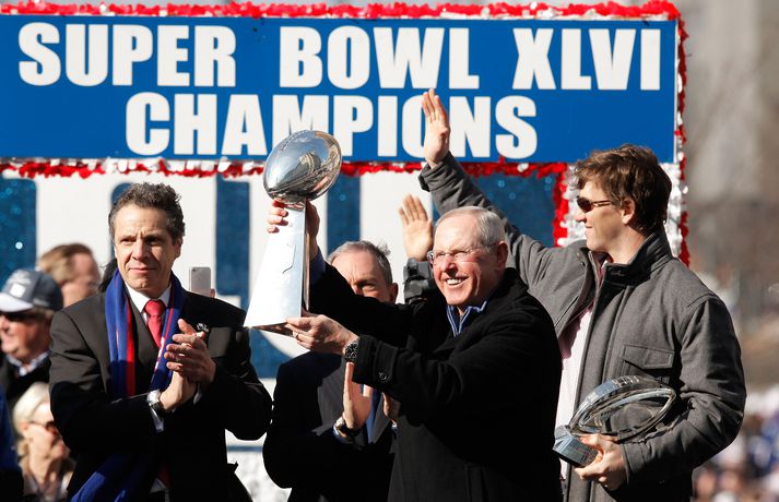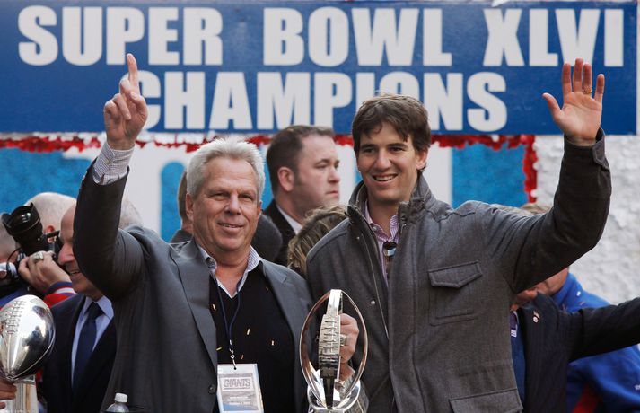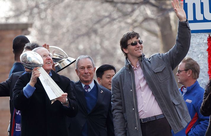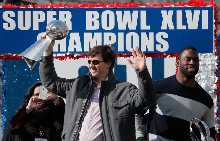 Leikmenn Giants með sigurhátíð í New York - myndir 7. febrúar 2012 23:30 Eli Manning, leikstjórnandi Giants, heldur á Vince Lombardi-bikarnum. Nordic Photos/getty images New York Giants vann glæstan sigur á New England Patriots í Super Bowl-leiknum um helgina. Sigur liðsins var dramatískur og ekki öruggur fyrr en á lokasekúndu leiksins. Leikmenn Giants fóru í skrúðgöngu um stræti New York-borgar í dag þar sem ótrúlegur mannfjöldi fagnaði liðinu. Hægt er að sjá myndir af sigurhátíðinni í albúminu hér að neðan. NFL Mest lesið „Ísland í hópi með Norður-Kóreu og Íran“ Sport Alfreð klæddist kvennatreyjunni á leiknum við Ísland Handbolti Dönsk landsliðskona eignaðist barn tólf vikum fyrir tímann Handbolti Loksins þorði einhver í Kolbein sem stígur aftur inn í hringinn Sport Fanndís hefur ekkert heyrt frá Val og íhugar að hætta Íslenski boltinn „Búnt á skenkinn, Halli Egils á vegginn“ Sport Kærastan tók eftir því að eitthvað var að Handbolti Forðuðu sér frá bráðsmitandi óléttu í Fram Handbolti Segir allt tal um leiðinlegan fótbolta hjá Arsenal heimskulegt Enski boltinn Viðtökurnar á Anfield munu ekki breyta neinu Fótbolti Fleiri fréttir Spence og van de Ven báðust afsökunar Telja United mun líklegra til að enda í sjöunda en öðru sæti Alfreð klæddist kvennatreyjunni á leiknum við Ísland Rekinn eftir aðeins fimm mánuði í starfi Leitin heldur áfram og Lúðvík leysir af Fanndís hefur ekkert heyrt frá Val og íhugar að hætta Ósammála um Gyökeres: „Hefðirðu verið ánægður með fjögur mörk?“ Eigandi Forest býður fram aðstoð eftir stunguárásina Forðuðu sér frá bráðsmitandi óléttu í Fram Íslandsmeistararnir mæta bikarmeisturunum „Ísland í hópi með Norður-Kóreu og Íran“ „Búnt á skenkinn, Halli Egils á vegginn“ Gæti tekið við Úlfunum ellefu mánuðum eftir að hafa verið rekinn frá þeim Sjáðu mörkin úr kærkomnum sigri West Ham og tvennu Haalands Van Dijk frábiður sér letilega gagnrýni Rooneys Loksins þorði einhver í Kolbein sem stígur aftur inn í hringinn Segir allt tal um leiðinlegan fótbolta hjá Arsenal heimskulegt Skagamenn senda Kanann heim Dönsk landsliðskona eignaðist barn tólf vikum fyrir tímann Guardiola segir að dómararnir hafi verið á móti City í áratug Viðtökurnar á Anfield munu ekki breyta neinu Dagskráin í dag: Sú elsta og virtasta, enska úrvalsdeildin og Extra Tilþrif 5. umferðar: Jukic stal senunni „Örugglega nokkrir Fantasy-þjálfarar ósáttir“ Lygilega jafnt á toppnum eftir sigur AC Milan „Haaland er þetta góður“ Ítalinn hoppaði upp fyrir Alcaraz eftir sigur í París Spánarmeistararnir halda í við toppliðið Ólíkar niðurstöður hjá landsliðsmönnunum „Það verður hundleiðinlegt að spila við Val“ Sjá meira