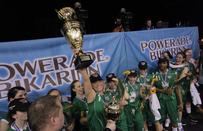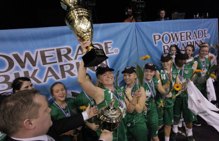 Njarðvík skrifaði nýjan kafla í glæsta sögu félagsins með 84-77 sigri gegn liði Snæfells í úrslitum Powerade-bikarkeppni kvenna í körfuknatleik. Þetta er í fyrsta sinn sem kvennalið Njarðvíkur vinnur stóran titil í körfubolta en Njarðvík hefur þrívegis áður leiki til úrslita. Snæfell var í fyrsta sinn í úrslitum keppninnar. Njarðvík byrjaði leikinn betur og hafði ákveðin tök á leiknum alveg frá byrjun til enda. Snæfellingar gáfust aldrei upp og var leikurinn í raun spennandi alveg fram til enda. Kieraah Marlow, leikmaður Snæfells, var alveg mögnuð í dag en hún skoraði 37 stig. Vandamálið hjá Snæfellingum var að aðrir leikmenn náðu sér ekki almennilega á strik. Njarðvík dreifði álaginu betur á milli leikmanna og fleiri komust í takt við leikinn. Líklega var það það sem skildi liðin að þegar upp var staðið. Sverrir: Aldrei öruggt en mikið er þetta sættSverrir fagnar eftir leik.mynd/valli„Þetta var magnað og mér líður gríðarlega vel núna," sagði Sverrir Sverrisson, þjálfari Njarðvíkur, eftir sigurinn í dag. „Ég er bara hrikalega ánægður. Þessi leikur var ógeðslega erfiður og við þurftum að halda vel á spöðunum". „Þetta var aldrei öruggt fyrir en það voru bara nokkrar sekúndur eftir. Við vorum að spila við svo sterkt lið að það var ekki hægt að slaka á neitt". Hægt er að sjá myndband af viðtalinu við Sverrir með að ýta hér.Ingi: Þetta er liðsíþrótt og það vantaði upp á heildina hjá okkur í dag„Það sem vantaði frá mínu liðið í dag voru fráköst," sagði Ingi Þór Steinþórsson, þjálfari Snæfells, eftir leikinn í dag. „Það kom mér á óvart hvað leikurinn var jafn í hálfleik. Ég er gríðarlega stoltur hvernig liðið kom til baka í síðari hálfleikinn og við náðum að koma með smá spennu í leikinn". „Þetta er liðsíþrótt og við náðum ekki saman sem ein heild í dag. Ég er samt stoltur af stelpunum og það eru allir Hólmarar". Hægt er að sjá myndband af viðtalinu við Inga með því að ýta hér. Petrúnella: Alltaf jafn ljúftPetrúnella átti fínan leik.mynd/valli„Það er alltaf jafn ljúft að verða Bikarmeistari," sagði Petrúnella Skúladóttir, leikmaður Njarðvíkur, eftir sigurinn í dag. „Við náðum góðu forskoti í byrjun síðari hálfleiks og náðu að halda út. Það held ég að hafi skilað okkur þessum sigri í dag". „Við erum bara búnar að æfa saman í allan vetur og hópurinn er að verða betri og betri. Það held ég að hafi skilað miklu í dag". Hægt er að sjá myndband af viðtalinu við Petrúnellu með því að ýta hér.Tölfræði: Snæfell 77-84 NjarðvíkSnæfell: Kieraah Marlow 37/4 varin skot, Jordan Lee Murphree 15/15 fráköst/5 stoðsendingar/4 varin skot, Hildur Sigurdardottir 13/6 fráköst/6 stoðsendingar, Alda Leif Jónsdóttir 5/5 fráköst, Hildur Björg Kjartansdóttir 4, Björg Guðrún Einarsdóttir 3, Aníta Sæþórsdóttir 0, Berglind Gunnarsdóttir 0, Ellen Alfa Högnadóttir 0, Sara Mjöll Magnúsdóttir 0, Helga Hjördís Björgvinsdóttir 0.Njarðvík: Shanae Baker-Brice 35/16 fráköst/9 stoðsendingar/5 stolnir, Lele Hardy 26/24 fráköst, Petrúnella Skúladóttir 18, Salbjörg Sævarsdóttir 3, Ólöf Helga Pálsdóttir 2/9 fráköst, Sara Dögg Margeirsdóttir 0, Ína María Einarsdóttir 0, Harpa Hallgrímsdóttir 0, Eyrún Líf Sigurðardóttir 0, Erna Hákonardóttir 0, Aníta Carter Kristmundsdóttir 0, Andrea Björt Ólafsdóttir 0. Hér að neðan má lesa beina textalýsingu frá blaðamanni Vísis.Leik lokið: 77-84 fyrir Njarðvík.4. leikhluti:Þetta er komið hjá Njarðvík. Staðan er 83-77 og sjö sekúndur eftir.Tvær risa körfur í röð hjá Njarðvík. Staðan er nuna 81-75 og rúmlega ein mínúta eftir. 73-74 er staðan núna og það gengur lítið upp hjá Njarðvíkingum þessa stundina. Rúmlega þrjár mínútur eftir af leiknum. Mikil spenna núna. Staðan er 72-67 fyrir Njarðvík. Fimm mínútur eftir.Kieraah Marlow er gjörsamlega að fara á kostum fyrir Snæfell núna en hún hefur gert 37 stig og Njarðvíkingar ráða bara ekkert við hana. Staðan er 68-62 fyrir Njarðvík. Nóg eftir.3. leikhluti: Staðan er 66-58 fyrir Njarðvík fyrir lokaleikhlutann. Þær hvítu komu virkilega sterkar til baka undir lok leikhlutans og þessi leikur er svo langt frá því að vera búinn. Komin smá spenna aftur í leikinn. Staðan er orðin 66-56, fínn sprettur hjá Snæfell.Njarðvík er að stinga Snæfell af þessa stundina og staðan er orðin 66-48 fyrir þeim grænu. Rúmlega þrjár mínútur eftir af þriðja leikhlutanum og það verður erfitt að koma til baka úr þessu.Þrettán stigum munar nú á liðunum 55-42 og þriðji leikhlutinn er hálfnaður. Þetta fer að verða svart fyrir Snæfell.Njarðvík gerir sjö fyrstu stig leikhlutans og staðan er allt í einu orðin 48-38. 2. leikhluti:Staðan er 41-38 fyrir Njarðvík í hálfleik. Það má búast við spennandi síðari hálfleik.Bæði lið ætla sér greinilega þennan titil en núna er jafnt á öllum tölum. Staðan er 35-35 þegar fyrri hálfleiknum er rétt að ljúka. Leikurinn er í járnum þessa stundina og litlu munar á þessum landsbyggðarliðum. 33-31 fyrir Njarðvík. Shanae Baker-Brice er að leika virkilega vel í liði Njarðvíkur og hefur gert 13 stig og tekið sjö fráköst eftir rúmlega tíu mínútna leik. Staðan er 28-23 fyrir þær grænu.1. leikhluti: Stelpurnar komu sterkar til baka undir lok fyrsta leikhlutans og minnkuðu muninn niður í þrjú stig 22-19, en Njarvík er enn með undirtökin.Leikurinn er jafn og spennandi en sem komið er og liðin skiptast á að hafa forystuna. Mikil barátta einkennir leikinn og ekki er tomma gefinn eftir. Staðan er 16-12 fyrir Njarðvík þegarSnæfell tekur leikhlé. Njarvíkurstúlkur koma sterkar til baka og eru komnar yfir 8-6. Snæfelli