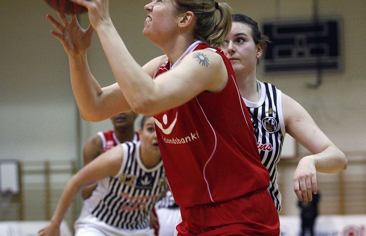 Valskonur eiga ekki lengur möguleika á sæti í úrslitakeppni Iceland Express deildar kvenna í körfubolta eftir 71-78 tap á móti KR í framlengdum leik í kvöld. Valur getur náð KR að stigum með því að vinna tvo síðustu leiki sína en verður alltaf neðar á innbyrðisviðureignum. Baráttan um fjórða og síðasta sætið inn í úrslitakeppnina stendur því á milli KR og Hauka en bæði lið eiga líka möguleika á því að ná Snæfelli að stigum. Snæfellsliðið er í 3. sæti með 28 stig, tveimur meira en KR og fjórum meira en Haukar. Snæfell og Haukar eiga bæði leik inni á KR. Stefán Karlsson, ljósmyndari Fréttablaðsins og Vísis, var á leiknum í DHL-höllinni í kvöld og náði þessum skemmtilegu myndum. Myndirnar má sjá í albúminu hér að neðan. Hægt er að sjá myndirnar stærri með því að smella á þær.