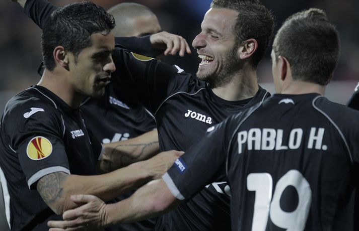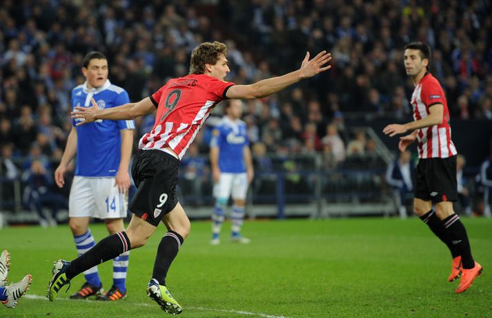 Manchester United banarnir í Athletic Bilbao héldu sigurgöngu sinni í Evrópudeildinni áfram í kvöld þegar þeir unnu 4-2 útisigur á Schalke 04 í Þýskalandi. Þetta var fyrri leikur liðanna í átta liða úrslitum keppninnar en Athletic Bilbao liðið hefur nú unnið fjóra leiki í röð í keppninni og skorað í þeim tíu mörk. Atletico Madrid, AZ Alkmaar og Sporting Lissabon unnu öll á heimavelli í kvöld en engu þeirra tókst að halda hreinu og 2-1 sigur á heimavelli geta verið hættuleg úrslit. Fernando Llorente kom Athletic Bilbao í 1-0 en Spánverjinn Raul svaraði með tveimur mörkum áður en Llorente jafnaði aftur. Það voru síðan Oscar De Marcos og Iker Muniain sem tryggðu Bilbao sigurinn með tveimur mörkum á lokakaflanum. Manchester City banarnir í Sporting Lissabon eru ekki í eins góðum málum þrátt fyrir 2-1 heimasigur á úkraínska liðinu Metalist Kharkiv. Hér fyrir neðan má sjá úrslit og markaskorara kvöldsins.Úrslit og markaskorarar í kvöld:Az Alkmaar - Valencia CF 2-1 1-0 Brett Holman (45.+1), 1-1 Mehmet Topal (51.), 2-1 Maarten Martens (79.)FC Schalke 04 - Athletic Bilbao 2-4 0-1 Fernando Llorente (20.), 1-1 Raúl (22.), 2-1 Raúl (60.), 2-2 Fernando Llorente (73.), 2-3 Oscar De Marcos (81.), 2-4 Iker Muniain (90.)Sporting Lissabon - Metalist Kharkiv 2-1 1-0 Marat Izmailov (51.), 2-0 Emiliano Insúa (64.), 2-1 Cleiton Xavier (90.)Atletico Madrid - Hannover 96 2-1 1-0 Falcao (9.), 1-1 Mame Biram Diouf (38.), 2-1 Eduardo Salvio (89.).
