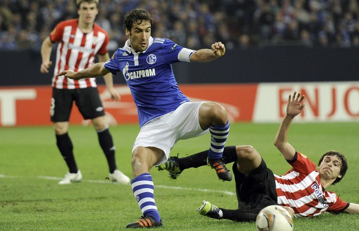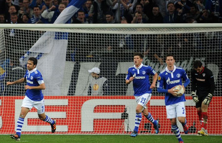 Athletic Bilbao vann í Þýskalandi | Úrslit og markaskorarar í Evrópudeildinni Óskar Ófeigur Jónsson skrifar 29. mars 2012 18:45 Mynd/AP Manchester United banarnir í Athletic Bilbao héldu sigurgöngu sinni í Evrópudeildinni áfram í kvöld þegar þeir unnu 4-2 útisigur á Schalke 04 í Þýskalandi. Þetta var fyrri leikur liðanna í átta liða úrslitum keppninnar en Athletic Bilbao liðið hefur nú unnið fjóra leiki í röð í keppninni og skorað í þeim tíu mörk. Atletico Madrid, AZ Alkmaar og Sporting Lissabon unnu öll á heimavelli í kvöld en engu þeirra tókst að halda hreinu og 2-1 sigur á heimavelli geta verið hættuleg úrslit. Fernando Llorente kom Athletic Bilbao í 1-0 en Spánverjinn Raul svaraði með tveimur mörkum áður en Llorente jafnaði aftur. Það voru síðan Oscar De Marcos og Iker Muniain sem tryggðu Bilbao sigurinn með tveimur mörkum á lokakaflanum. Manchester City banarnir í Sporting Lissabon eru ekki í eins góðum málum þrátt fyrir 2-1 heimasigur á úkraínska liðinu Metalist Kharkiv. Hér fyrir neðan má sjá úrslit og markaskorara kvöldsins.Úrslit og markaskorarar í kvöld:Az Alkmaar - Valencia CF 2-1 1-0 Brett Holman (45.+1), 1-1 Mehmet Topal (51.), 2-1 Maarten Martens (79.)FC Schalke 04 - Athletic Bilbao 2-4 0-1 Fernando Llorente (20.), 1-1 Raúl (22.), 2-1 Raúl (60.), 2-2 Fernando Llorente (73.), 2-3 Oscar De Marcos (81.), 2-4 Iker Muniain (90.)Sporting Lissabon - Metalist Kharkiv 2-1 1-0 Marat Izmailov (51.), 2-0 Emiliano Insúa (64.), 2-1 Cleiton Xavier (90.)Atletico Madrid - Hannover 96 2-1 1-0 Falcao (9.), 1-1 Mame Biram Diouf (38.), 2-1 Eduardo Salvio (89.). Evrópudeild UEFA Mest lesið Bíll Shaquille O'Neal enn ófundinn Körfubolti Uppgjörið: Ísland - Norður-Írland 3-0 | Áfram hluti af elítunni Íslenski boltinn Fluttu fréttir af snjónum í Reykjavík Fótbolti Formaðurinn hjálpaði til við að moka völlinn Fótbolti Búið að finna leiðina til að pirra og vinna Liverpool Enski boltinn Snjóbræðslukerfi Þróttar kom KSÍ til bjargar Fótbolti Tölur úr Bestu 2025: Klúðraði langflestum dauðafærum í sumar Íslenski boltinn Epicbet sýni handboltann í leyfisleysi: „Enda ólöglegar síður“ Handbolti Skiptiborð hjá stelpunum í kvöld Körfubolti Segja spurningar vakna um stöðu Elísabetar Fótbolti Fleiri fréttir Einkunnir Íslands: Þrjár heitastar í frostinu Liverpool - Crystal Palace | Eru Ernirnir komnir með tak? Viktor Bjarki skoraði og lagði upp í fyrsta byrjunarliðsleiknum Uppgjörið: Ísland - Norður-Írland 3-0 | Áfram hluti af elítunni Pedri gæti verið frá keppni til langs tíma Arteta fyrstur stjóranna á fætur Þorsteinn breytir engu á milli leikja Snjóbræðslukerfi Þróttar kom KSÍ til bjargar Tölur úr Bestu 2025: Klúðraði langflestum dauðafærum í sumar Segja spurningar vakna um stöðu Elísabetar Litu á hann sem risaeðlu en sjáið hvað er í tísku núna Formaðurinn hjálpaði til við að moka völlinn Formenn sambandanna hjálpuðu við að moka völlinn Real Madrid mun ekki refsa Vinícius Júnior Fluttu fréttir af snjónum í Reykjavík Sýknaður í alvarlegu ofbeldismáli Búið að finna leiðina til að pirra og vinna Liverpool Sú leikjahæsta leggur skóna á hilluna og klárar læknanámið Stuðningsmaður RB Leipzig lést á bikarleiknum í gærkvöldi Arteta óttast ekki að keppinautarnir steli undrabarninu frá honum FH bíður með að tilkynna nýjan þjálfara Óskar Hrafn fer ekki fet Spánn og Þýskaland mætast í úrslitum Anguissa hetja meistaranna Hákon Rafn hélt hreinu þegar Brentford flaug áfram Jón Dagur gulltryggði sigurinn með sínu fyrsta marki Leikið á Þróttaravelli á miðvikudag Vinícius Júnior íhugar að yfirgefa Real Madríd Kaupir sér tveggja milljarða króna hús Alexander Máni með fimm mörk í tveimur leikjum og Ísland áfram Sjá meira