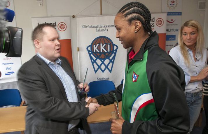 Lele Hardy valin best - Ingi Þór besti þjálfarinn Óskar Ófeigur Jónsson skrifar 21. mars 2012 14:59 Körfuknattleikssambandið verðlaunaði í dag fyrir bestu frammistöðuna í umferðum 15 til 28 í Iceland Express deild kvenna. Njarðvíkingurinn Lele Hardy var kosin besti leikmaðurinn en Ingi Þór Steinþórsson, þjálfari Snæfells var valinn besti þjálfarinn. Lele Hardy hefur farið á kostum með Njarðvíkurliðinu sem endaði í 2. sæti í deildarkeppninni og varð bikarmeistari. Hardy er með 24,8 stig og 18,7 fráköst að meðaltali í deildinni í vetur. Undir stjórn Inga Þórs Steinþórssonar tryggðu Snæfellskonur sér sæti í úrslitakeppninni með góðum endaspretti og náðu um leið besta árangri kvennaliðs félagsins í efstu deild.Verðlaunin fyrir 15. til 28. umferð í Iceland Express deild kvenna:Úrvalsliðið: Hildur Sigurðardóttir, Snæfelli Pálína Gunnlaugsdóttir, Keflavík Íris Sverrisdóttir, Haukum Sigrún Sjöfn Ámundadóttir, KR Lele Hardy, NjarðvíkDugnaðarforkurinn: Jence Ann Rhoads, HaukumBesti þjálfarinn: Ingi Þór Steinþórsson, SnæfelliBesti leikmaðurinn: Lele Hardy, NjarðvíkLele Hardy fær hér verðlaun sín.Mynd/Anton Dominos-deild kvenna Mest lesið Hetja Englands á EM sleit krossband Enski boltinn „Búnir að sýna hvað við getum verið lélegir“ Körfubolti Lofar frekari fjárfestingum Enski boltinn Haukur Helgi: Höfum ekki verið að spila góðan körfubolta Körfubolti „Getum verið fjandi góðir“ Körfubolti Uppgjörið: Þýskaland - Ísland 42-31 | Þrot í Þýskalandi Handbolti ÍR áfram eftir sigur í Mosfellsbæ Handbolti Uppgjörið: Valur - Grindavík 55-90 | Taplausir Grindvíkingar kjöldrógu Val Körfubolti Dagskráin í dag: Meistararnir á Króknum, Körfuboltakvöld og allskonar Sport Uppgjörið: Keflavík - Þór Þ. 86-82 | Þarf ekki alltaf að vera fallegt ef það virkar Körfubolti Fleiri fréttir Haukur Helgi: Höfum ekki verið að spila góðan körfubolta „Getum verið fjandi góðir“ Uppgjörið: Álftanes-Njarðvík 93-92 | Heitur Haukur var hetjan á Álftanesinu Uppgjörið: Keflavík - Þór Þ. 86-82 | Þarf ekki alltaf að vera fallegt ef það virkar „Varnarleikur snýst eiginlega bara um að nenna“ Uppgjörið: Valur - Grindavík 55-90 | Taplausir Grindvíkingar kjöldrógu Val „Búnir að sýna hvað við getum verið lélegir“ KR - ÍA 109-75 | KR-ingar sýndu allar sínar bestu hliðar þegar þeir burstuðu Skagamenn Íslandsmeistararnir frá því fyrir sextíu árum heiðursgestir í kvöld „Hann ætti bara að skrifa afsökunarbiblíuna“ Uppgjörið: Njarðvík - Grindavík 85-84| Njarðvík fyrstar til að leggja Grindavík af velli Ótrúleg dramatík í Garðabæ og á Sauðárkróki Landsliðsmennirnir öflugir í Evrópu Jordan gagnrýnir álagsstjórnun í NBA: Þú hefur skyldu til að láta sjá þig Skiptiborð hjá stelpunum í kvöld Var með skattinn á hælunum þegar hann fór í veðmálabraskið Bíll Shaquille O'Neal enn ófundinn Martin öflugur í góðum sigri Öllum leikjum Bónus-deildar kvenna í kvöld frestað Stólarnir ekki í vandræðum á Egilsstöðum Enginn Lakers-maður hafði náð þessu í meira en 52 ár Veðmál rædd í Körfuboltakvöldi: „Bara ævintýralega heimskulegt“ Kvöddu húsið og Nablinn klifraði í kveðjuskyni Martin naut sín í fræknum sigri á meisturum Bayern Tryggvi lykilmaður í sigri Bilbao Elvar skoraði tólf í naumu tapi Tilþrifin: Varin skot og ótrúlegar körfur Valsmanna Þriðja tapið í röð hjá Jóni og félögum Fáránlegt eða klókt hjá Kristófer? „Ef það má þá gerir fólk það“ Brassi tekur við af Billups Sjá meira