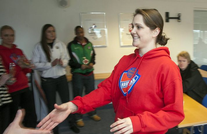 Körfuknattleikssambandið verðlaunaði í dag fyrir bestu frammistöðuna í umferðum 15 til 28 í Iceland Express deild kvenna. Njarðvíkingurinn Lele Hardy var kosin besti leikmaðurinn en Ingi Þór Steinþórsson, þjálfari Snæfells var valinn besti þjálfarinn. Lele Hardy hefur farið á kostum með Njarðvíkurliðinu sem endaði í 2. sæti í deildarkeppninni og varð bikarmeistari. Hardy er með 24,8 stig og 18,7 fráköst að meðaltali í deildinni í vetur. Undir stjórn Inga Þórs Steinþórssonar tryggðu Snæfellskonur sér sæti í úrslitakeppninni með góðum endaspretti og náðu um leið besta árangri kvennaliðs félagsins í efstu deild.Verðlaunin fyrir 15. til 28. umferð í Iceland Express deild kvenna:Úrvalsliðið: Hildur Sigurðardóttir, Snæfelli Pálína Gunnlaugsdóttir, Keflavík Íris Sverrisdóttir, Haukum Sigrún Sjöfn Ámundadóttir, KR Lele Hardy, NjarðvíkDugnaðarforkurinn: Jence Ann Rhoads, HaukumBesti þjálfarinn: Ingi Þór Steinþórsson, SnæfelliBesti leikmaðurinn: Lele Hardy, NjarðvíkLele Hardy fær hér verðlaun sín.Mynd/Anton