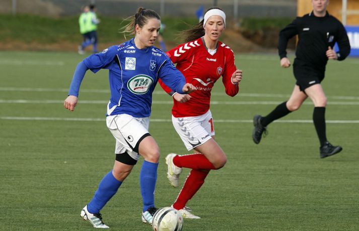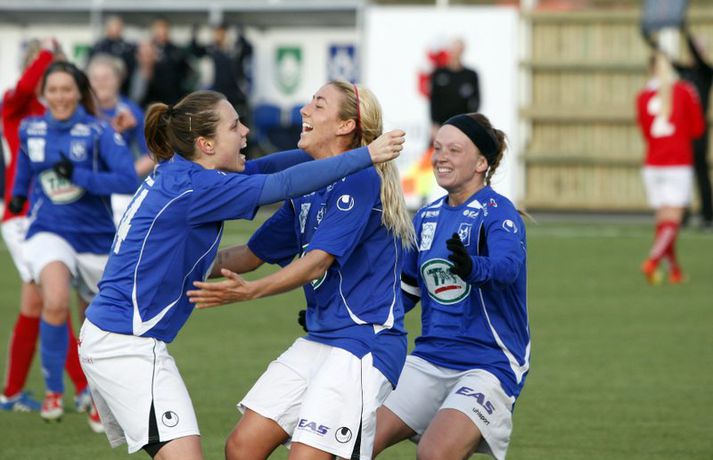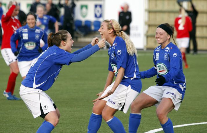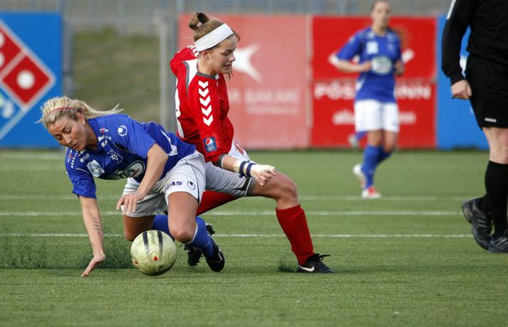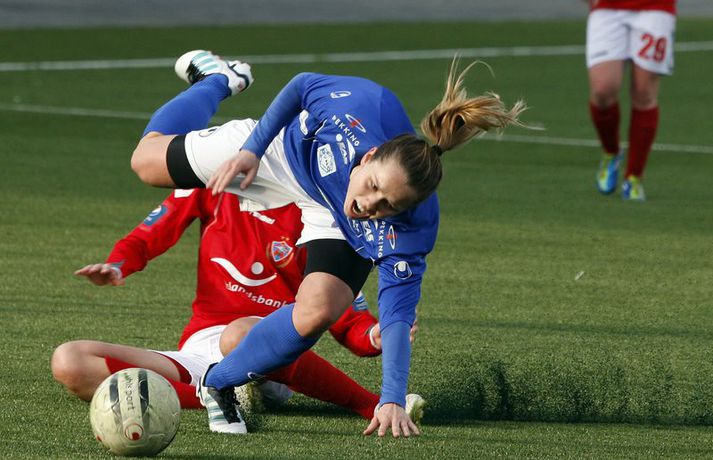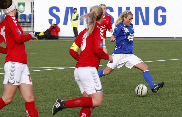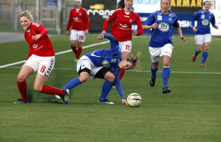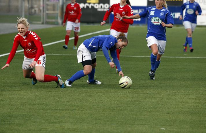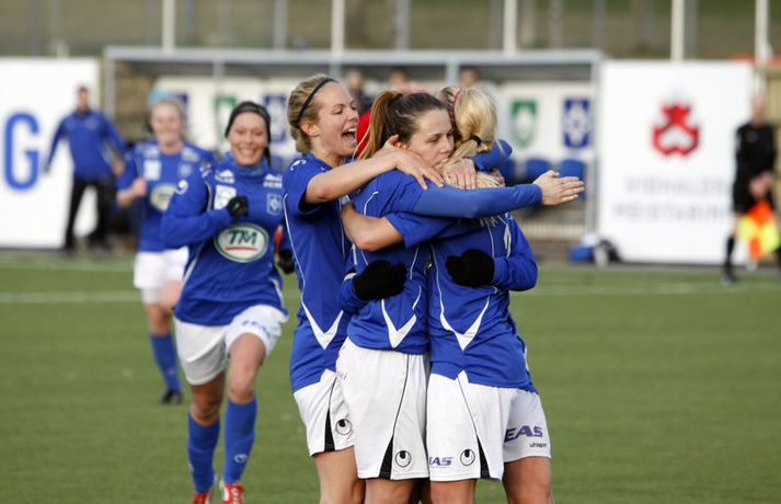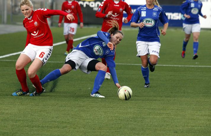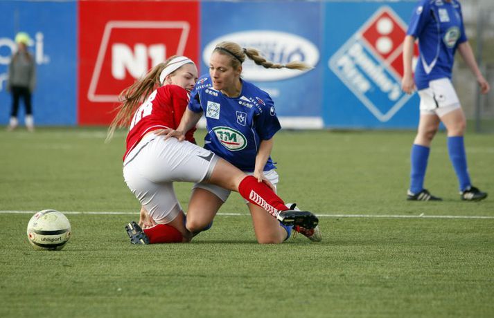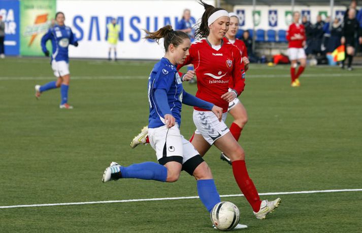 Stjörnukonur byrja sumarið vel - myndir Óskar Ófeigur Jónsson skrifar 8. maí 2012 22:00 Mynd/Stefán Stjörnukonur eru meistarar meistaranna í fyrsta sinn eftir 3-1 sigur á Val á Stjörnuvellinum í kvöld. Stjarnan varð Íslandsmeistari síðasta sumar en Valur vann bikarinn. Stjörnukonur halda áfram að enda sigurgöngur Vals því Valskonur voru búnar að vinna Meistarakeppnina fimm ár í röð. Ashley Bares, markadrottning síðasta sumars, var í miklu stuði en hún skoraði eitt mark og lagði upp tvö fyrir þær Ingu Birnu Friðjónsdóttur og Ásgerði Stefaníu Baldursdóttur (víti). Leikurinn í kvöld var fyrsti leikurinn sem fer fram á Stjörnuvellinum síðan að lagt var nýtt gervigras á völlinn. Stefán Karlsson, ljósmyndari Fréttablaðsins og Vísis, var á leik Stjörnunnar og Vals í Garðabænum í kvöld og náði þessum skemmtilegu myndum. Myndirnar má sjá í albúminu hér að neðan. Hægt er að sjá myndirnar stærri með því að smella á þær. Pepsi Max-deild kvenna Mest lesið „Örugglega nokkrir Fantasy-þjálfarar ósáttir“ Enski boltinn „Haaland er þetta góður“ Enski boltinn Kærastan tók eftir því að eitthvað var að Handbolti Tilþrif 5. umferðar: Jukic stal senunni Körfubolti „Það verður hundleiðinlegt að spila við Val“ Íslenski boltinn Lygilega jafnt á toppnum eftir sigur AC Milan Fótbolti Ítalinn hoppaði upp fyrir Alcaraz eftir sigur í París Sport Uppgjörið: Þýskaland - Ísland 29-31 | Svöruðu skellinum með frábærum sigri Handbolti Hólmbert skoraði í Suður-Kóreu og stjórnaði sigursöngvum eftir leik Fótbolti Hermann tekinn við Val Íslenski boltinn Fleiri fréttir „Það verður hundleiðinlegt að spila við Val“ Hermann tekinn við Val Fóru nýja leið í ár og auglýstu eftir þjálfara: Tommy Nielsen ráðinn Pablo og Óskar Örn inn í þjálfarateymi Hauka FH-ingar kveðja Kjartan Henry Tölur úr Bestu: Bjartur Bjarmi fór í flestar tæklingar af öllum Gísli semur við Skagamenn Óskar Smári tekur við Stjörnunni Bretinn ráðinn tæknilegur ráðgjafi hjá Val Fram þvertekur fyrir metnaðarleysi og leitar að nýjum þjálfurum Tölur úr Bestu: Hallgrímur Mar bjó til langflest færi „Mjög sáttur með samninginn“ „Hefði séð eftir því alla ævi“ Magnús Már í viðræðum við HK Uppgjörið: Ísland - Norður-Írland 3-0 | Áfram hluti af elítunni Tölur úr Bestu 2025: Klúðraði langflestum dauðafærum í sumar FH bíður með að tilkynna nýjan þjálfara Óskar Hrafn fer ekki fet Birnir frá Akureyri í Garðabæ Hættir með Fram Heimir kynntur til leiks í Árbænum Túfa rekinn frá Val Leyndarmáli ljóstrað upp þegar Heimir og Björn kvöddu Leikmenn kusu Patrick og Guðmund Sjáðu bananabombu Antons Loga og önnur síðustu mörk tímabilsins Uppgjörið: Stjarnan - Breiðablik 2-3 | Stjarnan í Evrópu þrátt fyrir tap „Held að ég geti ekki gert mikið meira“ Uppgjörið: Vestri - KR 1-5 | KR bjargaði sér og sendi Vestra í Lengjudeildina Uppgjörið: ÍA - Afturelding 1-0 | Afturelding staldraði stutt við í efstu deild Uppgjörið: Víkingur - Valur 2-0 | Meistararnir klára tímabilið með stæl Sjá meira