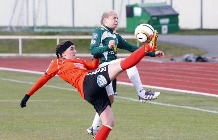 Pepsi-deild kvenna fer vel af stað. Óvænt úrslit í fyrstu umferð sem gefa vonir og væntingar um að mótið í ár verði talsvert jafnara en síðustu ár. Breiðablik varð til að mynda að sætta sig við 1-1 jafntefli gegn Fylki á heimavelli sínum í dag. Þar var Stefán Karlsson, ljósmyndari Fréttablaðsins og Vísis, og hann myndaði átökin. Afraksturinn má sjá í albúminu hér að neðan.