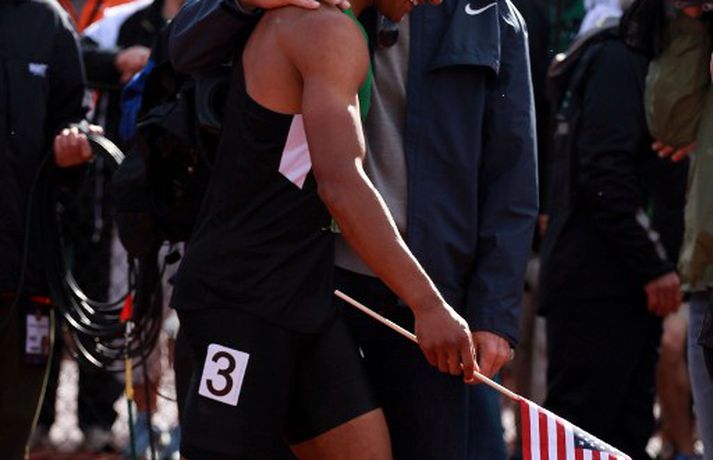 Tugþrautarkappinn Asthon Eaton hneig til jarðar og grét gleðitárum þegar hann kom í mark í 1500 metra hlaupinu á bandaríska úrtökumótinu fyrir Ólympíuleikana í London um helgina. Heimsmetið í tugþraut, sem verið hafði í eigu Tékkans Romans Seberle í ellefu ár, var hans. Aðstæður í Eugene í Oregon höfðu verið erfiðar alla helgina en sólin fann sér leið út úr skýjunum rétt fyrir lokagreinina. Eaton vissi fyrir 1500 metra hlaupið að hann þyrfti að bæta sinn besta tíma um 2.57 sekúndur til að slá heimsmetið. Hann gerði það og gott betur. Hann hljóp á 4:14.48 og bætti sinn besta tíma um 4.46 sekúndur við mikinn fögnuð áhorfenda á Hayward Field í Eugene. „Fólk getur sagt það sem það vill en það eru töfrar hérna," sagði Eaton sem lauk keppni með 9.039 stig á sínum gamla heimavelli en Eaton keppti fyrir Háskólann í Oregon (University of Oregon) á sínum tíma. Fjölmörg afrek í bandarískri frjálsíþróttasögu hafa unnist á Hayward-vellinum sem býr yfir töfrum að margra mati. Heimsmet Seberle frá því árið 2001 í Götzis var 9.026 stig. Það var um leið í eina skiptið sem tugþrautarmaður hafði hlotið yfir 9000 stig. Áður var metið í eigu annars Tékka, Tomas Dvorak, en þar á undan stóð heimsmet Bandaríkjamannsins Dan O'Brien frá 1992, 8.891 sig, í sjö ár. Enginn Bandaríkjamaður toppaði O'Brien í tæp 20 ár eða þar til nú. „Hann gaf aldrei eftir. Það er mjög auðvelt þegar maður hefur mikla forystu að gefa eftir. Það skilur hann frá öllum, mér meðtöldum. Ég er ekki viss um að ég hefði getað hlaupið úr mér lungun í 1500 metra hlaupinu," sagði O'Brien sem varð vitni að afreki Eaton. Eaton bætti sig í fimm greinum af tíu og tryggði sér eitt af þremur sætum Bandaríkjamanna í tugþraut á Ólympíuleikunum. Einn þeirra sem sat eftir með sárt ennið var Ólympíumeistarinn Brian Clay. Clay felldi síðustu grindina í 110 metra grindahlaupinu og var í fyrstu dæmdur úr keppni. Þrátt fyrir að sú ákvörðun væri skömmu síðar dregin tilbaka gerði Clay ógilt í öllum köstum sínum í kringlukastinu. Þótt möguleikar hans á að tryggja sæti sitt til London væru úr sögunni kláraði kappinn keppnina. „Það var mikilvægt að klára þrautina. Ég hafði enga löngun til þess en hreinlega varð. Ég vildi ekki að börnin mín myndu minnast þess þegar faðir þeirra kláraði ekki þraut," sagði Clay sem felldi tár, vonbrigðatár, eftir grindarhlaupið. Þrátt fyrir allt var Clay himinlifandi fyrir hönd landa síns Eaton sem gefur til kynna, enn á ný, hve nánir keppendur í tugþraut eru. „Þetta var erfiður dagur fyrir mig en það var stórkostlegt að vera hluti af því sem gekk á hjá Asthon," sagði Clay um ótrúlega framgöngu Eaton í Oregon. „Það er eins og allt lífið fari fram á tveimur dögum. Í stóra heiminum skiptir þetta ekki miklu máli en þetta er alheimurinn fyrir mér. Að gera eins vel og ég mögulega gat í mínum eigin heimi gerir mig afar glaðan," sagði Eaton sem einnig er heimsmethafi í sjöþraut. Auk Eaton tryggði Trey Hardee sér sæti á Ólympíuleikunum í London. Hardee hafnaði í öðru sæti með 8383 stig.Nordicphotos/Getty