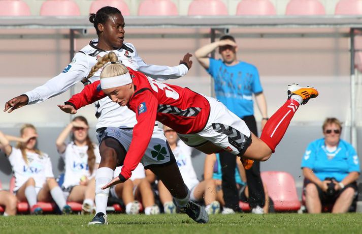 Þrjú mörk á fimm mínútum tryggðu Valskonum sigur á ÍBV | Myndasyrpa 17. júlí 2012 22:17 Mynd / Valli Valskonur skoruðu þrjú mörk á fimm mínútna kafla í síðari hálfleik og tryggðu sér 3-0 sigur á ÍBV í 10. umferð Pepsi-deildar kvenna í kvöld. Dagný Brynjarsdóttir skoraði tvö marka Vals og hefði getað bætt því þriðja við úr vítaspyrnu. Bryndís Lára Hrafnkelsdóttir, liðsfélagi Dagnýjar upp yngri flokka, varði hins vegar spyrnu Dagnýjar. Aðeins munar þremur stigum á ÍBV í fjórða sæti og Valskonum í fimmta sæti eftir leikinn í kvöld. Valgarður Gíslason, ljósmyndari Fréttablaðsins og Vísis, kom við á Hlíðarenda í kvöld og tók þessar myndir. Pepsi Max-deild kvenna Tengdar fréttir Umfjöllun og viðtöl: Valur - ÍBV 3-0 | Pepsi-deild kvenna Valskonur sýndu styrk sinn á fimm mínútna kafla þegar þær gerðu út um leik sinn gegn ÍBV á Vodafone vellinum í Pepsi deild kvenna í kvöld. 17. júlí 2012 15:34 Mest lesið Dönsk landsliðskona eignaðist barn tólf vikum fyrir tímann Handbolti Viðtökurnar á Anfield munu ekki breyta neinu Fótbolti Loksins þorði einhver í Kolbein sem stígur aftur inn í hringinn Sport Kærastan tók eftir því að eitthvað var að Handbolti Segir allt tal um leiðinlegan fótbolta hjá Arsenal heimskulegt Enski boltinn Guardiola segir að dómararnir hafi verið á móti City í áratug Enski boltinn „Örugglega nokkrir Fantasy-þjálfarar ósáttir“ Enski boltinn Skagamenn senda Kanann heim Körfubolti „Það verður hundleiðinlegt að spila við Val“ Íslenski boltinn „Haaland er þetta góður“ Enski boltinn Fleiri fréttir „Það verður hundleiðinlegt að spila við Val“ Hermann tekinn við Val Fóru nýja leið í ár og auglýstu eftir þjálfara: Tommy Nielsen ráðinn Pablo og Óskar Örn inn í þjálfarateymi Hauka FH-ingar kveðja Kjartan Henry Tölur úr Bestu: Bjartur Bjarmi fór í flestar tæklingar af öllum Gísli semur við Skagamenn Óskar Smári tekur við Stjörnunni Bretinn ráðinn tæknilegur ráðgjafi hjá Val Fram þvertekur fyrir metnaðarleysi og leitar að nýjum þjálfurum Tölur úr Bestu: Hallgrímur Mar bjó til langflest færi „Mjög sáttur með samninginn“ „Hefði séð eftir því alla ævi“ Magnús Már í viðræðum við HK Uppgjörið: Ísland - Norður-Írland 3-0 | Áfram hluti af elítunni Tölur úr Bestu 2025: Klúðraði langflestum dauðafærum í sumar FH bíður með að tilkynna nýjan þjálfara Óskar Hrafn fer ekki fet Birnir frá Akureyri í Garðabæ Hættir með Fram Heimir kynntur til leiks í Árbænum Túfa rekinn frá Val Leyndarmáli ljóstrað upp þegar Heimir og Björn kvöddu Leikmenn kusu Patrick og Guðmund Sjáðu bananabombu Antons Loga og önnur síðustu mörk tímabilsins Uppgjörið: Stjarnan - Breiðablik 2-3 | Stjarnan í Evrópu þrátt fyrir tap „Held að ég geti ekki gert mikið meira“ Uppgjörið: Vestri - KR 1-5 | KR bjargaði sér og sendi Vestra í Lengjudeildina Uppgjörið: ÍA - Afturelding 1-0 | Afturelding staldraði stutt við í efstu deild Uppgjörið: Víkingur - Valur 2-0 | Meistararnir klára tímabilið með stæl Sjá meira