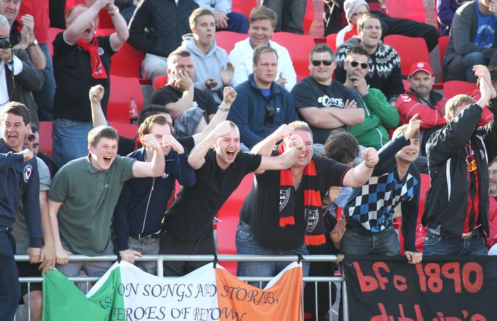 Stuðningsmenn Þórs á Akureyri fögnuðu vel og innilega í kvöld og líklega verða hátíðahöld í Þorpinu eitthvað fram á morgun eftir ótrúlegan sigur liðsins í kvöld í Evrópudeild UEFA. Þór lagði þá írska úrvalsdeildarliðið Bohemian FC, 5-1, en þetta er með stærri og flottari sigrum íslensks liðs í Evrópukeppni. Hér að neðan má sjá myndasyrpu úr leiknum sem Auðunn Níelsson tók.