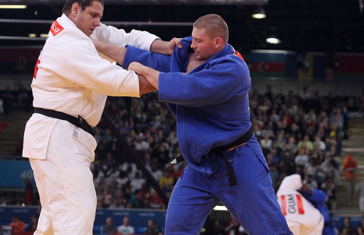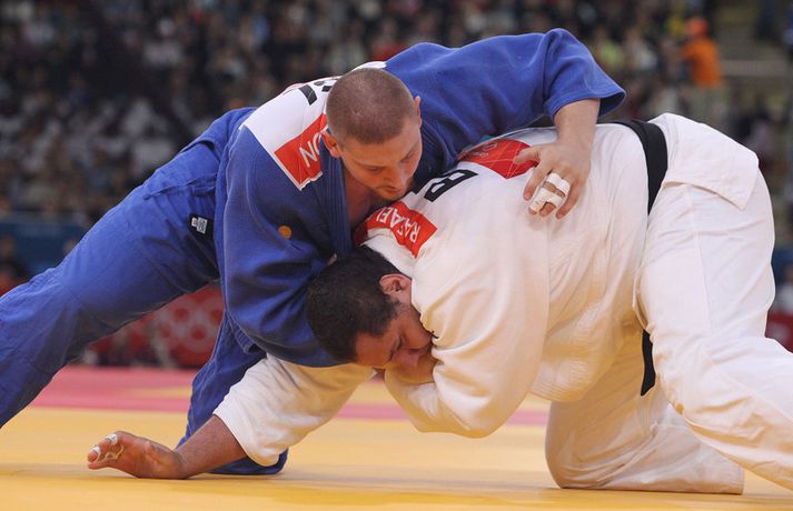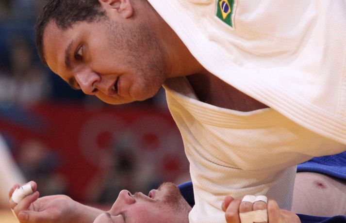 Þormóður Jónsson mátti sætta sig við tap gegn Brasilíumanninum Rafael Silva í 32-manna úrslitum í +100 kg flokki í júdókeppni Ólympíuleikanna í dag. Þormóður lýsti bardaganum þannig að honum liði eins og hann hefði lent fyrir bíl þegar Ameríkumeistarinn tók á Íslendingnum. Valgarður Gíslason, ljósmyndari Fréttablaðsins og Vísis, fylgdist grannt með gangi mála í morgun og tók þessar myndir.