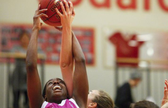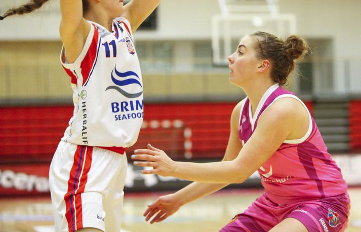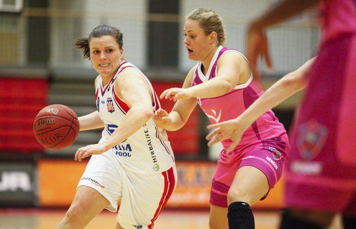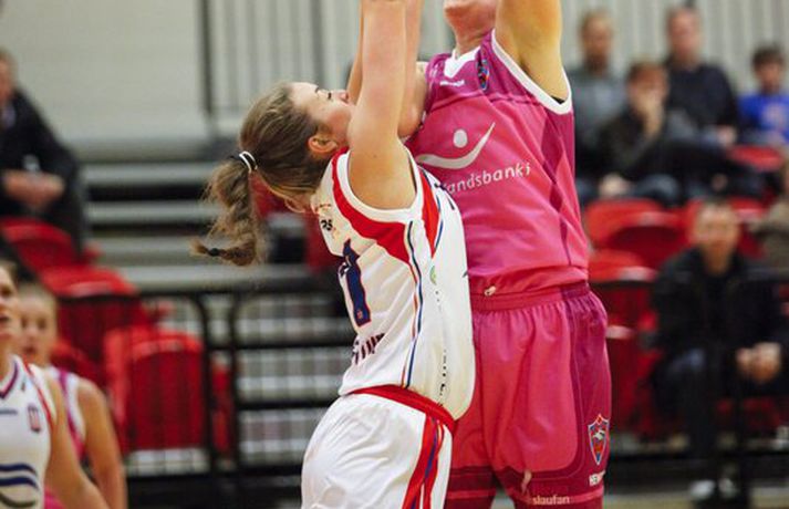 Umfjöllun og viðtöl: Valur - Snæfell 48-64 | Snæfellsvörnin lokaði öllum leiðum Óskar Ófeigur Jónsson skrifar 3. október 2012 22:03 Mynd/Ernir Kvennalið Snæfells er til alls líklegt í Dominosdeild kvenna og sýndi styrk sinn með sextán stiga sigri á bleikum Valskonum, 64-48, í Vodafonehöllinni í kvöld. Snæfell var komið með þrettán stiga forskot eftir átta mínútna leik og var með góð tök á leiknum nær allan tímann. Það var einkum frábær vörn Snæfellsliðsins í seinni hálfleik sem sá til þess að Valsliðið náði aldrei að vinna sig inn í leikinn. Snæfellsliðið var búið að lyfta bikurum eftir tvo síðustu leiki sína og var búið að vinna alla leiki sína í Lengjubikarnum og Meistarakeppninni. Góður leikur liðsins í kvöld sýnir að Hólmararnir eru til alls líklegar í kvennakörfunni í vetur. Kieraah Marlow var öflug í liði Snæfells með 19 stig og 11 fráköst en enginn lék þó betur en Berglind Gunnarsdóttir sem var með 17 stig og 7 fráköst og 4 stolna í kvöld. Unnur Lára Ásgeirsdóttir var best hjá Val með 11 stig og 11 fráköst en liðið nýtti aðeins 29 prósent skota sinna í kvöld og ekkert þriggja stiga skotanna rataði rétta leið. Allar myndatökurnar fyrir leik fóru greinilega ekki alltof vel í Valsliðið því Snæfellsliðið skoraði sjö fyrstu stig leiksins og var komið í 19-6 þegar tæpar tvær mínútur voru eftir af leikhlutanum. Valsliðið skorað hinsvegar síðustu 7 stig leikhlutans og minnkaði muninn í 13-19. Snæfell tók annan góðan sprett í öðrum leikhluta þegar liðið skoraði níu stig í röð og breytti stöðunni úr 22-18 í 31-18. Snæfellskonur voru síðan með sjö stiga forskot þegar gengið var til hálfleiks, 37-30. Kieraah Marlow var komin með 14 stig og 8 fráköst í hálfleik og Berglind Gunnarsdóttir var með 9 stig en Unnur Lára Ásgeirsdóttir kom sterk inn af bekknum hjá Val og skoraði sjö stig í hálfleiknum. Valsliðið koma af krafti inn í seinni hálfleikinn og náði muninum niður í fjögur stig, 42-46, þegar átta mínútur voru eftir af leiknum. Snæfellskonur áttu hinsvegar svör og þau voru flest varnarmeginn. Valsliðið skoraði ekki í tæpar sex mínútur og meðan náði Snæfellskonur upp tuttugu stiga forskoti, 64-44 og gerðu endanlega út um leikinn. Valsliðið náði aðeins að laga stöðuna í lokin en munurinn endaði engu að síður í sextán stigum. Berglind: Það skiptir engu máli hvort þær séu í bleikum, bláum eða hvítum búningum"Þetta er framtak hjá þeim en bleiku búningarnir trufluðu okkur ekki neitt. Það skiptir engu máli hvort þær séu í bleikum búningum, bláum eða hvítum," sagði Berglind Gunnarsdóttir sem átti flottan leik með Snæfelli í kvöld. "Við vorum að spila mjög góða maður á mann vörn og náðum að loka vel á þær. Það gekk svona ljómandi vel hjá okkur í vörninni," sagði Berglind. "Þetta er flott en segir samt ekki neitt því mótið er bara rétt að byrja. Okkur gekk vel á undirbúningstímabilinu og ætlum bara að halda þeirri velgengni áfram," sagði Berglind sem er sjálf að koma sterk til baka eftir langvinn og erfið meiðsli. "Ég fer að nálgast mitt gamla form en það kemur bara. Það þýðir ekkert annað en að láta vaða," sagði Berglind sem lék mjög vel í kvöld. Ágúst: Þær hafa forskot á önnur lið"Við vorum svolítið hrædd um þetta. Þetta var fyrsti leikur og það var mikil spenna fyrir því. Liðið var búið að vera rosalega duglegt að æfa á undirbúningstímabilinu og stemmningin í liðinu er frábær. Fyrir mánuði síðan var ákveðið að vera í bleikum búningum og það er búið að vera mikið umstang í kringum það í dag, blaðamannafundir, viðtöl og myndatökur og hitt og þetta. Það var búist við því að spennustigið yrði mjög hátt og það sást alveg í byrjun leiks. Við náðum ekki að hrista þetta almennilega af okkur og náðum aldrei takti í leikinn okkar," sagði Ágúst Björgvinsson, þjálfari Vals. "Auðvitað er það agalegt að skora bara 48 stig á heimavelli en við vorum oft að koma okkur í mjög góð færi og þá sérstaklega í fyrri hálfleik. Við erum að spila ágætlega sóknarlega en klárum ekki færin. Í seinni hálfleik var sjálfstraustið orðið lítið og stelpurnar voru farnar að tapa boltanum mjög klaufalega. Það kláraði leikinn," sagði Ágúst en Valsliðið var búið að minnka muninn í fjögur stig þegar Snæfell lokaði öllum leiðum. "Við erum ekkert að örvænta við þetta því við erum að tapa á móti mjög sterku liði og liði sem er ósigrað á undirbúningstímbilinu. Þær hafa forskot á önnur lið því þetta er óbreytt lið frá því i fyrra. Þær eru ekkert að pússa neina nýja leikmenn inn í þetta hjá sér. Við sjáum að tveir mikilvægir leikmenn hjá okkur, kaninn og Ragna Margrét voru mjög langt fá sínu besta í dag og ég vil skrifa það algjörlega á það að þær vantar leikreynslu með liðinu og að þær eiga eftir að finna sig með liðinu," sagði Ágúst. "Það er mjög mikið sem við þurfum að laga en við þurfum bara að vinna í einu í einu og vinna í hlutum sem við höfum stjórn á," sagði Ágúst og liðið mun mæta áfram í bleiku. "Við erum með enga hjátrú í því og mætum bara galvösk í næsta leik sem er á móti KR á sunnudaginn. Við getum ekkert annað en spilað betur þá," sagði Ágúst. Hildur: Við erum að sýna það núna að við erum með hörkulið"Ætli þeir hafa ekki bara truflað þær en við létum þá ekkert trufla okkur," sagði Hildur Sigurðardóttir, fyrirliði Snæfells um bleiku búninga Valsliðsins. "Mér fannst vera meiri í barátta hjá okkur í þessum leik en í undanförnum leikjum. Ég hef ekki verið nógu ánægð með það að við höfum ekki verið með mikil læti 