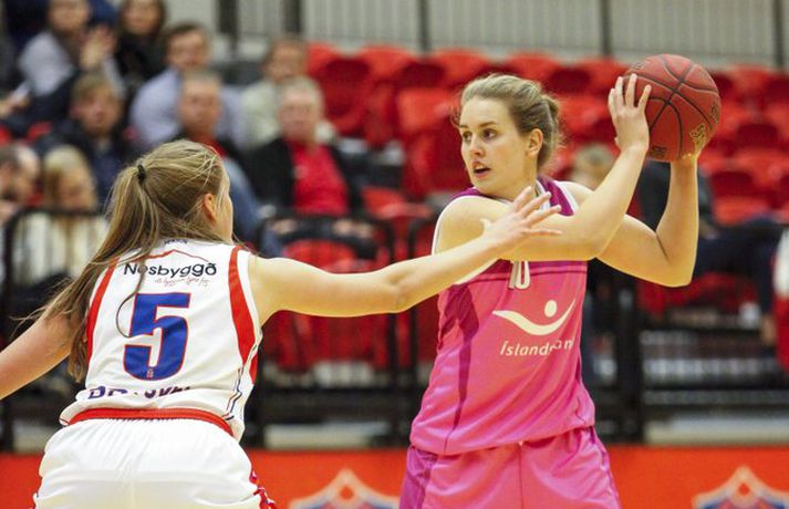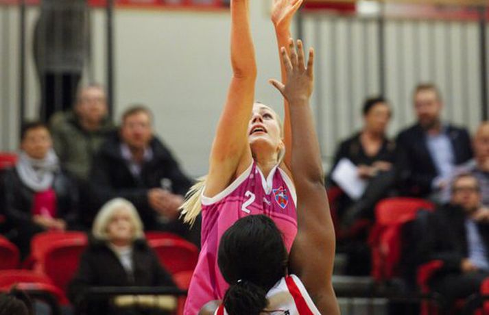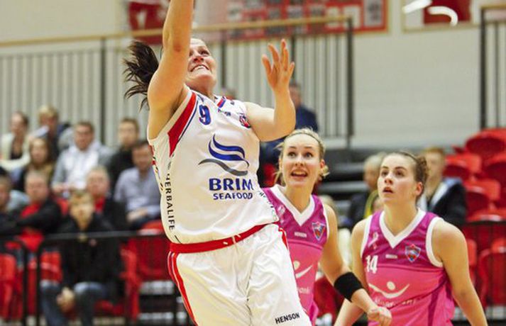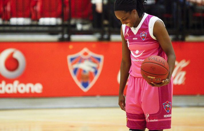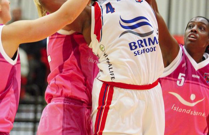 Kvennalið Snæfells er til alls líklegt í Dominosdeild kvenna og sýndi styrk sinn með sextán stiga sigri á bleikum Valskonum, 64-48, í Vodafonehöllinni í kvöld. Snæfell var komið með þrettán stiga forskot eftir átta mínútna leik og var með góð tök á leiknum nær allan tímann. Það var einkum frábær vörn Snæfellsliðsins í seinni hálfleik sem sá til þess að Valsliðið náði aldrei að vinna sig inn í leikinn. Snæfellsliðið var búið að lyfta bikurum eftir tvo síðustu leiki sína og var búið að vinna alla leiki sína í Lengjubikarnum og Meistarakeppninni. Góður leikur liðsins í kvöld sýnir að Hólmararnir eru til alls líklegar í kvennakörfunni í vetur. Kieraah Marlow var öflug í liði Snæfells með 19 stig og 11 fráköst en enginn lék þó betur en Berglind Gunnarsdóttir sem var með 17 stig og 7 fráköst og 4 stolna í kvöld. Unnur Lára Ásgeirsdóttir var best hjá Val með 11 stig og 11 fráköst en liðið nýtti aðeins 29 prósent skota sinna í kvöld og ekkert þriggja stiga skotanna rataði rétta leið. Allar myndatökurnar fyrir leik fóru greinilega ekki alltof vel í Valsliðið því Snæfellsliðið skoraði sjö fyrstu stig leiksins og var komið í 19-6 þegar tæpar tvær mínútur voru eftir af leikhlutanum. Valsliðið skorað hinsvegar síðustu 7 stig leikhlutans og minnkaði muninn í 13-19. Snæfell tók annan góðan sprett í öðrum leikhluta þegar liðið skoraði níu stig í röð og breytti stöðunni úr 22-18 í 31-18. Snæfellskonur voru síðan með sjö stiga forskot þegar gengið var til hálfleiks, 37-30. Kieraah Marlow var komin með 14 stig og 8 fráköst í hálfleik og Berglind Gunnarsdóttir var með 9 stig en Unnur Lára Ásgeirsdóttir kom sterk inn af bekknum hjá Val og skoraði sjö stig í hálfleiknum. Valsliðið koma af krafti inn í seinni hálfleikinn og náði muninum niður í fjögur stig, 42-46, þegar átta mínútur voru eftir af leiknum. Snæfellskonur áttu hinsvegar svör og þau voru flest varnarmeginn. Valsliðið skoraði ekki í tæpar sex mínútur og meðan náði Snæfellskonur upp tuttugu stiga forskoti, 64-44 og gerðu endanlega út um leikinn. Valsliðið náði aðeins að laga stöðuna í lokin en munurinn endaði engu að síður í sextán stigum. Berglind: Það skiptir engu máli hvort þær séu í bleikum, bláum eða hvítum búningum"Þetta er framtak hjá þeim en bleiku búningarnir trufluðu okkur ekki neitt. Það skiptir engu máli hvort þær séu í bleikum búningum, bláum eða hvítum," sagði Berglind Gunnarsdóttir sem átti flottan leik með Snæfelli í kvöld. "Við vorum að spila mjög góða maður á mann vörn og náðum að loka vel á þær. Það gekk svona ljómandi vel hjá okkur í vörninni," sagði Berglind. "Þetta er flott en segir samt ekki neitt því mótið er bara rétt að byrja. Okkur gekk vel á undirbúningstímabilinu og ætlum bara að halda þeirri velgengni áfram," sagði Berglind sem er sjálf að koma sterk til baka eftir langvinn og erfið meiðsli. "Ég fer að nálgast mitt gamla form en það kemur bara. Það þýðir ekkert annað en að láta vaða," sagði Berglind sem lék mjög vel í kvöld. Ágúst: Þær hafa forskot á önnur lið"Við vorum svolítið hrædd um þetta. Þetta var fyrsti leikur og það var mikil spenna fyrir því. Liðið var búið að vera rosalega duglegt að æfa á undirbúningstímabilinu og stemmningin í liðinu er frábær. Fyrir mánuði síðan var ákveðið að vera í bleikum búningum og það er búið að vera mikið umstang í kringum það í dag, blaðamannafundir, viðtöl og myndatökur og hitt og þetta. Það var búist við því að spennustigið yrði mjög hátt og það sást alveg í byrjun leiks. Við náðum ekki að hrista þetta almennilega af okkur og náðum aldrei takti í leikinn okkar," sagði Ágúst Björgvinsson, þjálfari Vals. "Auðvitað er það agalegt að skora bara 48 stig á heimavelli en við vorum oft að koma okkur í mjög góð færi og þá sérstaklega í fyrri hálfleik. Við erum að spila ágætlega sóknarlega en klárum ekki færin. Í seinni hálfleik var sjálfstraustið orðið lítið og stelpurnar voru farnar að tapa boltanum mjög klaufalega. Það kláraði leikinn," sagði Ágúst en Valsliðið var búið að minnka muninn í fjögur stig þegar Snæfell lokaði öllum leiðum. "Við erum ekkert að örvænta við þetta því við erum að tapa á móti mjög sterku liði og liði sem er ósigrað á undirbúningstímbilinu. Þær hafa forskot á önnur lið því þetta er óbreytt lið frá því i fyrra. Þær eru ekkert að pússa neina nýja leikmenn inn í þetta hjá sér. Við sjáum að tveir mikilvægir leikmenn hjá okkur, kaninn og Ragna Margrét voru mjög langt fá sínu besta í dag og ég vil skrifa það algjörlega á það að þær vantar leikreynslu með liðinu og að þær eiga eftir að finna sig með liðinu," sagði Ágúst. "Það er mjög mikið sem við þurfum að laga en við þurfum bara að vinna í einu í einu og vinna í hlutum sem við höfum stjórn á," sagði Ágúst og liðið mun mæta áfram í bleiku. "Við erum með enga hjátrú í því og mætum bara galvösk í næsta leik sem er á móti KR á sunnudaginn. Við getum ekkert annað en spilað betur þá," sagði Ágúst. Hildur: Við erum að sýna það núna að við erum með hörkulið"Ætli þeir hafa ekki bara truflað þær en við létum þá ekkert trufla okkur," sagði Hildur Sigurðardóttir, fyrirliði Snæfells um bleiku búninga Valsliðsins. "Mér fannst vera meiri í barátta hjá okkur í þessum leik en í undanförnum leikjum. Ég hef ekki verið nógu ánægð með það að við höfum ekki verið með mikil læti í undanförnum leikjum. Í dag náðum við upp þessari baráttu," sagði Hildur óhrædd við að gagnrýna leik liðsins þrátt fyrir sigurgönguna. "Þ