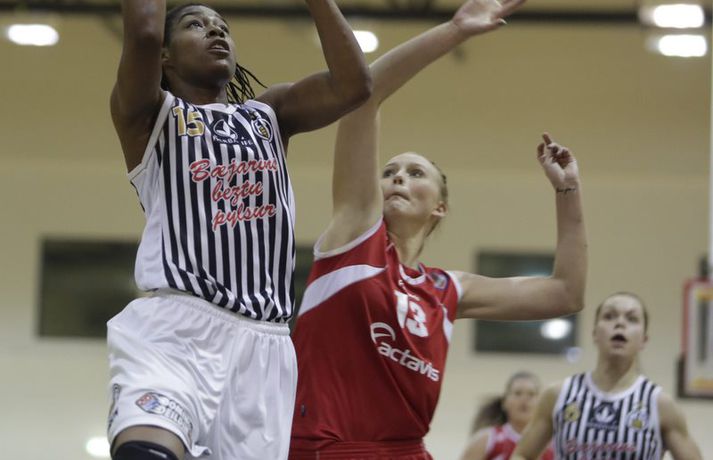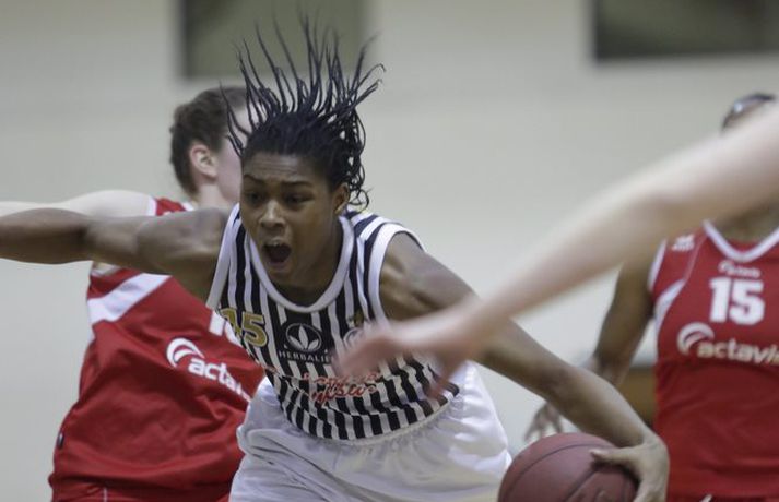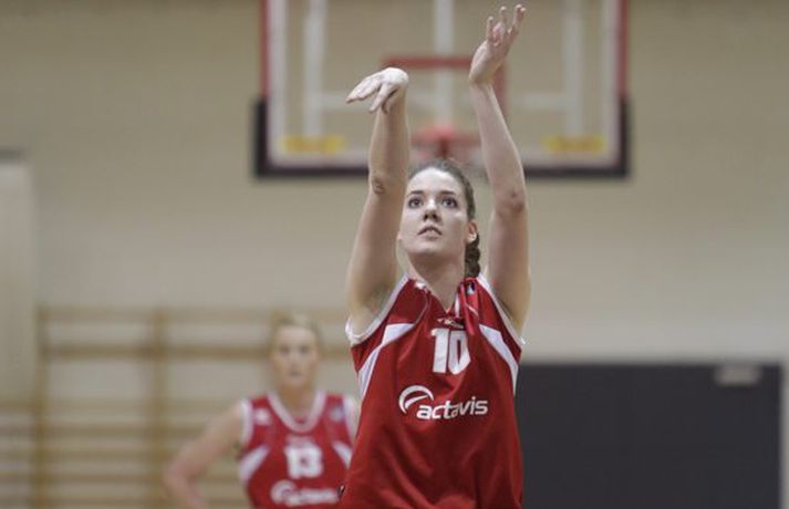 Shannon McCallum hefur heldur betur stimplað sig inn í íslenska körfuboltann síðan að hún gekk til liðs við kvennalið KR á dögunum. McCallum var aðeins tveimur stigum frá því í kvöld að brjóta 40 stiga múrinn í þriðja leiknum í röð. KR vann þá Hauka 73-54 og svo gott sem tryggði sér sæti í úrslitakeppninni. Shannon McCallum skoraði meira en allt Haukaliðið í fyrri hálfleik (25 stig á móti 21) en endaði leikinn með 38 stig, 14 fráköst, 11 fiskaðar villur og 9 stolna bolta. Shannon McCallum hefur nú spilað fjóra leiki með KR-liðinu og er með 36,8 stig, 13,3 fráköst, 5,3 stolna bolta og 4,5 stoðsendingar að meðaltali í leik. Shannon hefur alls skoraði 147 stig á þeim 138 mínútum og 40 sekúndum sem hún hefur spilað til þessa í Dominosdeildinni en KR hefur unnið þessar mínútur með hana inn á vellinum með alls 55 stigum. valgarður Gíslason, ljósmyndari Vísis og Fréttablaðsins mætti á leikinn í DHL-höllinni í kvöld og náði myndum sem má sjá hér fyrir ofan.