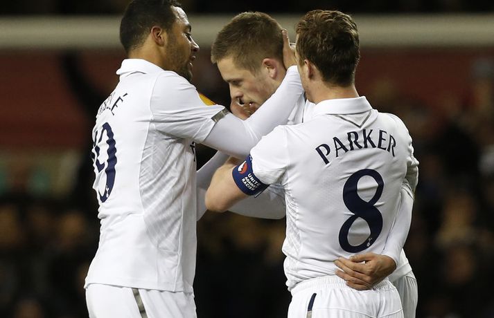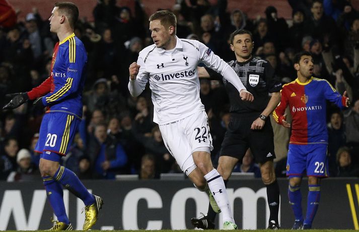 Gylfi: Við getum spjarað okkur án Gareth Bale Óskar Ófeigur Jónsson skrifar 5. apríl 2013 14:30 Gylfi Þór Sigurðsson fagnar marki sínu í gær. Mynd/Nordic Photos/Getty Tottenham varð fyrir miklu áfalli í gær þegar Gareth Bale meiddist illa á ökkla í 2-2 jafntefli á móti svissneska liðinu Basel í fyrri leik liðanna í átta liða úrslitum Evrópudeildarinnar. Gylfi Þór Sigurðsson tryggði Tottenham jafntefli með glæsilegu marki og hann var í viðtali á heimasíðu ITV. Gylfi var spurður út í það að missa Gareth Bale sem hefur þegar skorað 22 mörk á tímabilinu. „Það er mikill missir ef Gareth getur ekki verið með okkur í næstu leikjum en það bíða samt hungraðir leikmenn á bekknum sem eru staðráðnir í að standa sig vel. Þegar einhver leikmaður meiðist þá verða liðsfélagarnir að fylla í skarðið. Við getum spjarað okkur án Gareth Bale," sagði Gylfi. „Það verður ekki auðvelt að spila án Gareth enda er hann búinn að spila frábærlega á tímabilinu en það verður bara einhver að koma sterkur inn í staðinn," sagði Gylfi ennfremur. Gylfi hefur spilað vel eftir áramót og er búinn að vinna sér sæti í byrjunarliði Tottenham eftir langa dvöl á bekknum. „Ég tel að ég sé farinn að spila minn besta bolta þótt að ég sé ekki að spila mína uppáhaldsstöðu. Ég er að spila á kantinum en meðan ég er að spila þá er ég ánægður," sagði Gylfi. „Það hjálpar mikið að ná að spila nokkra leiki í röð því þá kemstu í takt og sjálfstraustið eykst," sagði Gylfi. Enski boltinn Evrópudeild UEFA Mest lesið Bíll Shaquille O'Neal enn ófundinn Körfubolti Uppgjörið: Ísland - Norður-Írland 3-0 | Áfram hluti af elítunni Íslenski boltinn Fluttu fréttir af snjónum í Reykjavík Fótbolti Formaðurinn hjálpaði til við að moka völlinn Fótbolti Búið að finna leiðina til að pirra og vinna Liverpool Enski boltinn Snjóbræðslukerfi Þróttar kom KSÍ til bjargar Fótbolti Tölur úr Bestu 2025: Klúðraði langflestum dauðafærum í sumar Íslenski boltinn Epicbet sýni handboltann í leyfisleysi: „Enda ólöglegar síður“ Handbolti Skiptiborð hjá stelpunum í kvöld Körfubolti Segja spurningar vakna um stöðu Elísabetar Fótbolti Fleiri fréttir Liverpool - Crystal Palace | Eru Ernirnir komnir með tak? Arteta fyrstur stjóranna á fætur Litu á hann sem risaeðlu en sjáið hvað er í tísku núna Búið að finna leiðina til að pirra og vinna Liverpool Arteta óttast ekki að keppinautarnir steli undrabarninu frá honum Hákon Rafn hélt hreinu þegar Brentford flaug áfram Segir að Slot verði að taka tvo leikmenn út úr Liverpool-liðinu Enska úrvalsdeildin í jólaköttinn Segir sitt fyrrum lið í krísu Fylltu í eyðurnar: Vanmetnasti leikmaður deildarinnar? Einkaviðtal við Carrick: „Hálfgerð tískubylgja sem einkennir fótboltann í dag“ Besta liðið aðeins í sautjánda sæti í mörkum í opnum leik „Varnarleikurinn er bara stórslys“ Guardiola: Of snemmt til að hafa áhyggjur af Arsenal Hárið í hættu hjá United manninum Mark úr horni, klippa Eze og punghögg Haalands Aldrei meiri aldursmunur Matty Cash afgreiddi City Eitt mark dugði og Skytturnar enn á toppnum Fimmta tapið í síðustu sex hjá Liverpool Rauðu djöflarnir unnu þriðja deildarsigurinn í röð Sunderland kom til baka gegn Chelsea og dramatík í Newcastle Sjáðu mörkin í verstu byrjun Hamranna í hálfa öld Leeds afgreiddi West Ham Sheffield Wednesday stefnir í gjaldþrot Sjáðu af hverju vörn Arsenal er í algjörum sérflokki „Þetta hafa verið erfiðir tímar fyrir okkur alla“ Stjarna Manchester City hætti næstum því í fótbolta Mo Salah fjarlægði nafn Liverpool af miðlum sínum Fantasýn: Tvær gátur og svarið að losa sig við Pedro Sjá meira
