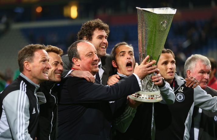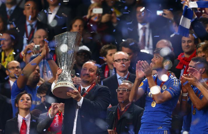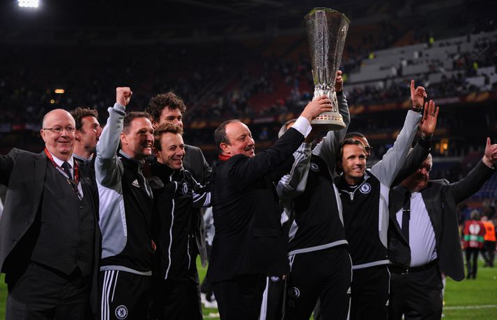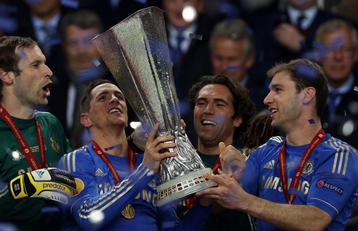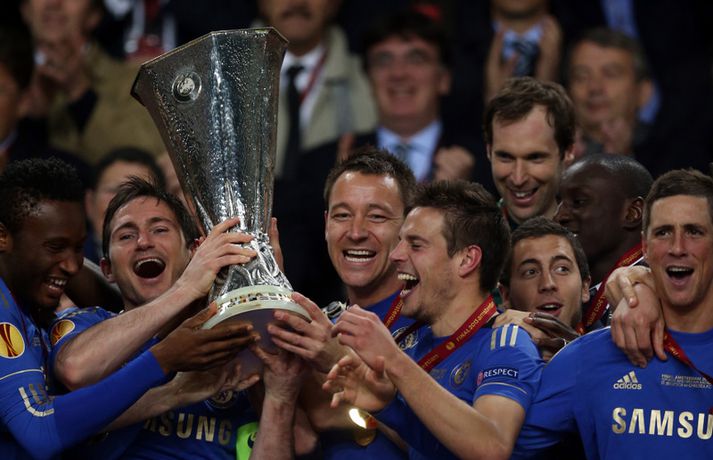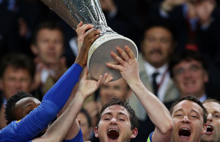 Chelsea varð í kvöld fyrsta enska liðið til að vinna Evrópudeildina síðan að keppnin var endurskírð 2009 og fyrsta enska liðið í tólf ár til að þess að vinna UEFA-bikarinn eða síðan að Liverpool vann gömlu Evrópukeppni félagsliða árið 2001. Liverpool (1973, 1976, 2001), Tottenham (1972, 1984) og Ipswich Town (1981) voru einu ensku liðin sem hafa unnið UEFA-bikarinn en Chelsea bættist í hópinn í kvöld. Leikmenn Chelsea fögnuðu titlinum vel í Amsterdam í kvöld og hér fyrir ofan má sjá nokkrar myndir af fagnaðarlátunum. Liðið virkaði þreytulegt í leiknum en gerði nóg til þess að landa sigri í annarri Evrópukeppninni á innan við tólf mánuðum. Branislav Ivanović og Fernando Torres skoruðu mörk Chelsea í kvöld en sigurmark Ivanović kom á þriðju mínútu í uppbótartíma.