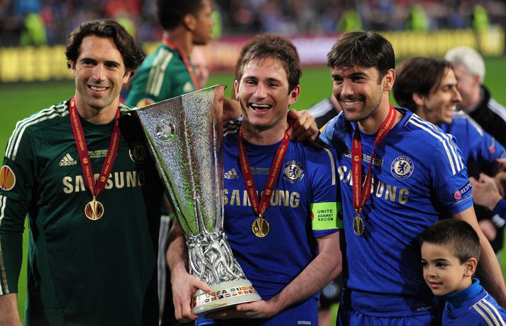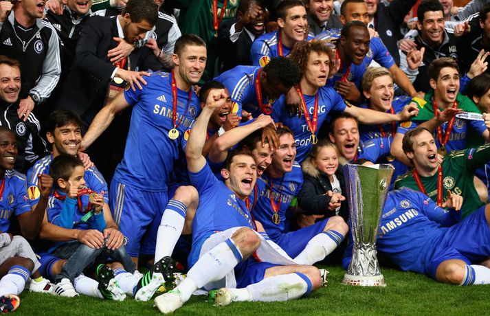 Chelsea-menn fögnuðu vel sigrinum í Evrópudeildinni Óskar Ófeigur Jónsson skrifar 15. maí 2013 22:50 Mynd/Nordic Photos/Getty Chelsea varð í kvöld fyrsta enska liðið til að vinna Evrópudeildina síðan að keppnin var endurskírð 2009 og fyrsta enska liðið í tólf ár til að þess að vinna UEFA-bikarinn eða síðan að Liverpool vann gömlu Evrópukeppni félagsliða árið 2001. Liverpool (1973, 1976, 2001), Tottenham (1972, 1984) og Ipswich Town (1981) voru einu ensku liðin sem hafa unnið UEFA-bikarinn en Chelsea bættist í hópinn í kvöld. Leikmenn Chelsea fögnuðu titlinum vel í Amsterdam í kvöld og hér fyrir ofan má sjá nokkrar myndir af fagnaðarlátunum. Liðið virkaði þreytulegt í leiknum en gerði nóg til þess að landa sigri í annarri Evrópukeppninni á innan við tólf mánuðum. Branislav Ivanović og Fernando Torres skoruðu mörk Chelsea í kvöld en sigurmark Ivanović kom á þriðju mínútu í uppbótartíma. Enski boltinn Evrópudeild UEFA Tengdar fréttir Branislav Ivanovic skellti sér upp á markslána Branislav Ivanovic var hetja Chelsea í úrslitaleik Evrópudeildarinnar í Amsterdam í kvöld þegar hann skoraði sigurmarkið með stórglæsilegum skalla á þriðju mínútu í uppbótartíma. Chelsea er því Evrópumeistari annað árið í röð því liðið vann Meistaradeildina í fyrra. 15. maí 2013 21:55 Lampard: Enginn á þetta meira skilið en Ivanovic Frank Lampard, fyrirliði Chelsea, var kátur eftir 2-1 sigur á Benfica í úrslitaleik Evrópudeildarinnar í kvöld. Chelsea er þar með handhafi beggja Evróputitlanna í fótboltanum því úrslitaleikur Meistaradeildarinnar fer ekki fram fyrr en seinna í þessum mánuði. 15. maí 2013 21:12 Ivanovic skoraði sigurmark Chelsea í blálokin Amsterdam verður máluð blá í kvöld eftir að Chelsea tryggði sér sigur í Evrópudeildinni með 2-1 sigri á léttleikandi liði Benfica frá Portúgal. Branislav Ivanovic tryggði Chelsea sigur með marki á þriðju mínútu í viðbótartíma. 15. maí 2013 13:20 Skemmtileg staðreynd um sigurvegarann Fernando Torres Fernando Torres skoraði fyrra mark Chelsea í kvöld þegar liðið vann 2-1 sigur á Benfica í Amsterdam og tryggði sér sigur í Evrópudeildinni. 15. maí 2013 21:40 Mest lesið Bíll Shaquille O'Neal enn ófundinn Körfubolti Óskar Hrafn fer ekki fet Íslenski boltinn Epicbet sýni handboltann í leyfisleysi: „Enda ólöglegar síður“ Handbolti Hákon Rafn hélt hreinu þegar Brentford flaug áfram Enski boltinn Arteta óttast ekki að keppinautarnir steli undrabarninu frá honum Enski boltinn FH bíður með að tilkynna nýjan þjálfara Íslenski boltinn Spánn og Þýskaland mætast í úrslitum Fótbolti Dagskráin í dag: Íslenskur körfubolti í sviðsljósinu Sport Sú leikjahæsta leggur skóna á hilluna og klárar læknanámið Fótbolti Verstappen telur sig ekki geta barist um titilinn Formúla 1 Fleiri fréttir Sú leikjahæsta leggur skóna á hilluna og klárar læknanámið Stuðningsmaður RB Leipzig lést á bikarleiknum í gærkvöldi Arteta óttast ekki að keppinautarnir steli undrabarninu frá honum FH bíður með að tilkynna nýjan þjálfara Óskar Hrafn fer ekki fet Spánn og Þýskaland mætast í úrslitum Anguissa hetja meistaranna Hákon Rafn hélt hreinu þegar Brentford flaug áfram Jón Dagur gulltryggði sigurinn með sínu fyrsta marki Leikið á Þróttaravelli á miðvikudag Vinícius Júnior íhugar að yfirgefa Real Madríd Kaupir sér tveggja milljarða króna hús Alexander Máni með fimm mörk í tveimur leikjum og Ísland áfram Birnir frá Akureyri í Garðabæ Klobbaði íslensku strákana og fór á flug á netmiðlum Hættir með Fram Landsliðskonur aðstoðuðu ökumenn í vanda Landsleiknum aflýst og framhaldið óljóst Segir að Slot verði að taka tvo leikmenn út úr Liverpool-liðinu Vonast til að komast í Kórinn: „Menn hafa aldrei séð annað eins“ „Alltaf gaman að fá nýjar raddir inn“ Gleðifréttir fyrir Argentínumenn: Messi vill spila á HM Stöðufundur í Laugardal klukkan 10:30 Enska úrvalsdeildin í jólaköttinn Nýi íþróttastjóri Kjartans stal mörgæs og endaði í fangelsi í Singapúr Tyrkneska sambandið segir dómara hafa veðjað á þúsundir leikja Brendan Rodgers sagði starfinu sínu lausu eftir ásakanir Segir sitt fyrrum lið í krísu Fylltu í eyðurnar: Vanmetnasti leikmaður deildarinnar? Fyrirliði Real Madríd þarf að fara í aðgerð á hné Sjá meira