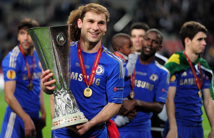 Branislav Ivanovic skellti sér upp á markslána Óskar Ófeigur Jónsson skrifar 15. maí 2013 21:55 Branislav Ivanovic fagnar. Mynd/Nordic Photos/Getty Branislav Ivanovic var hetja Chelsea í úrslitaleik Evrópudeildarinnar í Amsterdam í kvöld þegar hann skoraði sigurmarkið með stórglæsilegum skalla á þriðju mínútu í uppbótartíma. Chelsea er því Evrópumeistari annað árið í röð því liðið vann Meistaradeildina í fyrra. „Liðið okkar átti þetta skilið. Þetta hefur verið erfitt tímabil og við höfum spilað mjög marga leiki," sagði Branislav Ivanovic við ITV-sjónvarpstöðina eftir leikinn. „Þetta var mjög erfiður leikur og Benfica spilaði mjög vel. Við skoruðum sigurmarkið eftir horn og við vinnum mikið í að undirbúa okkur fyrir þessi föstu leikatriði. Við áttum skilið að vinna þennan bikar," sagði Ivanovic. „Það er frábær tilfinning að spila aftur í úrslitaleik í Evrópukeppni og þetta var frábær sigur. Nú er kominn tími til að fagna saman," sagði Branislav Ivanovic. Branislav Ivanovic hefur verið hjá Chelsea frá 2008 og var þarna að vinna sinn sjötta stóra titil með félaginu. Enski boltinn Evrópudeild UEFA Mest lesið Bíll Shaquille O'Neal enn ófundinn Körfubolti Óskar Hrafn fer ekki fet Íslenski boltinn Epicbet sýni handboltann í leyfisleysi: „Enda ólöglegar síður“ Handbolti Hákon Rafn hélt hreinu þegar Brentford flaug áfram Enski boltinn Arteta óttast ekki að keppinautarnir steli undrabarninu frá honum Enski boltinn FH bíður með að tilkynna nýjan þjálfara Íslenski boltinn Spánn og Þýskaland mætast í úrslitum Fótbolti Sú leikjahæsta leggur skóna á hilluna og klárar læknanámið Fótbolti Dagskráin í dag: Íslenskur körfubolti í sviðsljósinu Sport Verstappen telur sig ekki geta barist um titilinn Formúla 1 Fleiri fréttir Sú leikjahæsta leggur skóna á hilluna og klárar læknanámið Stuðningsmaður RB Leipzig lést á bikarleiknum í gærkvöldi Arteta óttast ekki að keppinautarnir steli undrabarninu frá honum FH bíður með að tilkynna nýjan þjálfara Óskar Hrafn fer ekki fet Spánn og Þýskaland mætast í úrslitum Anguissa hetja meistaranna Hákon Rafn hélt hreinu þegar Brentford flaug áfram Jón Dagur gulltryggði sigurinn með sínu fyrsta marki Leikið á Þróttaravelli á miðvikudag Vinícius Júnior íhugar að yfirgefa Real Madríd Kaupir sér tveggja milljarða króna hús Alexander Máni með fimm mörk í tveimur leikjum og Ísland áfram Birnir frá Akureyri í Garðabæ Klobbaði íslensku strákana og fór á flug á netmiðlum Hættir með Fram Landsliðskonur aðstoðuðu ökumenn í vanda Landsleiknum aflýst og framhaldið óljóst Segir að Slot verði að taka tvo leikmenn út úr Liverpool-liðinu Vonast til að komast í Kórinn: „Menn hafa aldrei séð annað eins“ „Alltaf gaman að fá nýjar raddir inn“ Gleðifréttir fyrir Argentínumenn: Messi vill spila á HM Stöðufundur í Laugardal klukkan 10:30 Enska úrvalsdeildin í jólaköttinn Nýi íþróttastjóri Kjartans stal mörgæs og endaði í fangelsi í Singapúr Tyrkneska sambandið segir dómara hafa veðjað á þúsundir leikja Brendan Rodgers sagði starfinu sínu lausu eftir ásakanir Segir sitt fyrrum lið í krísu Fylltu í eyðurnar: Vanmetnasti leikmaður deildarinnar? Fyrirliði Real Madríd þarf að fara í aðgerð á hné Sjá meira