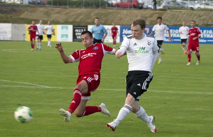 FH-ingar tryggðu sig áfram í undankeppnini í Meistaradeildinni með 2-1 sigri á FK Ekranas í kvöld og mæta Austria frá Vín í næstu umferð. Sigurinn í kvöld var verðskuldaður og gáfu FH-ingar fá færi á sér í leiknum. Fyrri leikur liðanna sem fór fram í Litháen í síðustu viku lauk með 1-0 sigri FH-inga og tóku þeir því vænlega stöðu inn í leikinn í kvöld. Bæði lið fóru varfærnislega inn í leikinn og gáfu fá færi á sér. Fyrsta mark leiksins kom eftir að liðin færðu sig aðeins framar á völlinn, fyrirgjöf kom inn af hægri kanti og Pétur Viðarsson braut á Egidijus Varnas. Arsenij Buinickij steig á vítapunktinn og skoraði örugglega framhjá Róberti og jafnaði einvígið. Heimamenn fóru beint í sókn og fengu nokkur ákjósanleg færi en Tadas Kauneckas í marki Ekranas var í miklu stuði. Jöfnunarmark FH-inga kom loks rúmlega tíu mínútum eftir marki gestanna. Eftir hornspyrnu sendi Sam Tillen fyrirgjöf sem Guðmann Þórisson fleytti á Björn Daníel og náði hann að pota boltanum í netið framhjá markmanni Ekranas. Þetta var það síðasta markverða sem gerðist í fyrri hálfleik og gengu liðin jöfn inn í búningsklefanna. Möguleikar Ekranas minnkuðu verulega þegar Oscar Reyes, miðvörður þeirra reif niður Atla Viðar sem var sloppinn einn í gegn. Ivan Kruzliak, dómari leiksins hafði úr engu öðru að velja en að vísa Reyes af velli og voru FH-ingar því manni fleiri í rúmlega hálftíma. Heimamönnum gekk þó illa að skapa færi og var það ekki fyrr en á lokamínútunum sem vörn Ekranas fór að opnast. Fyrst fékk Kristján Gauti sannkallað dauðafæri til að klára einvígið en skot hans fór framhjá fyrir tómu marki. Á lokamínútu leiksins lögðu gestirnir allt í sölurnar og fór Tadas í sóknina í aukaspyrnu sem Ekranas fékk. Úr aukaspyrnunni varði Róbert skot frá Vitalijus Kavaliauskas og var fljótur að finna Atla Viðar aleinan á vallarhelmingi Ekranas og rak hann boltann í netið. Markið gerði út um leikinn og flautaði góður dómari leiksins leikinn af stuttu síðar. Gríðarlega sterkur sigur hjá heimamönnum sem eru komnir í þriðju umferð undankeppninnar. Þar mæta þeir Austria frá Vín og verður það verkefni erfitt en jafnframt spennandi. Sigurinn tryggir þeim 22 milljónir fyrir áframhaldandi þátttöku ásamt því að gefa þeim fjóra auka leiki. Tapi þeir gegn Austria fara þeir í Evrópudeildar undankeppnina en með sigri fara þeir í umspil um sæti í Meistaradeildinni. Heimir: Skipti mér ekkert af fjármálunum„Ég er gríðarlega ánægður, mér fannst við spila vel nánast allan leikinn. Það kom stuttur kafli í fyrri hálfleik þar sem við dettum aðeins niður en við löguðum það í seinni hálfleik,“ sagði Heimir Guðjónsson, þjálfari FH eftir leikinn. „Mér fannst þetta sanngjarn sigur og flottur leikur af hálfu FH. Mér fannst við fá góð færi í leiknum og klaufar að nýta ekki færin þegar leið á leikinn. Í stöðunni 2-1 þurfa þeir tvö mörk og það hefði farið betur um mann, það þarf ekki mikið að gerast í stöðunni 1-1,“ Gestirnir misstu mann af velli í upphafi seinni hálfleiks og gerði það FH-ingum auðveldara fyrir. „Það er auðvitað betra að vera einum fleiri en mér fannst við ráða betur við þá strax í upphafi seinni hálfleiks. Við fórum að halda bolta betur innan liðsins og þegar við komumst framhjá fyrstu pressunni þeirra fengum við oft fína möguleika sem við náðum ekki að nýta okkur nógu vel,“ Eftir að hafa lent undir voru FH-ingar fljótir að svara. „Við höfum sýnt karakter í þessum leikjum, við sýndum frábæran karakter úti að vinna 1-0 þótt þeir hafi átt nokkur góð færi. Við töluðum um það fyrir leikinn að halda leikskipulagi og það gekk upp í kvöld,“ Í stöðunni 1-1 setti Heimir Atla Viðar inná fyrir Pétur Viðars, sóknarsinnuð skipting þrátt fyrir að leiða í einvíginu. Það átti aldeilis eftir að borga sig, Atli veiddi Oscar Reyes útaf og skoraði svo að lokum sigurmarkið. „Pétur meiddist og við þurftum að bregðast við því. Mér fannst ekki rétt að setja inn fleiri varnarsinnaða menn og Atli kom flottur inn. Hann setti tvö á móti Keflavík og er oft heitur hérna í krikanum. Hann stóð sig mjög vel í kvöld,“ Með sigrinum fer FH áfram í þriðju umferð undankeppninnar sem þýðir að það eru allaveganna fjórir leikir í viðbót og meiri tekjur í kassann. „Þetta er gríðarlega mikilvægt fótboltalega séð, ég veit ekkert um fjármálin og skipti mér ekkert af þeim. Við fáum fjóra leiki í viðbót og við erum með góða blöndu leikmanna sem fær dýrmæta reynslu að fá allavegana sex leiki í Evrópukeppni,“ sagði Heimir. Arvydas: Svekkjandi að detta út á þessu stigi„Ég er auðvitað vonsvikinn, þegar þú dettur út á þessu stigi í þessari keppni er það alltaf svekkjandi. Ef horft er á báða leikina fannst mér við eiga meira skilið,“ sagði Arvydas Skrupskis, þjálfari Ekranas eftir leikinn. „Svona er fótbolti og íþróttir. Stundum komast liðin sem eiga það skilið ekki áfram. Ef við hefðum náð öðrum úrslitum í fyrri leiknum hefðum við komið allt öðruvísi inn í þennan leik og hann hefði spilast öðruvísi. Við klúðruðum færum úti og við þurftum að sækja í kvöld,“ Þrátt fyrir að hafa klúðrað fjölda færa í fyrri leiknum fannst Arvydas einvígið tapast í kvöld. „Við töpuðum einvíginu hérna í kvöld, við byrjuðum leikinn mjög vel og spiluðum hann eins og við vildum. Í seinni hálfleik þegar staðan er 1-1 missum við mann af velli og það skipti sköpum. FH-ingar hefðu farið að detta aftar á völlin á lokamínutum leiksins og við hefðum skapað okkur færi með ellefu leikmenn inná.“ „Við vissum að FH væri got