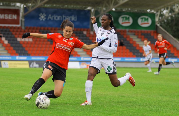 Eyjakonur ætla að vera með í baráttunni | Myndir Óskar Ófeigur Jónsson skrifar 9. ágúst 2013 19:53 Shaneka Jodian Gordon. Mynd/Arnþór ÍBV sótti þrjú stig í Víkina í síðasta leiknum í 11. umferð Pepsi-deildar kvenna sem fram fór í kvöld. ÍBV vann HK/Víking 1-0 og er með jafnmörg stig og Breiðablik í 3. til 4. sæti. Arnþór Birkisson, ljósmyndari Vísis og Fréttablaðsins, var á Víkingsvellinum í kvöld og náði þessum skemmtilegu myndum hér fyrir ofan. Það var Shaneka Jodian Gordon sem skoraði eina mark leiksins á 60. mínútu leiksins en þetta var hennar níunda deildarmark í sumar. Hk/Víkingur er í næstneðsta sæti deildarinnar en þetta var fimmta tap Fossvogsliðsins í röð. Valskonur tóku annað sætið af Blikum með 2-1 sigri í innbyrðisleik liðanna í gærkvöldi og hafa nú eins stigs forskot á Breiðablik og ÍBV. Stjarnan er með tíu stiga forskot á toppnum og á Íslandsmeistaratitilinn vísan en það stefnir í mikla baráttu um annað sætið milli Vals, Breiðabliks og ÍBV. Upplýsingar um markaskorara eru frá úrslit.net. Pepsi Max-deild kvenna Mest lesið Umboðsmaður hótaði leikmanni með byssu Fótbolti Söguleg byrjun OKC á tímabilinu Körfubolti Emilía opnaði markareikninginn gegn Ingibjörgu Fótbolti O'Neil tekur ekki við Úlfunum á ný Fótbolti Yfirburðir Sunderland dugðu ekki til sigurs Enski boltinn Alfreð klæddist kvennatreyjunni á leiknum við Ísland Handbolti „Ísland í hópi með Norður-Kóreu og Íran“ Sport Spence og van de Ven báðust afsökunar Fótbolti „Búnt á skenkinn, Halli Egils á vegginn“ Sport Fyrsti sigur í hús hjá Genoa Fótbolti Fleiri fréttir Fanndís hefur ekkert heyrt frá Val og íhugar að hætta „Það verður hundleiðinlegt að spila við Val“ Hermann tekinn við Val Fóru nýja leið í ár og auglýstu eftir þjálfara: Tommy Nielsen ráðinn Pablo og Óskar Örn inn í þjálfarateymi Hauka FH-ingar kveðja Kjartan Henry Tölur úr Bestu: Bjartur Bjarmi fór í flestar tæklingar af öllum Gísli semur við Skagamenn Óskar Smári tekur við Stjörnunni Bretinn ráðinn tæknilegur ráðgjafi hjá Val Fram þvertekur fyrir metnaðarleysi og leitar að nýjum þjálfurum Tölur úr Bestu: Hallgrímur Mar bjó til langflest færi „Mjög sáttur með samninginn“ „Hefði séð eftir því alla ævi“ Magnús Már í viðræðum við HK Uppgjörið: Ísland - Norður-Írland 3-0 | Áfram hluti af elítunni Tölur úr Bestu 2025: Klúðraði langflestum dauðafærum í sumar FH bíður með að tilkynna nýjan þjálfara Óskar Hrafn fer ekki fet Birnir frá Akureyri í Garðabæ Hættir með Fram Heimir kynntur til leiks í Árbænum Túfa rekinn frá Val Leyndarmáli ljóstrað upp þegar Heimir og Björn kvöddu Leikmenn kusu Patrick og Guðmund Sjáðu bananabombu Antons Loga og önnur síðustu mörk tímabilsins Uppgjörið: Stjarnan - Breiðablik 2-3 | Stjarnan í Evrópu þrátt fyrir tap „Held að ég geti ekki gert mikið meira“ Uppgjörið: Vestri - KR 1-5 | KR bjargaði sér og sendi Vestra í Lengjudeildina Uppgjörið: ÍA - Afturelding 1-0 | Afturelding staldraði stutt við í efstu deild Sjá meira