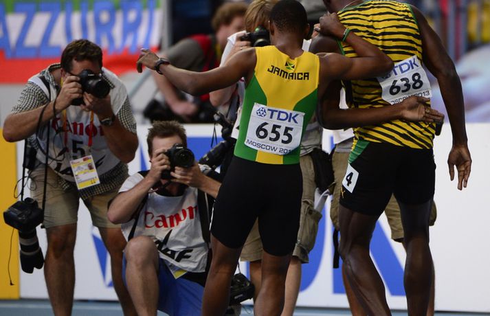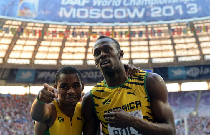 Usain Bolt kann alveg að fagna gullverðlaunum - myndir Óskar Ófeigur Jónsson skrifar 17. ágúst 2013 18:03 Usain Bolt og landi hans Warren Weir sem tók silfrið. Mynd/AFP Usain Bolt var heldur betur í essinu sínu á Luzhniki leikvanginum í Moskvu í dag þegar hann tryggði sér Heimsmeistaratitilinn í 200 metra hlaupi. Bolt vann öruggan sigur og vann því bæði 100 og 200 metra hlaupið eins og á síðustu Ólympíuleikum í London. Sýningin hjá Usain Bolt var hvergi nærri búin þegar hann var búinn að vinna hlaupið örugglega því áhorfendur höfðu ekki síður gaman af því þegar hann fagnað gullinu með öllum sínum stælum og stuðvenjum enda á ferðinni maður sem elskar sviðsljósið. Hér fyrir ofan má sjá myndir af fagnaðarlátum sem ljósmyndarar AFP-fréttastofunnar tóku af fagnaðarlátum Usain Bolt í dag. Hann var einnig afar sáttur með gullið sitt heldur einnig þá staðreynd að landi hans Warren Weir tók silfrið. Frjálsar íþróttir Mest lesið Líður alltaf yfir hana þegar hún kemur í mark Sport Einkunnir Íslands: Þrjár heitastar í frostinu Fótbolti Magnús Már í viðræðum við HK Íslenski boltinn Vísar slúðrinu til föðurhúsanna Enski boltinn Albert og Mikael Egill í vondum málum á Ítalíu Fótbolti „Við tókum bara þá ákvörðun að fara í Svanavatnið“ Fótbolti Ísak Bergmann lagði upp gegn Bayern Fótbolti Palace neitar að sleppa takinu á Liverpool Enski boltinn Dagskráin í dag: Íslenskur körfubolti og margt fleira Sport Uppgjörið: Njarðvík - Grindavík 85-84| Njarðvík fyrstar til að leggja Grindavík af velli Körfubolti Fleiri fréttir „Hefði séð eftir því alla ævi“ Rekinn fyrir ummæli sín um krabbameinssjúka handboltagoðsögn Magnús Már í viðræðum við HK Líður alltaf yfir hana þegar hún kemur í mark Dagskráin í dag: Íslenskur körfubolti og margt fleira Vísar slúðrinu til föðurhúsanna Uppgjörið: Njarðvík - Grindavík 85-84| Njarðvík fyrstar til að leggja Grindavík af velli Ísak Bergmann lagði upp gegn Bayern „Við tókum bara þá ákvörðun að fara í Svanavatnið“ Albert og Mikael Egill í vondum málum á Ítalíu „Snérist um að sýna okkar ‘identity’ sem lið“ Palace neitar að sleppa takinu á Liverpool „Eitthvað sem ég mun aldrei gleyma“ Ótrúleg dramatík í Garðabæ og á Sauðárkróki Janus Daði myndaður í heimsókn hjá Barcelona Landsliðsmennirnir öflugir í Evrópu Einkunnir Íslands: Þrjár heitastar í frostinu Viktor Bjarki skoraði og lagði upp í fyrsta byrjunarliðsleiknum Uppgjörið: Ísland - Norður-Írland 3-0 | Áfram hluti af elítunni Pedri gæti verið frá keppni til langs tíma Arteta fyrstur stjóranna á fætur Þorsteinn breytir engu á milli leikja Snjóbræðslukerfi Þróttar kom KSÍ til bjargar Tölur úr Bestu 2025: Klúðraði langflestum dauðafærum í sumar Gunnlaugur Árni í níunda sæti á heimslista Jordan gagnrýnir álagsstjórnun í NBA: Þú hefur skyldu til að láta sjá þig Segja spurningar vakna um stöðu Elísabetar Litu á hann sem risaeðlu en sjáið hvað er í tísku núna Formaðurinn hjálpaði til við að moka völlinn Skiptiborð hjá stelpunum í kvöld Sjá meira