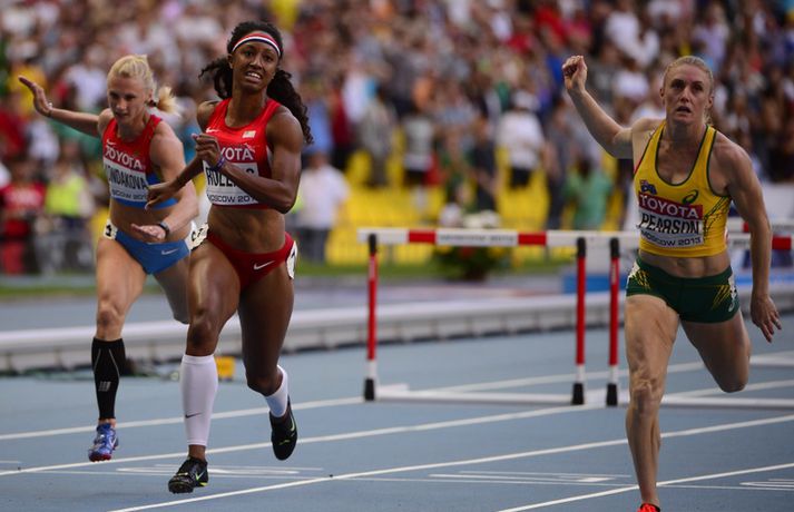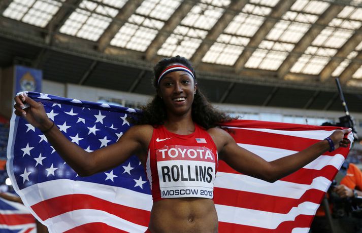 Bandaríska stúlkan Brianna Rollins er heimsmeistari í 110 metra grindarhlaupi eftir öruggan sigur í úrslitahlaupinu á HM í frjálsum íþróttum í Moskvu í dag. Þetta er fyrsti heimsmeistaratitilinn hjá Rollins sem fagnar 22 ára afmælisdegi sínum á morgun. Brianna Rollins er fædd 18. ágúst 1991 en hún setti nýtt bandarískt met fyrr á þessu ári og bætti þá met hinnar naglalöngu Gail Devers sem varð þrisvar sinnum heimsmeistari í þessari grein frá 1993 til 1999. Rollins hafði betur í baráttu við hina áströlsku Sally Pearson sem vann þessa grein bæði á HM í Daegu 2011 og á ÓL í London 2012. Þetta var fyrsta gull Bandaríkjamanna í þessari grein á HM síðan á HM í Osaka 2007. Brianna Rollins kom í mark á 12,44 sekúndum en Sally Pearson varð önnur á 12,50 sekúndum sem var besti tími Ástralans á árinu. Bretinn Tiffany Porter náði síðan bronsinu þegar hún kom í mark á nýju persónulegu meti - 12,55 sekúndum.
