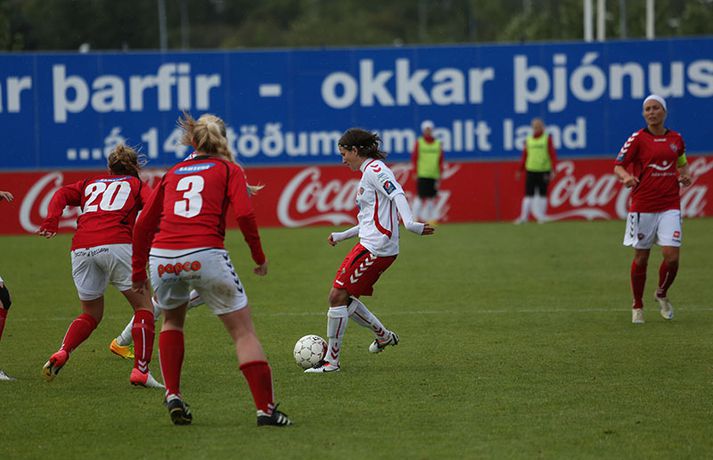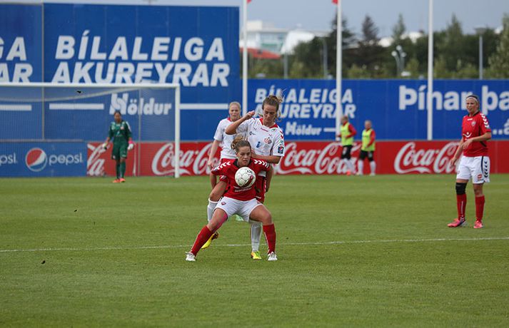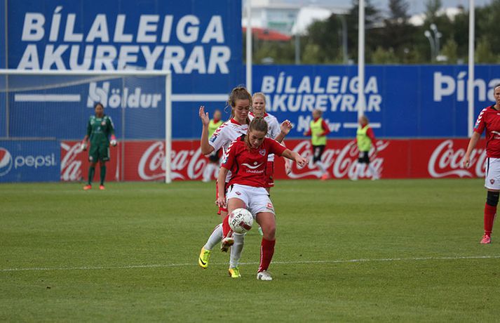Þór/KA stoppaði sigurgöngu Vals og hjálpaði Stjörnunni - myndir Óskar Ófeigur Jónsson skrifar 18. ágúst 2013 15:45 Mynd/Daníel Norðanstúlkur úr Þór/KA gáfu liði Stjörnunnar tækifæri á því að komast enn nærri Íslandsmeistaratitli kvenna í fótbolta í kvöld þegar norðanliðið stöðvaði sigurgöngu Vals í markalausu jafntefli á Vodafone-vellinum í kvöld. Stjarnan getur því náð tólf stiga forskoti með sigri á HK/Víkingi seinna í kvöld. Daníel Rúnarsson, ljósmyndari Fréttablaðsins og Vísis, var á leiknum í kvöld og náði þessum skemmtilegu myndum hér fyrir ofan. Valskonur voru búnar að vinna sjö deildarleiki í röð og alla þrjá leiki sína síðan að Edda Garðarsdóttir og Ólína Guðbjörg Viðarsdóttir fóru að leika með liðinu. Valsliðið fékk fjölda færa til að tryggja sér sigurinn í leiknum í dag en fóru illa með mörg frábær marktækifæri. Edda skoraði í fyrri hálfleik en var dæmd brotlega og því var markið dæmt af. Ólína Guðbjörg Viðarsdóttir fékk fín færi til að skora eins og fleiri leikmenn Valsliðsins en markið leit ekki dagsins ljós. Elín Metta Jensen, markhæsti leikmaður Valsliðsins, sofnar væntanlega seint í nótt, enda átti hún hiklaust að skora nokkur í þessum leik. Þetta var síðasti leikur liðs Þór/KA fyrir bikarúrslitaleikinn á móti Breiðabliki sem fer fram um næstu helgi. Mateja Zver gat stolið sigrinum í lokin þegar hún átti skot í slá.Mynd/Daníel Pepsi Max-deild kvenna Mest lesið Umboðsmaður hótaði leikmanni með byssu Fótbolti Söguleg byrjun OKC á tímabilinu Körfubolti Emilía opnaði markareikninginn gegn Ingibjörgu Fótbolti O'Neil tekur ekki við Úlfunum á ný Fótbolti Yfirburðir Sunderland dugðu ekki til sigurs Enski boltinn Alfreð klæddist kvennatreyjunni á leiknum við Ísland Handbolti „Ísland í hópi með Norður-Kóreu og Íran“ Sport Spence og van de Ven báðust afsökunar Fótbolti „Búnt á skenkinn, Halli Egils á vegginn“ Sport Fyrsti sigur í hús hjá Genoa Fótbolti Fleiri fréttir Fanndís hefur ekkert heyrt frá Val og íhugar að hætta „Það verður hundleiðinlegt að spila við Val“ Hermann tekinn við Val Fóru nýja leið í ár og auglýstu eftir þjálfara: Tommy Nielsen ráðinn Pablo og Óskar Örn inn í þjálfarateymi Hauka FH-ingar kveðja Kjartan Henry Tölur úr Bestu: Bjartur Bjarmi fór í flestar tæklingar af öllum Gísli semur við Skagamenn Óskar Smári tekur við Stjörnunni Bretinn ráðinn tæknilegur ráðgjafi hjá Val Fram þvertekur fyrir metnaðarleysi og leitar að nýjum þjálfurum Tölur úr Bestu: Hallgrímur Mar bjó til langflest færi „Mjög sáttur með samninginn“ „Hefði séð eftir því alla ævi“ Magnús Már í viðræðum við HK Uppgjörið: Ísland - Norður-Írland 3-0 | Áfram hluti af elítunni Tölur úr Bestu 2025: Klúðraði langflestum dauðafærum í sumar FH bíður með að tilkynna nýjan þjálfara Óskar Hrafn fer ekki fet Birnir frá Akureyri í Garðabæ Hættir með Fram Heimir kynntur til leiks í Árbænum Túfa rekinn frá Val Leyndarmáli ljóstrað upp þegar Heimir og Björn kvöddu Leikmenn kusu Patrick og Guðmund Sjáðu bananabombu Antons Loga og önnur síðustu mörk tímabilsins Uppgjörið: Stjarnan - Breiðablik 2-3 | Stjarnan í Evrópu þrátt fyrir tap „Held að ég geti ekki gert mikið meira“ Uppgjörið: Vestri - KR 1-5 | KR bjargaði sér og sendi Vestra í Lengjudeildina Uppgjörið: ÍA - Afturelding 1-0 | Afturelding staldraði stutt við í efstu deild Sjá meira