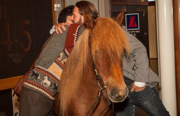 Meðfylgjandi myndir voru teknar á forsýningu kvikmyndarinnar Hross í oss í gærkvöldi. Eins og sjá má á myndunum voru gestir kátir. Kvikmyndin er eftir Benedikt Erlingsson sem hefur unnið til flestra leikhúsverðlauna sem hægt er; sem leikari, leikstjóri og leikskáld. Hann hefur áður sent frá sér tvær stuttmyndir en Hross í oss er hans fyrsta mynd í fullri lengd. Myndin fléttar saman sögur af lífsbaráttunni, viðureign mannsins við náttúruna og tilraunum hans til að beisla dýrslega krafta sköpunarverksins til sinnar eigin upphefðar, eða glötunar eins og segir í tilkynningu.Kvikmyndin er grimm sveitarómantík um manninn í hrossinu og hrossið í manninum. Örlagasögur af fólki í sveit eru sagðar frá sjónarhorni hestsins þar sem ást, kynlíf, hross og dauði fléttast saman með skelfilegum afleiðingum. Aðalleikarar myndarinnar eru auk þeirra Jarps, Skjóna og Yrju, þau Ingvar E. Sigurðsson, Steinn Ármann Magnússon, Charlotte Böving og Kristbjörn Kjeld ásamt fleirum. Framleiðandi er Friðrik Þór Friðriksson.Smelltu á efstu mynd í frétt til að skoða albúmið.Hér má sjá myndband sem tekið var í gær: Fjölnir Þorgeirsson og Bryndís Ásmundsdóttir.Hestur mætti á sýninguna.Steinn Ármann Magnússon og Jón Gnarr.Benedikt Erlingsson hélt ræðu fyrir fullum sal af fólki.