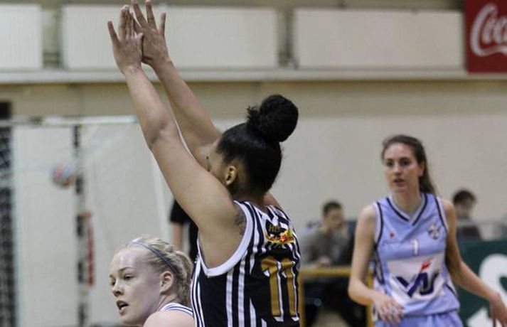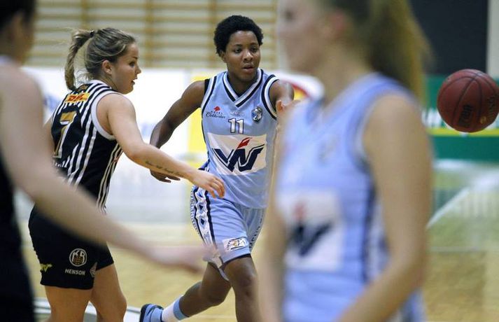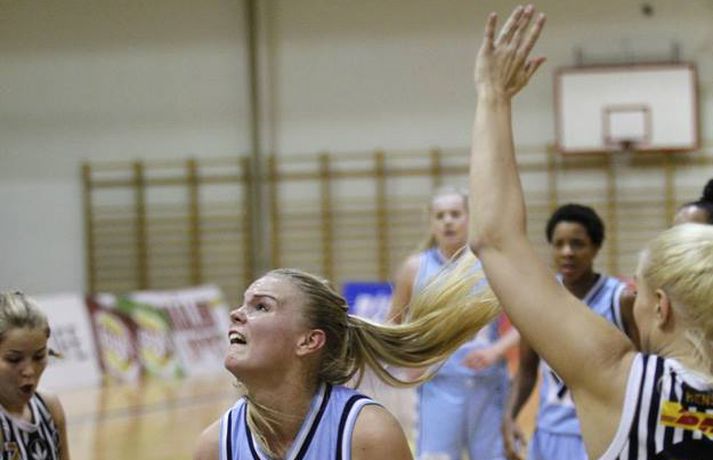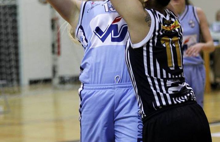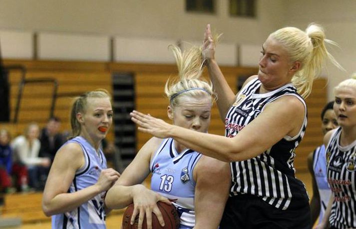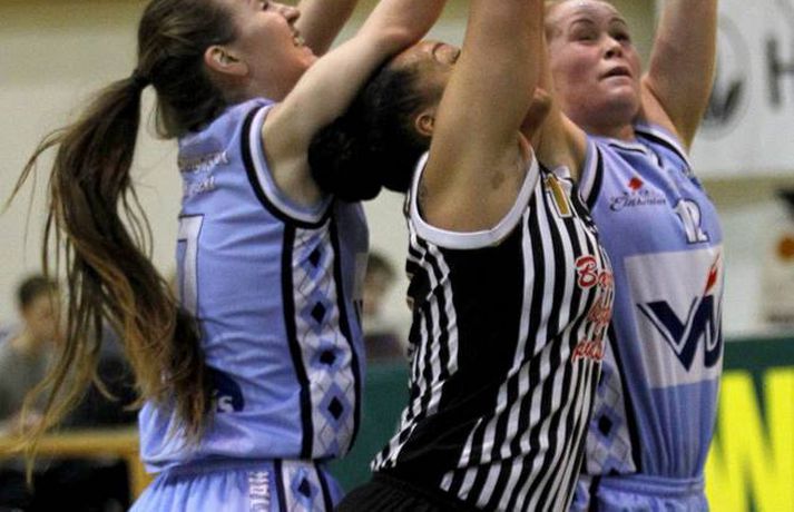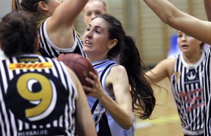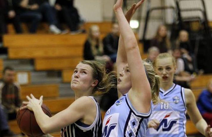 KR-stúlkur og Njarðvíkurstúlkur unnu bæði sína leiki í Domino´s-deild kvenna í körfuknattleik í kvöld. Njarðvík gerði góða ferð í Hafnarfjörðinn og vann Hauka 83-97. KR skellti Hamri á heimavelli 62-60.Pjetur Sigurðsson, ljósmyndari Vísis og Fréttablaðsins, var í DHL-höllinni og náði þessum skemmtilegu myndum hér fyrir ofan. Það var ekki margt sem benti til þess í hálfleik að Njarðvíkurstúlkur færu með sigur af hólmi gegn Haukum. Tíu stig skildu liðin að en Njarðvík mætti dýrvitlaust í síðari hálfleikinn og voru komnar þremur stigum yfir fyrir síðasta fjórðunginn. Haukastúlkur náðu forystunni aftur en voru fljótar að tapa henni niður og í stöðunni 75-75 gáfu gestirnir í og litu aldrei til baka. Fjórtán stiga sigur staðreynd. Hjá heimastúlkum í Haukum var Lele Hardy atkvæðamest með 33 stig, 16 fráköst, 9 stoðsendingar og 8 stolna bolta. Það má ekki miklu muna að hún nái fjórfaldri tvennu. Sylvía Rún Hálfdanardóttir skoraði 18 stig og tók 4 fráköst. Jasmine Beverly var með 19 stig og 9 fráköst fyrir Njarðvík, Erna Hákonardóttir skoraði 19 stig og Karen Dögg Vilhjálmsdóttir 15. Í Frostaskjólið mættu Hamarsstúlkur hvergi bangnar og leiddu í hálfleik gegn KR með tuttugu stigum 19-39. Það virðist sem KR-stúlkur hafi vaknað upp við vondan draum í hálfleik og mættu kröftugar til leiks í síðari hálfleik. Þær unnu leikhlutann með 19 stigum og voru komnar einu stigi á eftir gestunum. Fjórði leikhlutinn var jafn og spennandi en að lokum voru það KR-stúlkur sem voru sterkari og sigruðu 62-60. Hjá KR var Kelli Thompson stigahæst með 22 stig. Sigrún Sjöfn Ámundadóttir skoraði 13 og tók að auki 17 fráköst. Hjá Hamar var Íris Ásgeirsdóttir með 19 stig og Fanney Lind Guðmundsdóttir með fjórtán. Di´Amber Johnson skoraði 10 stig, tók tólf fráköst og stal sex boltum.Úrslit og stigaskor leikmanna í leikjunum í kvöld:Keflavík-Grindavík 84-67 (34-19, 16-17, 17-23, 17-8)Keflavík: Porsche Landry 22/6 fráköst/6 stoðsendingar/4 varin skot, Sara Rún Hinriksdóttir 22/5 fráköst/5 stoðsendingar, Lovísa Falsdóttir 12, Bryndís Guðmundsdóttir 10/10 fráköst/3 varin skot, Sandra Lind Þrastardóttir 8/7 fráköst/6 varin skot, Bríet Sif Hinriksdóttir 8, Ingunn Embla Kristínardóttir 2/4 fráköst.Grindavík: María Ben Erlingsdóttir 24/6 fráköst, Lauren Oosdyke 17/13 fráköst/7 stoðsendingar, Ingibjörg Jakobsdóttir 10, Pálína Gunnlaugsdóttir 7/4 fráköst, Helga Rut Hallgrímsdóttir 6/5 fráköst, Jeanne Lois Figeroa Sicat 3/5 stoðsendingar. Dómarar: Sigmundur Már Herbertsson, Björgvin RúnarssonSnæfell-Valur 72-60 (22-15, 20-17, 14-16, 16-12)Snæfell: Chynna Unique Brown 26/15 fráköst/5 stolnir, Guðrún Gróa Þorsteinsdóttir 9/7 fráköst/5 stoðsendingar, Helga Hjördís Björgvinsdóttir 8/8 fráköst, Hildur Björg Kjartansdóttir 8/10 fráköst, Hugrún Eva Valdimarsdóttir 7/4 fráköst, Hildur Sigurðardóttir 7/5 fráköst/7 stoðsendingar, Eva Margrét Kristjánsdóttir 5/4 fráköst, Rebekka Rán Karlsdóttir 2.Valur: Jaleesa Butler 20/8 fráköst/4 varin skot, Ragna Margrét Brynjarsdóttir 10/6 fráköst, Kristrún Sigurjónsdóttir 10/5 fráköst, Unnur Lára Ásgeirsdóttir 9/6 fráköst, Guðbjörg Sverrisdóttir 6, Hallveig Jónsdóttir 2, Rut Konráðsdóttir 2, María Björnsdóttir 1. Dómarar: Jón Guðmundsson, Isak Ernir Kristinsson KR-Hamar 62-60 (9-17, 10-22, 26-7, 17-14)KR: Kelli Thompson 22/5 fráköst, Sigrún Sjöfn Ámundadóttir 13/17 fráköst, Björg Guðrún Einarsdóttir 9/6 stoðsendingar, Þorbjörg Andrea Friðriksdóttir 8/7 fráköst, Bergþóra Holton Tómasdóttir 5, Ína María Einarsdóttir 3, Rannveig Ólafsdóttir 2.Hamar: Íris Ásgeirsdóttir 19/5 fráköst, Fanney Lind Guðmundsdóttir 14/5 fráköst, Di'Amber Johnson 10/12 fráköst/6 stolnir, Marín Laufey Davíðsdóttir 6/12 fráköst, Dagný Lísa Davíðsdóttir 6/7 fráköst, Jenný Harðardóttir 5. Dómarar: Eggert Þór Aðalsteinsson, Hakon Hjartarson Haukar-Njarðvík 83-97 (29-19, 25-25, 15-28, 14-25)Haukar: Lele Hardy 33/16 fráköst/9 stoðsendingar/8 stolnir, Sylvía Rún Hálfdanardóttir 18/4 fráköst, Lovísa Björt Henningsdóttir 10, Margrét Rósa Hálfdanardóttir 10/8 fráköst, Jóhanna Björk Sveinsdóttir 9/11 fráköst, Auður Íris Ólafsdóttir 3/4 fráköst.Njarðvík: Jasmine Beverly 19/9 fráköst, Erna Hákonardóttir 19, Karen Dögg Vilhjálmsdóttir 15, Guðlaug Björt Júlíusdóttir 12/8 fráköst/5 stoðsendingar, Aníta Carter Kristmundsdóttir 11, Salbjörg Sævarsdóttir 8/10 fráköst/5 stoðsendingar, Ásdís Vala Freysdóttir 6, Sara Dögg Margeirsdóttir 5, Andrea Björt Ólafsdóttir 2. Dómarar: Einar Þór Skarphéðinsson, Johannes Pall Fridriksson
