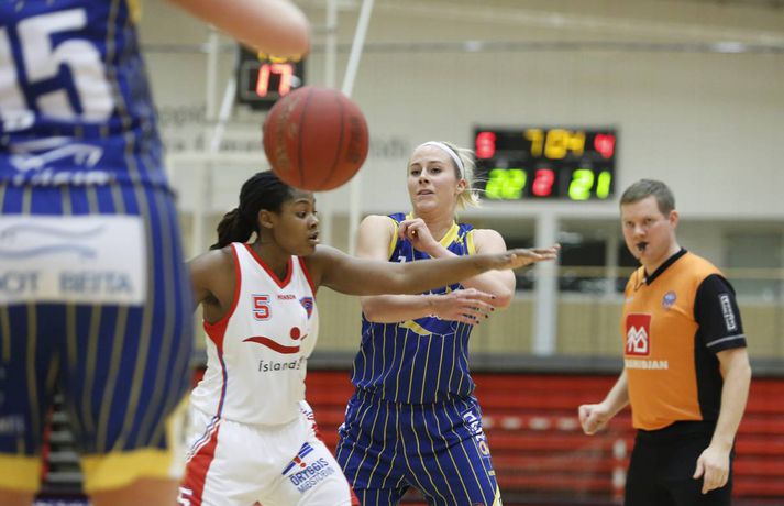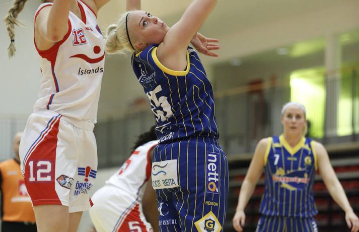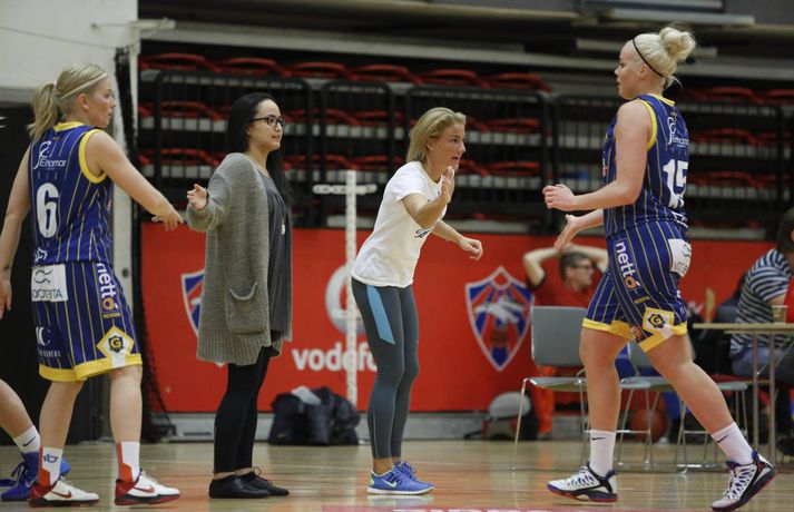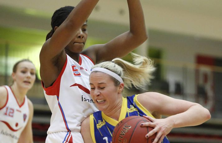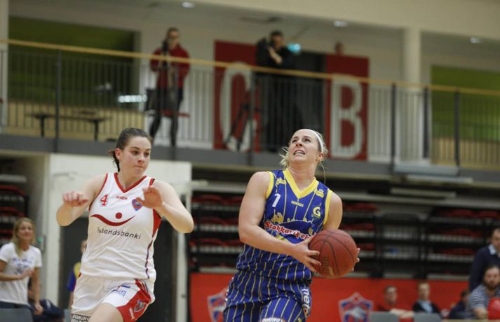 Valur vann Grindavík í Dominos deild kvenna í körfubolta í kvöld. Leikurinn var jafn og spennandi en ótrúleg hitni Vals um miðbik fjórða leikhluta skildi á milli þegar yfir lauk. Grindavík var einu stigi yfir í hálfleik 34-33. Það var hart barist strax í upphafi og varnir liðanna í aðalhlutverki. Aðeins 29 stig voru skoruð í fyrsta leikhluta en Valur var yfir að honum loknum 16-13. Jafnt var á öllum tölum en Grindavík náði þó mest sex stiga forystu í öðrum leikhluta 30-24. Það forskot dugði þó ekki lengi því Valur minnkaði muninn í eitt stig fyrir hálfleik 34-33. Grindavík náði frumkvæðinu í þriðja leikhluta og náði mest sjö stiga forystu 53-46 en Valur náði að jafna leikinn fyrir fjórða leikhluta með sjö síðustu stigum þriðja leikhluta. Frábær vörn liðsins auk þess sem Þórunn Bjarnadóttir var sjóðandi heit fyrir utan þriggja stiga línuna skilaði því að Valur jafnaði og allt var í járnum fyrir síðasta fjórðunginn. Valur hóf fjórða leikhluta af krafti og komst fimm stigum yfir 58-53 en þá hafði liðið skorað 12 stig í röð. Valur náði ellefu stiga forskoti þegar rúmar tvær mínútur voru eftir 71-60 þegar Unnur Lára Ásgeirsdóttir hitti úr tveimur þriggja stiga skotum í röð og Hallveig Jónsdóttir einu til viðbótar og reyndist það of stór biti fyrir lið Grindavíkur sem saknaði Pálínu Gunnlaugsdóttur sem er meidd.Valur-Grindavík 73-64 (16-13, 17-21, 20-19, 20-11)Valur: Þórunn Bjarnadóttir 23/4 fráköst, Jaleesa Butler 20/7 fráköst/3 varin skot, Unnur Lára Ásgeirsdóttir 10/6 fráköst, Kristrún Sigurjónsdóttir 8/6 fráköst/10 stoðsendingar, Hallveig Jónsdóttir 3, Ragna Margrét Brynjarsdóttir 3/4 fráköst, Guðbjörg Sverrisdóttir 2/4 fráköst/6 stoðsendingar, Ragnheiður Benónísdóttir 2/4 fráköst, Rut Herner Konráðsdóttir 2, María Björnsdóttir 0, Sara Diljá Sigurðardóttir 0, Sóllilja Bjarnadóttir 0.Grindavík: Lauren Oosdyke 20/10 fráköst, Ingibjörg Jakobsdóttir 19, Jeanne Lois Figeroa Sicat 9, Helga Rut Hallgrímsdóttir 8/12 fráköst, María Ben Erlingsdóttir 7/9 fráköst/6 stoðsendingar, Marín Rós Karlsdóttir 1/5 fráköst, Katrín Ösp Eyberg 0, Julia Lane Figueroa Sicat 0, Jóhanna Rún Styrmisdóttir 0/4 fráköst, Hrund Skuladóttir 0, Alda Kristinsdóttir 0. Ágúst: Misstum ekki trúna„Við fengum mjög mikið af opnum skotum í þessum leik og hittnin var ekkert frábær framan af en hún var frábær í lokin,“ sagði Ágúst Björgvinsson þjálfari Vals. Mér finnst vert að hrósa Grindavík fyrir mjög góðan leik. Þær mættu dýrvitlausar í þennan leik og tilbúnir að leggja sig allar fram án síns besta leikmanns með fullri virðingu fyrir öllum hinum leikmönnunum í liðinu. „Ég er mjög ánægður með mínar stelpur. Þær fá töluverða mótspyrnu í leiknum og halda einbeitingu. Þær fá mikið af opnum skotum og eru að setja þau niður í lokin. Þær héldu áfram að skjóta og missa ekki trúna. „Við spilum allar 40 mínúturnar alveg á fullu. Það er ekki hægt fara fram á að hitta úr öllum skotum, þó þau séu opin en það er hægt að fara fram á að allir leggi sig fram og það voru þær að gera,“ sagði Ágúst sem varð fyrir áfalli í leiknum þegar Guðbjörg Sverrisdóttir fer útaf vegna meiðsla í baki. „Hún læstist eitthvað í bakinu og vonandi nær hún sér sem fyrst, það er leikur strax á miðvikudaginn og bikarleikur næstu helgi. Við megum ekki við því að missa hana.“ Jón Halldór: Stoltur af liðinu„Þær eru ótrúlega duglegar og þjöppuðu sér heldur betur saman. Það er fullt af flottum stelpum í liðinu og þær börðumst allan leikinn. Það vantaði herslumuninn upp á að klára þetta,“ sagði Jón Halldór Eðvaldsson þjálfari Grindavíkur. „Þær settu einhverja fjóra þrista í fjórða leikhluta sem voru mjög stórir fyrir þær. Fram að því voru þær ekki búnar að hitta neitt fyrir utan Þórunni. Á dauða mínum átti ég von en ekki þessu. Hún var frábær í dag og það er mjög gaman að sjá eldri leikmenn koma til baka. Hún hefur átt í vandræðum en er greinilega komin í gírinn aftur. „Okkur vantaði smávegis í sókninni. Ef við hefðum skorað eina stóra körfu þegar þær voru komnar fjórum stigum yfir eða sett niður þrist þá veit ég ekki hvernig þetta hefði farið, það vantaði smá í restina. „Ég er ótrúlega stoltur af þessum stelpum og ef þær halda svona áfram þá kvíði ég ekki framhaldinu,“ sagði Jón Halldór sem saknaði síns besta leikmanns í kvöld. „Pálína bíður eftir að komast til læknis sem verður á miðvikudaginn. Við vitum ekkert með þessi meiðsli. Eins og staðan er núna er hún meidd og verður ekki með enn um sinn. Við sjáum bara hvað setur og ef við náum að halda áfram að vinna eins og við gerum þá verður Pálína bara viðbót við liðið þegar hún kemur til baka. „Við erum að berjast við að komast í úrslitakeppnina en það má ekki gleyma því að Grindavík var í 2. deild fyrir 2 árum og rétt bjargaði sér frá falli í fyrra. Við erum í fjórða sæti eins og staðan er núna og árangurinn er ekki slæmur en auðvitað viljum við alltaf meira,“ sagði Jón Halldór. Leik lokið (73-64): Hittni Vals skildi á milli í lokin39. mínúta (71-64): Þetta er ekki nema sjö stig, þau geta verið fljót að fara.38. mínúta (71-60): Hallveig nú með þrist fyrir Val, þetta kallast að skjóta sig til sigurs.37. mínúta (68-60): Unnur Lára aftur með þrist!36. mínúta (65-59): Unnur Lára Ásgeirsdóttir með stóran þrist. Nú þarf Grindavík að skora og fara að fá stopp í vörninni.35. mínúta (62-59): Butler er komin með 18 stig fyrir Val og Þórunn er í 23 stigum. Oosdyke og Ingibjörg eru enn með 19 hvor fyrir Grindavík.34. mínúta (58-57): 