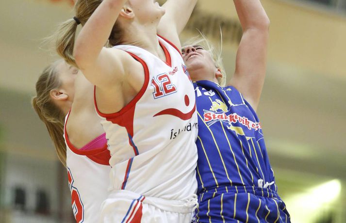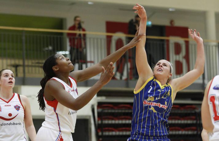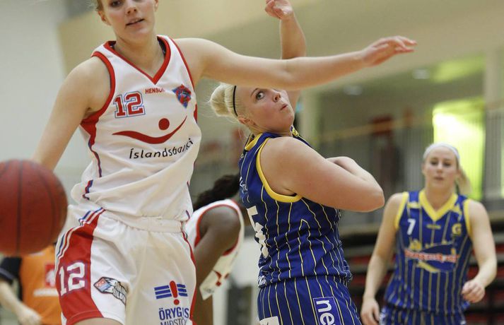 Umfjöllun, viðtöl og myndir: Valur - Grindavík 73-64 | Valur sigldi fram úr í fjórða leikhluta Guðmundur Marinó Ingvarsson í Vodafonehöllinni skrifar 24. nóvember 2013 12:14 mynd/valli Valur vann Grindavík í Dominos deild kvenna í körfubolta í kvöld. Leikurinn var jafn og spennandi en ótrúleg hitni Vals um miðbik fjórða leikhluta skildi á milli þegar yfir lauk. Grindavík var einu stigi yfir í hálfleik 34-33. Það var hart barist strax í upphafi og varnir liðanna í aðalhlutverki. Aðeins 29 stig voru skoruð í fyrsta leikhluta en Valur var yfir að honum loknum 16-13. Jafnt var á öllum tölum en Grindavík náði þó mest sex stiga forystu í öðrum leikhluta 30-24. Það forskot dugði þó ekki lengi því Valur minnkaði muninn í eitt stig fyrir hálfleik 34-33. Grindavík náði frumkvæðinu í þriðja leikhluta og náði mest sjö stiga forystu 53-46 en Valur náði að jafna leikinn fyrir fjórða leikhluta með sjö síðustu stigum þriðja leikhluta. Frábær vörn liðsins auk þess sem Þórunn Bjarnadóttir var sjóðandi heit fyrir utan þriggja stiga línuna skilaði því að Valur jafnaði og allt var í járnum fyrir síðasta fjórðunginn. Valur hóf fjórða leikhluta af krafti og komst fimm stigum yfir 58-53 en þá hafði liðið skorað 12 stig í röð. Valur náði ellefu stiga forskoti þegar rúmar tvær mínútur voru eftir 71-60 þegar Unnur Lára Ásgeirsdóttir hitti úr tveimur þriggja stiga skotum í röð og Hallveig Jónsdóttir einu til viðbótar og reyndist það of stór biti fyrir lið Grindavíkur sem saknaði Pálínu Gunnlaugsdóttur sem er meidd.Valur-Grindavík 73-64 (16-13, 17-21, 20-19, 20-11)Valur: Þórunn Bjarnadóttir 23/4 fráköst, Jaleesa Butler 20/7 fráköst/3 varin skot, Unnur Lára Ásgeirsdóttir 10/6 fráköst, Kristrún Sigurjónsdóttir 8/6 fráköst/10 stoðsendingar, Hallveig Jónsdóttir 3, Ragna Margrét Brynjarsdóttir 3/4 fráköst, Guðbjörg Sverrisdóttir 2/4 fráköst/6 stoðsendingar, Ragnheiður Benónísdóttir 2/4 fráköst, Rut Herner Konráðsdóttir 2, María Björnsdóttir 0, Sara Diljá Sigurðardóttir 0, Sóllilja Bjarnadóttir 0.Grindavík: Lauren Oosdyke 20/10 fráköst, Ingibjörg Jakobsdóttir 19, Jeanne Lois Figeroa Sicat 9, Helga Rut Hallgrímsdóttir 8/12 fráköst, María Ben Erlingsdóttir 7/9 fráköst/6 stoðsendingar, Marín Rós Karlsdóttir 1/5 fráköst, Katrín Ösp Eyberg 0, Julia Lane Figueroa Sicat 0, Jóhanna Rún Styrmisdóttir 0/4 fráköst, Hrund Skuladóttir 0, Alda Kristinsdóttir 0. Ágúst: Misstum ekki trúna„Við fengum mjög mikið af opnum skotum í þessum leik og hittnin var ekkert frábær framan af en hún var frábær í lokin,“ sagði Ágúst Björgvinsson þjálfari Vals. Mér finnst vert að hrósa Grindavík fyrir mjög góðan leik. Þær mættu dýrvitlausar í þennan leik og tilbúnir að leggja sig allar fram án síns besta leikmanns með fullri virðingu fyrir öllum hinum leikmönnunum í liðinu. „Ég er mjög ánægður með mínar stelpur. Þær fá töluverða mótspyrnu í leiknum og halda einbeitingu. Þær fá mikið af opnum skotum og eru að setja þau niður í lokin. Þær héldu áfram að skjóta og missa ekki trúna. „Við spilum allar 40 mínúturnar alveg á fullu. Það er ekki hægt fara fram á að hitta úr öllum skotum, þó þau séu opin en það er hægt að fara fram á að allir leggi sig fram og það voru þær að gera,“ sagði Ágúst sem varð fyrir áfalli í leiknum þegar Guðbjörg Sverrisdóttir fer útaf vegna meiðsla í baki. „Hún læstist eitthvað í bakinu og vonandi nær hún sér sem fyrst, það er leikur strax á miðvikudaginn og bikarleikur næstu helgi. Við megum ekki við því að missa hana.“ Jón Halldór: Stoltur af liðinu„Þær eru ótrúlega duglegar og þjöppuðu sér heldur betur saman. Það er fullt af flottum stelpum í liðinu og þær börðumst allan leikinn. Það vantaði herslumuninn upp á að klára þetta,“ sagði Jón Halldór Eðvaldsson þjálfari Grindavíkur. „Þær settu einhverja fjóra þrista í fjórða leikhluta sem voru mjög stórir fyrir þær. Fram að því voru þær ekki búnar að hitta neitt fyrir utan Þórunni. Á dauða mínum átti ég von en ekki þessu. Hún var frábær í dag og það er mjög gaman að sjá eldri leikmenn koma til baka. Hún hefur átt í vandræðum en er greinilega komin í gírinn aftur. „Okkur vantaði smávegis í sókninni. Ef við hefðum skorað eina stóra körfu þegar þær voru komnar fjórum stigum yfir eða sett niður þrist þá veit ég ekki hvernig þetta hefði farið, það vantaði smá í restina. „Ég er ótrúlega stoltur af þessum stelpum og ef þær halda svona áfram þá kvíði ég ekki framhaldinu,“ sagði Jón Halldór sem saknaði síns besta leikmanns í kvöld. „Pálína bíður eftir að komast til læknis sem verður á miðvikudaginn. Við vitum ekkert með þessi meiðsli. Eins og staðan er núna er hún meidd og verður ekki með enn um sinn. Við sjáum bara hvað setur og ef við náum að halda áfram að vinna eins og við gerum þá verður Pálína bara viðbót við liðið þegar hún kemur til baka. „Við erum að berjast við að komast í úrslitakeppnina en það má ekki gleyma því að Grindavík var í 2. deild fyrir 2 árum og rétt bjargaði sér frá falli í fyrra. Við erum í fjórða sæti eins og staðan er núna og árangurinn er ekki slæmur en auðvitað viljum við alltaf meira,“ sagði Jón Halldór. Leik lokið (73-64): Hittni Vals skildi á milli í lokin39. mínúta (71-64): Þetta er ekki nema sjö stig, þau geta verið fljót að fara.38. mínúta (71-60): Hallveig nú með þrist fyrir Val, þetta kallast að skjóta sig til sigurs.37. mínúta (68-60): Unnur Lára aftur með þrist!36. mínúta (65-59): Unnur Lára Ásgeirsdóttir með stóran þrist. Nú þarf Grindavík að skora og fara a