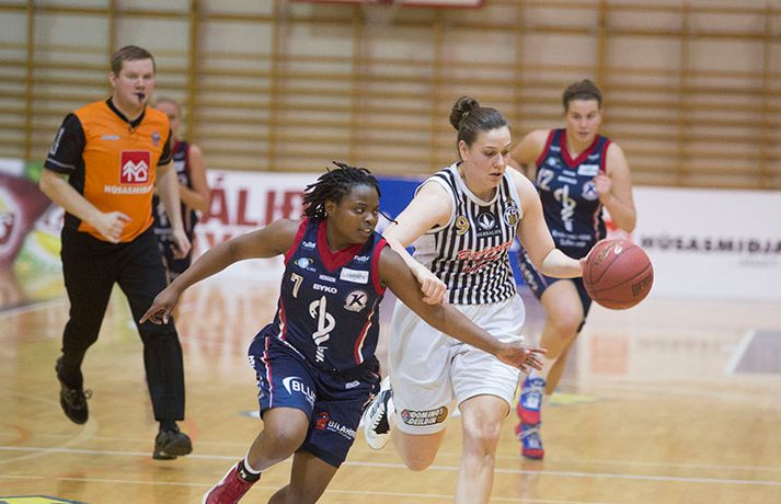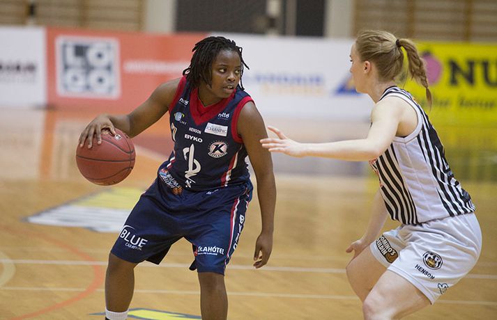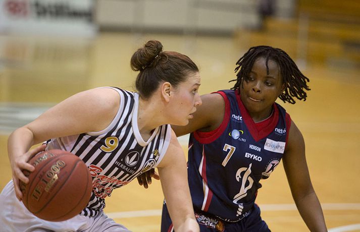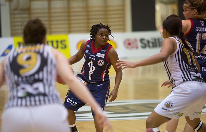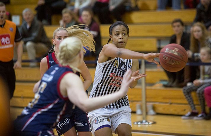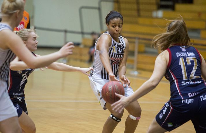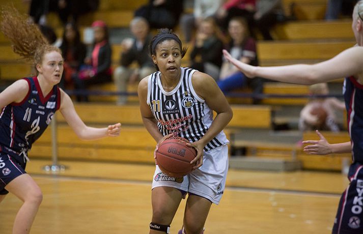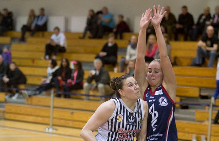 KR rúllaði yfir Íslandsmeistara Keflavíkur og topplið Dominos deildar kvenna í körfubolta 77-67 á heimavelli sínum í kvöld. Leikurinn var aðeins jafn í fyrsta leikhluta en að honum loknum voru yfirburðir KR miklir.Daníel Rúnarsson, ljósmyndari Vísis og Fréttablaðsins, var á leiknum í DHL-höllinni í kvöld og náði þessum skemmtilegum myndum sem má sjá hér fyrir ofan auk þess að nokkrar útvaldar myndir eru hér fyrir neðan. Með sigrinum blandaði KR sér af fullri alvöru í baráttuna um fjórða sæti deildarinnar en liðið hefur nú unnið fjóra af fimm síðustu leikjum sínum og er til alls líklegt. KR byrjaði leikinn mjög vel og var yfir nánast allan fyrsta leikhlutann. KR komst í 17-10 en þá skoraði Keflavík átta stig í röð en Björg Einarsdóttir svaraði með þrist og KR var tveimur stigum yfir eftir fyrsta leikhluta 20-18. KR mætti mjög ákveðið til leiks og lék frábæra vörn sem lagði grunninn að því að KR var 13 stigum yfir í hálfleik 43-30. KR barðist af mun meiri ákefð fyrir öllum lausum boltum og fráköstum auk þess sem liðið fór illa með svæðisvörn Keflavíkur. KR hélt uppteknum hætti í byrjun seinni hálfleiks og skoraði 12 fyrstu stig hálfleiksins og náði 25 stiga forystu 55-30. Varnarleikur KR var frábær og sjálfstraustið sem jafnan einkennir lið Keflavíkur var hvergi sjáanlegt. Sóknarleikur KR var einnig frábær og sýndi liðið að það getur vel att kappi við þau bestu þrátt fyrir að hafa verið í næst neðsta sæti deildarinnar fyrir leikinn en Keflavík var í því efsta. KR var 22 stigum yfir þegar fjórði leikhluti hófst 63-41 og ljóst að Keflavík þurfti að bæta sinn leik að öllu leyti til að komast inn í leikinn. Meiri ákefð var í leik Keflavíkur í fjórða leikhluta og það dugði liðinu til að minnka muninn í fimm stig 72-67 en skaðinn var skeður og KR fagnaði mikilvægum sigri. Keflavík er enn á toppi deildarinnar en nú með jafn mörg stig og Snæfell. Yngvi Páll: Leikmenn tilbúnir að vinna skítverkin„Við spiluðum mjög vel í kvöld, sérstaklega fyrri hálfleikinn og bróður partinn af þriðja leikhluta. Svo lendum við í því sem verður oft hættulegt, við förum að verja forskot eins og eitthvað sé komið sem er ekki geirneglt,“ sagði Yngvi Páll Gunnlaugsson þjálfari KR. „Keflavík gerði gott áhlaup á okkur en sem betur fer stóðust við það og kláruðum sterkt. „Það er heilmikill karakter í þessu liði. Við höfum þurft að sýna meiri yfirvegun og sem betur fer náðum við því í þessum leik. Núna höfum við náð tveimur sigurleikjum í röð gegn mjög sterkum liðum í toppbaráttunni sem er góðs viti fyrir okkur,“ sagði Yngvi en KR hefur unnið tvö efstu lið deildarinnar í síðustu tveimur leikjum sínum. „Við erum með marga menn í meiðslum eins og mörg önnur lið en þær sem komu inn stóðu sig frábærlega og ég er mjög ánægður með liðið í dag. „Það má ekki gleyma því að við erum eina liðið sem hefur spilað fjóra leiki útlendingslaus í vetur, af þessum tapleikjum okkar. Persónulega finnst mér ekkert ósanngjarnt að við séum að fá sárabætur í kjölfarið. „Nú kemur Kaninn inn og hún er sterk en hún gerir alla aðra betri og það er það sem við viljum, við viljum vinna þetta á liðsheildinni,“ sagði Yngvi Páll en Ebone Henry styrkir lið KR mikið og þá ekki síst þar sem hún er mjög sterk jafnt í vörn sem sókn. „Hún var varnarmaður ársins í sinni háskóladeild og stigahæsti leikmaðurinn. Þetta er flottur leikmaður og ólíkt þeirri sem var á undan þá er hún í hörku formi og hún er rosalega auðþjálfanleg. „Sigrún (Sjöfn Ámundadóttir) átti frábæran leik líka og það má ekki gleyma því að við erum með fullt af íslenskum góðum leikmönnum sem leggja sitt á vogarskálarnar. „Því er ekki neitað að útlendingsgildið í kvennaboltanum er svo mikilvægt. Það hjálpar líka að vera með leikmenn sem eru tilbúnir að leyfa útlendingnum að ljóma og vinna skítverkin.“ Andy: Getum unnið alla og tapað fyrir öllum„Það er alltaf vonbrigði að tapa en við spiluðum ekki af nægum krafti í kvöld. Framkvæmdin okkar var ekki góð en þær léku mjög vel. Það eru tvær hliðar á öllum peningum,“ sagði Andy Johnston þjálfari Keflavíkur. „Stundum leikur maður ekki nógu vel og ekki af þeim krafti sem þarf. Við gerðum það ekki í dag og þannig er körfuboltinn. „Við pössuðum ekki nógu vel upp á boltann og vorum ekki nógu beittar. „Ég segi liðinu það oft og iðulega að hver leikur og hvert kvöld er frábrugðið því á undan. Ef við mætum ekki af krafti til leiks getum við tapað fyrir hvaða liði sem er en ef við mætum af krafti getum við unnið hvaða lið sem er eins og við höfum sýnt á tímabilinu. „Yfirleitt mætum við af krafti og við höfum náð góðum árangri með ungt lið og tvo byrjunarliðsmenn fjarverandi. Ég er ánægður með stöðu okkar í deildinni en ég er ekki ánægður með frammistöðu okkar í kvöld. „Við lékum af meiri krafti í fjórða leikhluta og þar sést munurinn á okkar leik í kvöld,“ sagði Andy. Leik lokið (77-67): Sanngjarn sigur KR40. mínúta (74-67): Bryndís með þrist og Henry svarar með 2 vítum í viðbót.39. mínúta (72-64): Ebone Henry með tvö víti niður, komin í 19 stig. Porche Landry svarar með þremur stigum og er komin í 28 stig.39. mínúta (70-61): Átta stig á mínútu og þarf af tveir þristar í röð og Keflavík á skyndilega möguleika í þessum leik. Þetta gerist svo hratt.38. mínúta (70-53): Keflavík kemur ekki til baka úr þessu.37. mínúta (70-51): Keflavík pressar en pressan var ekki góð. Björg með þrist og er komin með 13 stig.36. mínúta (67-51): Keflavík hefur ekki komist nær en 16 stig