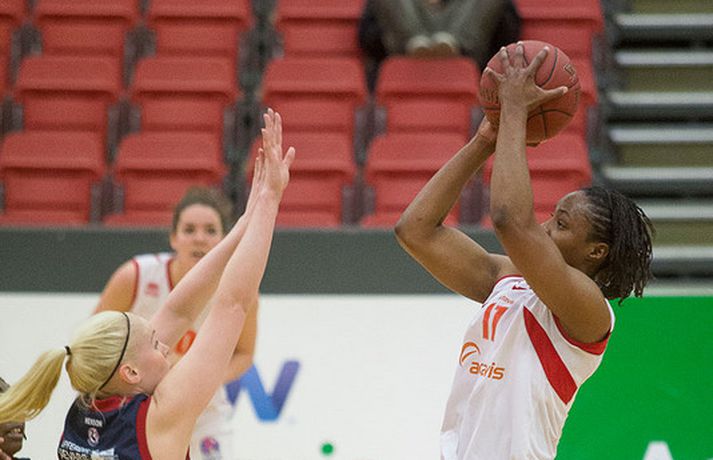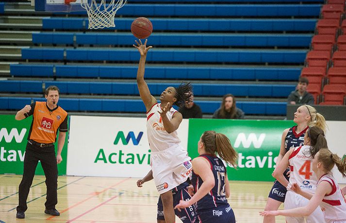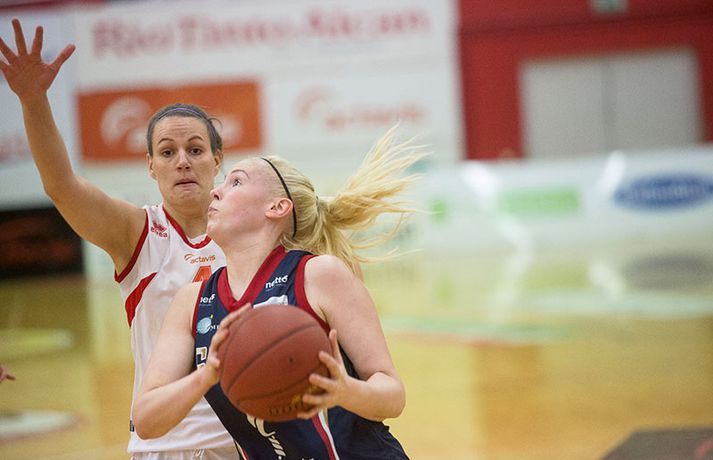 Haukakonur tóku annað sætið af Keflavík með því að vinna 26 stiga sigur á Keflavík, 85-59, í Dominos-deild kvenna í körfubolta í kvöld. Liðin eru jöfn að stigum en Haukaliðið er búið að vinna tvo af þremur innbyrðisleikjum liðanna.Daníel Rúnarsson, ljósmyndari Vísis og Fréttablaðsins, var á leiknum á Ásvöllum í kvöld og náði full af skemmtilegum myndum sem má sjá hér fyrir ofan og neðan. Allar myndirnar eru á myndaflekanum hér fyrir ofan en nokkrar af þeim bestu eru síðan fyrir neðan fréttina. Lele Hardy átti enn einn stórleikinn í Haukaliðinu en hún bar með 40 stig og 24 fráköst í þessum sigri. Margrét Rósa Hálfdanardóttir skoraði 16 stig og Jóhanna Björk Sveinsdóttir bauð upp á Dennis Rodman línu með því að skora taka 13 fráköst en skori ekki eitt einasta stig. Haukaliðið vann fyrsta leikhlutann 23-18 og var áfram fimm stigum yfir í hálfleik, 46-41. Frábær þriðji leikhluti lagði síðan grunn að sigri Haukaliðsins en hann vann Haukaliðið 26-10 og náði 21 stigs forskoti fyrir lokaleikhlutann. Sigur Haukaliðsins var aldrei í hættu í lokaleikhlutanum og þær eru nú með lykilstöðu í innbyrðisviðureignum liðanna enda búnar að vinna tvo síðustu leikina við Keflavík með samtals 57 stigum.Haukar-Keflavík 85-59 (23-18, 23-23, 26-10, 13-8)Haukar: Lele Hardy 40/24 fráköst/5 stoðsendingar, Margrét Rósa Hálfdanardóttir 16/5 fráköst, Gunnhildur Gunnarsdóttir 10, Lovísa Björt Henningsdóttir 7/7 fráköst, Dagbjört Samúelsdóttir 5/8 fráköst, Auður Íris Ólafsdóttir 3/7 stoðsendingar, Þóra Kristín Jónsdóttir 2, Sylvía Rún Hálfdanardóttir 2.Keflavík: Sara Rún Hinriksdóttir 19/4 fráköst, Bryndís Guðmundsdóttir 16/6 fráköst, Porsche Landry 14/9 fráköst/7 stoðsendingar, Sandra Lind Þrastardóttir 4/4 fráköst, Bríet Sif Hinriksdóttir 4, Aníta Eva Viðarsdóttir 2.Telma Lind Ásgeirsdóttir hjá Keflavík.Mynd/DaníelAndy Johnston, þjálfari Keflavíkur.Mynd/DaníelBjarni Magnússon, þjálfari Hauka.Mynd/DaníelGunnhildur Gunnarsdóttir hjá Haukum.Mynd/DaníelLele Hardy hjá Haukum.Mynd/DaníelSara Rún Hinriksdóttir hjá Keflavík.Mynd/DaníelBryndís Guðmundsdóttir hjá Keflavík.Mynd/DaníelPorsche Landry hjá Keflavík.Mynd/Daníel