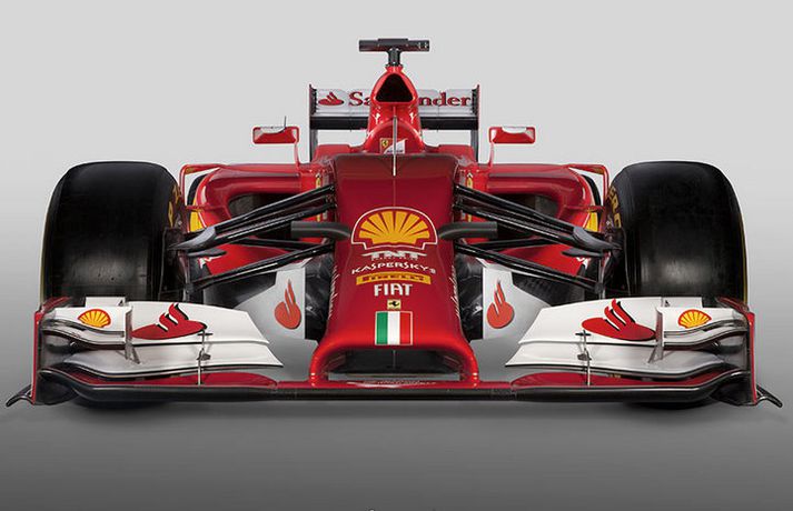 Fernando Alonso og Kimi Raikkonen voru að sjálfsögðu rauðklæddir þegar ítalski risinn Ferrari kynnti F14 T bílinn sem kapparnir munu notast við á tímabilinu sem senn fer í hönd. Bíllinn sem sá sextándi sem Ferrari smíðar til keppni í Formúlu 1 en hann hefur verið í hönnun undanfarin tvö ár. Kosning um nafn á bílinn fór fram á heimasíðu félagsins. Nýi bíllinn er með 1,6 lítra túrbó V6 vél og með nýtt nef í takt við breytingar á reglum keppninnar. McLaren kynnti einmitt nýjan bíl sinn í gær með öðruvísi útfærslu á nefinu. Nýju reglurnar miða að því að auka öryggi ökuþóra. Illa hefur gengið hjá Ferrari undanfarin ár. Alonso hefur mátt sætta sig við að hafna þrívegis í öðru sæti og einu sinni í fjórða sæti á árum sínum fjórum hjá Ferrari. Hann tók sæti Raikkonen árið 2010 en Finninn er nú mættur aftur í herbúðir ítalska félagsins.Hér má sjá myndband sem Ferrari sendi frá sér í tilefni dagsins. Það er skyggnst á bak við tjöldin í hönnunarferli nýja ökutækisins.