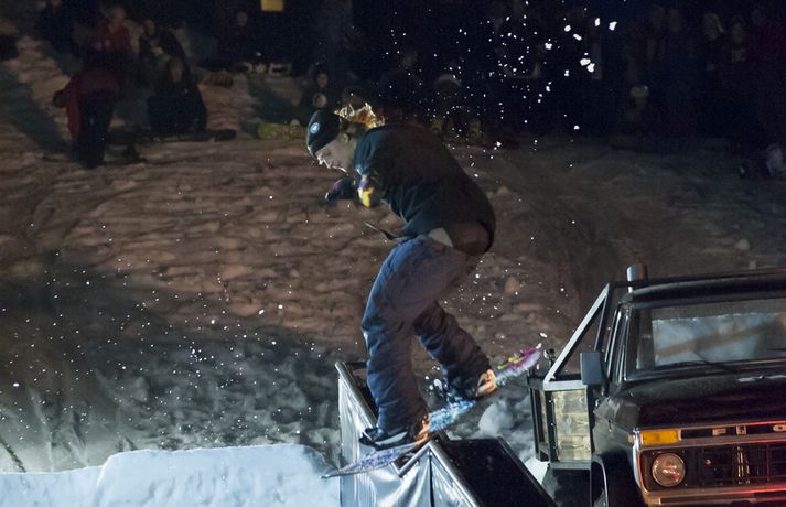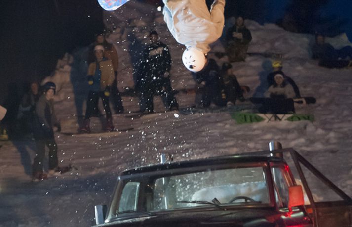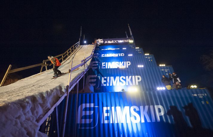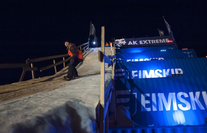 Stokkið yfir gáma á Akureyri Hápunktur AK Extreme hátíðarinnar fer fram í kvöld. Um er að ræða Big Jump keppni - sem verður í beinni útsendingu hér á Vísi. 5. apríl 2014 20:51