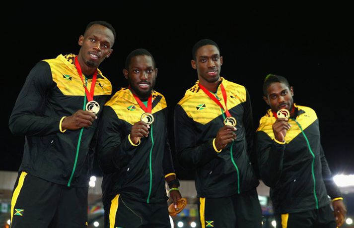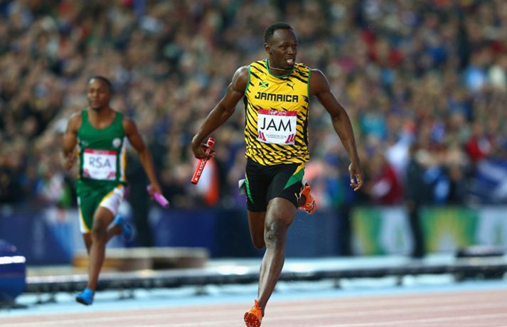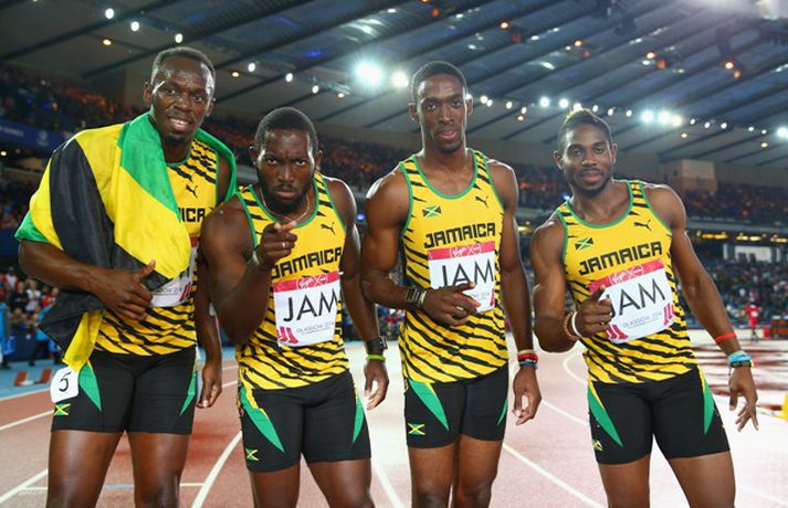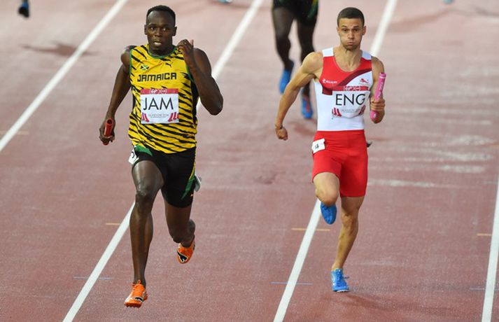 Spretthlauparinn Usian Bolt bætti enn einni rósinni í hnappagatið þegar hann vann til gullverðlauna í 4x100m boðhlaupi á Samveldisleikunum í Glasgow í gær. Sveit Jamaíka sem samanstóð, auk Bolt, af Kemar Baily-Cole, Nickel Ashmeade og Jason Livermore, kom í mark á tímanum 37,58 sekúndum, sem er met á Samveldisleikunum. Sveit Englands lenti í öðru sæti og sveit Trínidad og Tóbagó í því þriðja. Bolt er að komast aftur á skrið eftir hnémeiðsli sem hann varð fyrir í mars, en aðeins eru sex vikur síðan Jamaíkamaðurinn byrjaði að æfa aftur. Eftir hlaupið skokkaði Bolt sigurhring og gaf sér tíma fyrir myndatökur, eiginhandaáritanir og spjall við áhorfendur. Bolt hefur unnið til sex gullverðlauna á Ólympíuleikum og átta gullverðlauna á heimsmeistaramótum. Hann er heimsmethafi í 100m, 200m og 4x100m hlaupi.