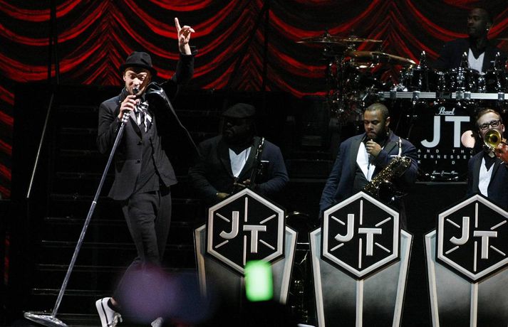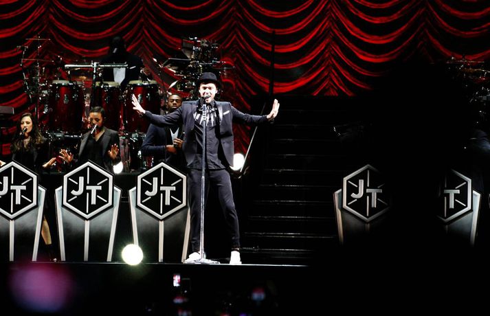 Timberlake hélt partí á heimsmælikvarða Kjartan Atli Kjartansson skrifar 24. ágúst 2014 22:23 Áhorfendur skemmtu sér konunglega á tónleikum Justin Timberlake í kvöld. Justin Timberlake bauð tónleikagestum í Kórnum í kvöld í sannkallað partí. Hann hélt gestum á tánum frá fyrstu mínútu alveg til þeirrar síðustu. Hann dansaði af innlifun; lék á píanó, hljómborð og gítar; söng af innlifun og sýndi raddsvið sitt. Hann söng ekki lögin sín, hann flutti þau. Justin hreyfði sig um sviðið með miklu sjálfstrausti, með miklu svægi. Hann spannaði allan skalann: Fór frá rólegum lögum yfir í hressari lög. Undirleikurinn frá hljómsveitinni The Tennessee Kids var magnaður. Fáir gátu setið á tónleikunum og voru stigagangarnir í stúkunni fullir af fólki sem dillaði sér í takt við tónlistina.Vísir/Andri Marinó Við hliðina á sviðinu voru tveir risaskjáir þar sem sjá mátti útsendingu Yahoo Live Nation frá tónleikunum. Þeir voru sýndir um allan heim og var Timberlake tíðrætt um fegurð landsins, hversu æðislegir tónleikagestir væru og hversu mikið hann naut þess að vera staddur á landinu. Frábær landkynning. Justin byrjaði tónleikana rólega. Áður en hann steig á svið var lagið My Way með Frank Sinatra leikið og sungu gestir með. Síðan var styrkurinn í hljóðkerfinu aukinn og Timberlake fór af stað. Lagið Pusher Love Girl hljómaði vel og kveikti upp í mannskapnum. Þirðja lag Justins, Rock Your Body, setti salinn í annan gír. Fólk tók meira við sér, söng með og hreyfði sig í takt. Skömmu seinna lýsti söngvarinn því yfir að stemningin fengi einkunnina 9,7 og ætlaði hann að ná henni upp í 10. Og það gekk heldur betur eftir og gott betur en það. Vísir/Andri Marinó Timberlake og The Tennessee Kids hlóðu í frábæra útgáfu af laginu My Love. Salurinn hreinlega ærðist af fögnuði. Hann róaði salinn og söng á háu nótunum, áður en taktfast undirspilið greip áhorfendur. Frábær afgreiðsla á flottu lagi og ekki skemmdi fyrir að sjá Timberlake taka svöl dansspor með laginu. JT hélt áfram að vinna sig í gegnum helstu slagarana sína. Lagið Summer Love greip ansi marga, enda var flutningurinn frumlegur. Lagið er frá árinu 2006 og var gífurlega vinsælt á sínum tíma. Grípandi viðlagið fékk fólk til að syngja með. Einn af hápunktum tónleikanna var fléttan á milli laganna Holy Grail og Cry Me a River. Holy Grail gerði Justin Timberlake með rapparanum Jay-Z og Cry Me a River er auðvitað eitt af hans þekktustu lögum. Hann tvinnaði lögin saman, þannig að skiptingin á milli þeirra var stutt. Cry Me a River hreinlega gerði allt vitlaust. Fólk iðaði, dansaði, söng. Það var ekki annað hægt en að hrífast með. Lagið hefur líklega aldrei hljómað svona vel.Vísir/Andri Marinó Þegar Justin Timberlake settist við píanó á sviðinu og bað fólk um að kveikja á ljósinu á símanum sínum eða setja kveikjara í loftið fengu líklega margir gæsahúð. Justin flutti lagið, Until the End of Time af slíkri innlifun að salurinn heillaðist. Samspil ljósa og tónlistar var hreinlega magnað. Hann sýndi þarna að hann er einn af allra færustu RnB-tónlistarmönnum heims. Taktvissan í söngnum vakti sérstaklega athygli. Fáir standast Timberlake snúning í svona lögum. Hann var duglegur að taka sín þekktustu lög. Lagið Seniorita er auðvitað orðið klassískt. Flutningurinn á því var afar vel heppnaður í kvöld. Dansspor söngvarans voru fumlaus og hjálparhellur hans á sviðinu skiluðu sínu. Vísir/Andri Marinó Justin tók svo upp gítar og flutti meðal annars lagið What Comes Around...Goes Around. Eitt af hans þekktustu lögum. Að heyra og sjá hann flytja lagið á gítar var mögnuð upplifun. Raddsvið söngvarans heyrist svo greinilega í laginu. Hæfileikar hans eru mældir á heimsmælikvarða og hann er einn af þeim allra bestu í sínu fagi. Það sannaði hann þegar hann flutti þetta þekkta lag. Hann endaði svo tónleikana á laginu Suit and Tie, einum af nýrri slögurum hans. Hann endaði lagið á að hneygja sig og þakka fyrir sig, en allir tónleikagestir vissu hvað var í vændum. Timberlake hvarf af sviðinu í örfáar mínútur og birtist svo aftur. Og þá kom rúsínan í pylsuendanum; lögin Sexy Back og Mirrors. Hann átti salinn á meðan hann flutti lögin. Öllu var tjaldaði til. Hljómsveitin var komin út á sviðið til hans, allir að dansa. Þvílíkt partí.Vísir/Andri Marinó Hann endaði svo tónleikana á því að þakka innilega fyrir sig. Þannig að gestir trúðu honum. Og maður gekk í burtu þakklátur fyrir þessa frammistöðu. Justin Timberlake spilaði í um 100 mínútur. Hann settist varla niður. Hann tók enga hvíld. Hann gaf áhorfendum í Kórnum allt sem hann átti og var ekki annað að sjá á gestum en að allir færu brosandi út. Justin Timberlake bauð í partí í kvöld. Hann fór yfir allan skallann, tók helstu lögin og skemmti fólki. Hann dansaði, spilaði á hljóðfæri, söng og spjallaði við áhorfendur. Hann virtist njóta þess að vera á sviðinu og áhrofendur virtust njóta þess að horfa á hann. Sviðsmyndin og lýsingin voru algjörlega til fyrirmyndar. Myndvinnslan sem sást á risaskjáunum við hliðina á sviðinu bætti miklu við upplifun manns. Partíið heppnaðist vel og var góð auglýsingin fyrir Ísland. Skipulag tónleikanna var frábært. Þetta sýnir okkur að það er vel hægt að halda stóra tónleika á Íslandi og virðist Kórinn henta afar vel í það. Það skemmdi líklega ekki fyrir að tónelikunum var sjónvarpað um allan heim. Söngvarinn tjaldaði öllu til og hefur vonandi skemmt heimsbyggðinni jafn vel og hann skemmti Íslendingum. Ein stærsta stjarna heims skein skært í Kópavogi í kvöld. Tónleikarnir eru líklega með þeim bestu sem hafa verið