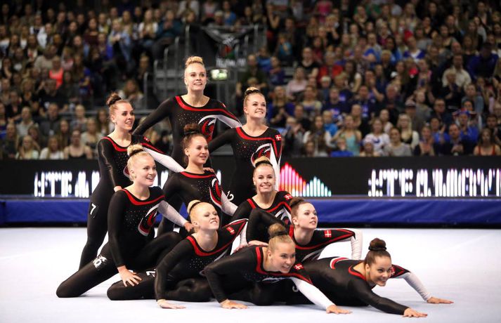 Ísland í 5. sæti í blönduðum flokki | Danir vörðu titilinn Danir vörðu titil sinn í blönduðum flokki á EM í hópfimleikum sem fer fram í Laugardalnum í dag. 18. október 2014 12:37