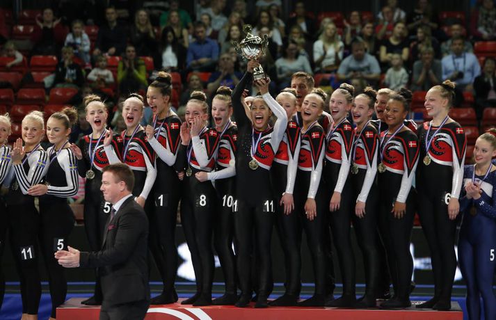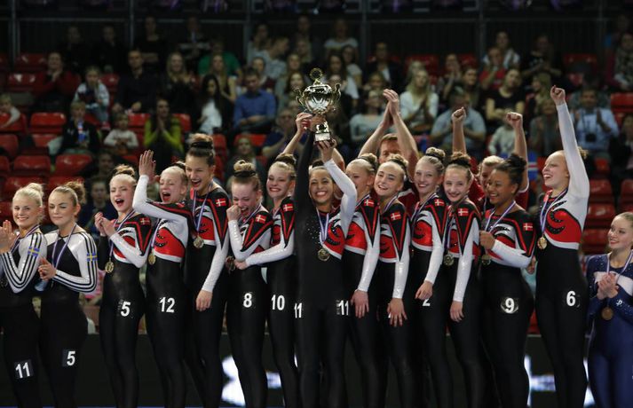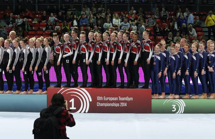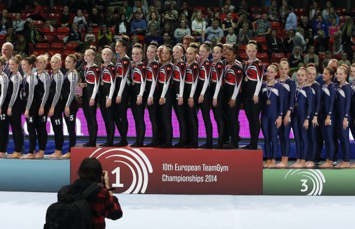 Íslenska stúlknalandsliðinu í hópfimleikum tókst ekki að verja Evrópumeistaratitil sinn á EM 2014 sem fram fer í sérútbúnu fimleikahöllinni í Laugardalnum, en úrslitakeppni unglinga fór fram í kvöld. Okkar stúlkur stóðu sig með miklum sóma og fengu bronsverðlaun, en Danir hefndu fyrir síðasta mót og hirtu gullið. Íslensku stúlkurnar urðu einmitt Evrópumeistarar í Árósum fyrir tveimur árum síðan.Valgarður Gíslason, ljósmyndari Fréttablaðsins og Vísis, var í Laugardalnum í kvöld og náði þessum glæsilegu myndum af þessum flottu stúlkum sem sjá má í myndasyrpunni hér að neðan.