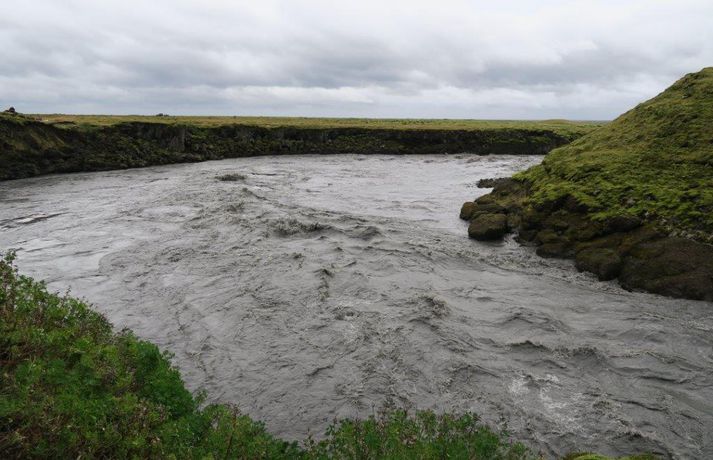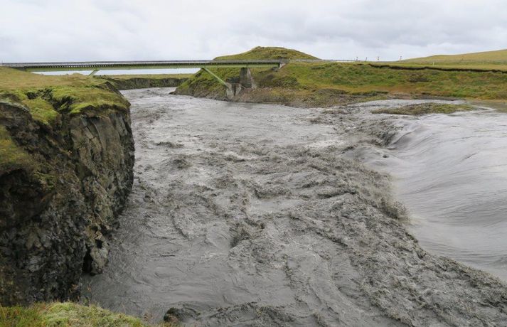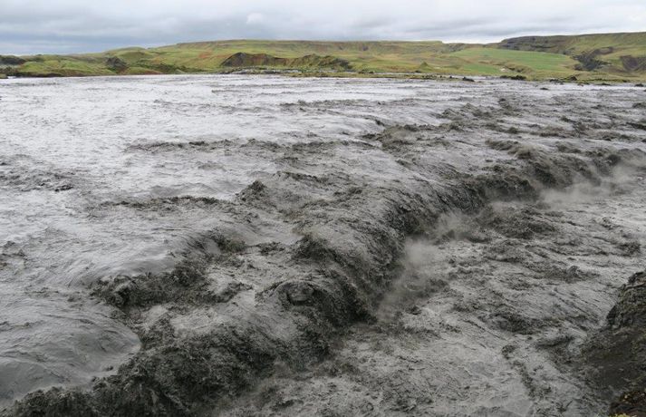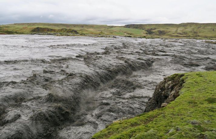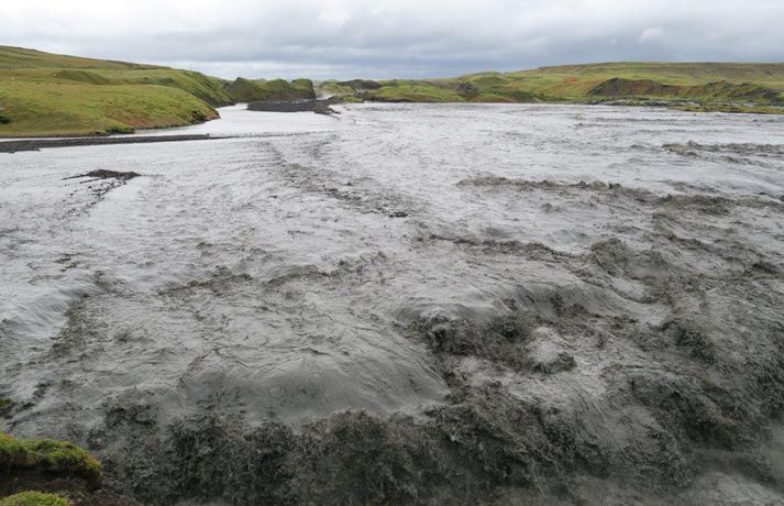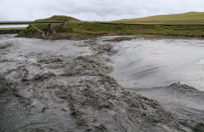 Ýtarleg umfjöllun Stöðvar 2: Stefnir í stærsta Skaftárhlaup frá upphafi mælinga Kristján Már Unnarsson skrifar 1. október 2015 21:15 Það er hreinlega eins og að horfa ofan í ólgandi leirpott að fylgjast með Skaftárhlaupinu sem hefur stóraukist með deginum. Þetta er alvöru Skaftárhlaup og stefnir í að það verði það stærsta frá því að mælingar hófust. Fréttamaður Stöðvar 2 var staddur við Eldvatn á Ásum þar sem búist er við að 80 prósent af hlaupvatninu muni fara niður. Það var ekki fyrr en tvö í nótt að mælingar snarjukust við Sveinstind þar sem rennslið fór úr 100 rúmmetrum á sekúndu upp í rúma 1500 rúmmetra á sekúndu um klukkan tvö í nótt. Rennslið hefur því fimmtánfaldast við Sveinstind og á það eftir að margfaldast niður við byggð. Ætlunin var að fara upp að bænum Skaftárdal en þar hafði áin flætt yfir veginn og ófært var að þessum sveitabæ. Það var eins og að horfa yfir haffsjó að líta yfir ánna þar sem hún rann yfir veginn. Veðurstofan er með mikinn viðbúnað vegna hlaupsins, þeir eru með vísindamenn uppi á jökli, við Sveinstind þar sem þeir mæla rennsli og taka sýni úr botninum og það eru Vísindamenn í byggð enda veitir ekki af, það stefnir í stærsta Skaftárhlaup síðan mælingar hófust. Hringvegurinn ekki í hættu þó það gæti flætt yfir hann.Lýst var yfir hættuástandi seinni partinn í dag en að sögn Sveins Rúnarssonar, yfirlögregluþjóns á Suðurlandi var það fyrst og fremst gert vegna þess hve vatnsmagnið hefur aukist gríðarlega á nokkrum klukkutímum. Sveinn segir þó að Hringvegurinn sé ekki í mikilli hættu en að loka hafi þurft hluta af Fjallabaksleið nyrðri. „Þó svo að það fari að renna yfir hringveginn mun það ekki loka honum. Við munum setja hjáleið hérna við Meðallandið þannig að þetta ætti ekki að hafa áhrif á umferð á hringveginum.“ Bændur í sveitinni eru ýmsu vanir og þekkja Skaftánna vel. Auður Guðbjörnsdóttir bóndi á Búlandi segir að helst muni hlaupið bitna á skepnunum. „Skeppnurnar eru alltaf aðeins í hættu, sérstaklega þær sem eru á túnum við Skaftá. Svo náttúrulega þegar hlaupið er búið situr leirinn eftir og rollurnar eru stundum að læðast á leirinn og þá geta þær fest þar. Ef það gerist liggja þær bara fyrir dauðanum náist þær ekki. “ Haraldur Á. LárussonHaraldur Á. LárussonHaraldur Á. LárussonHaraldur Á. LárussonHaraldur Á. LárussonHaraldur Á. LárussonHaraldur Á. LárussonHaraldur Á. LárussonHaraldur Á. LárussonHaraldur Á. LárussonHaraldur Á. Lárusson Hlaup í Skaftá Mest lesið Veðurvaktin: Snjókoman rétt að byrja og víða erfið færð Veður Ungur Miðflokksmaður gengst við rasisma og segir af sér Innlent Snjókoman rétt að byrja Innlent Bílar út af veginum á Reykjanesbraut Innlent Flugmaðurinn sem fórst millilenti oft í Reykjavík Innlent Eldur í blokk við Ljósheima Innlent Ráðgjafinn ráðinn í tímabundið starf eftir dýra skreppitúra Innlent Skvísur geti virkað sem hálfgerðir þroskaþjófar Innlent Fjölmargir farþegar fastir í flugvélum á Keflavíkurflugvelli Innlent Játar að hafa myrt Shinzo Abe Erlent Fleiri fréttir Reglur brotnar og þjónusta sem bjóða ætti út Þarf að borga bætur þrátt fyrir breytingar á hlaupahjólinu Hvatt til varúðar vegna snjóflóðahættu á suðvesturhorninu Meiri kvika en í síðasta gosi Eldur í blokk við Ljósheima Flugmaðurinn sem fórst millilenti oft í Reykjavík Halla leiðir krabbameinsráð ráðherra Snjókomumet og umferðaröngþveiti Segir sameiginlegum gildum Norðurlanda ógnað Fjölmargir farþegar fastir í flugvélum á Keflavíkurflugvelli Ungur Miðflokksmaður gengst við rasisma og segir af sér Sturlað ástand og United vettlingar prjónaðir í bílnum Mesta snjódýpt í Reykjavík sem mælst hefur í október Viðbragðsaðilar í mikilli hættu vegna bíla á sumardekkjum Bílar út af veginum á Reykjanesbraut Vill heimila Samkeppniseftirlitinu að ráðast í húsleitir Snjókoman rétt að byrja Píratar berjist gegn „rísandi bylgju lýðskrums og fasisma“ Skvísur geti virkað sem hálfgerðir þroskaþjófar Ráðgjafinn ráðinn í tímabundið starf eftir dýra skreppitúra Misvægi atkvæða bitnar mest á Kraganum Heitavatnslaust á Suðurnesjum og rafmagnslaust víða um land Skreppiferðir í Jysk meðal þess sem ráðgjafi rukkaði fyrir „Ég tel ekki tilefni til að íhuga stöðu mína“ Áhyggjur af lánaframboði og ógnarlangar biðraðir Vara við ferðum á Fagradalsfjall þar sem aðstæður geti orðið hættulegar Kristmundur verður lögreglustjóri á Austurlandi „Vonandi klárast þetta á morgun“ Sá látni var á rjúpnaveiðum þegar hann varð fyrir voðaskotinu Kvartanir mannsins um ómannúðlega meðferð áður til skoðunar hjá NEL Sjá meira