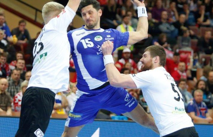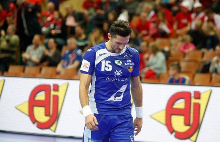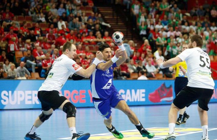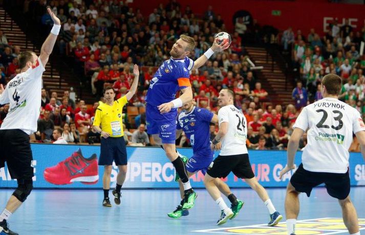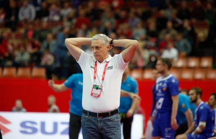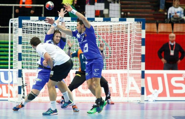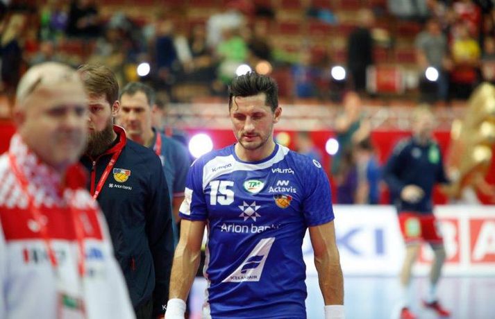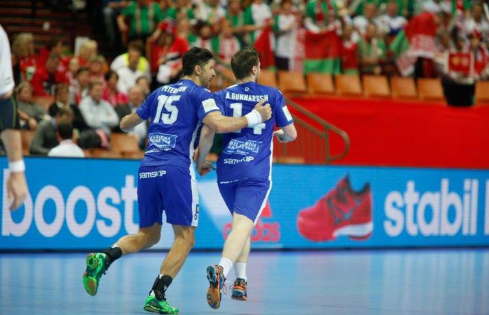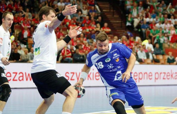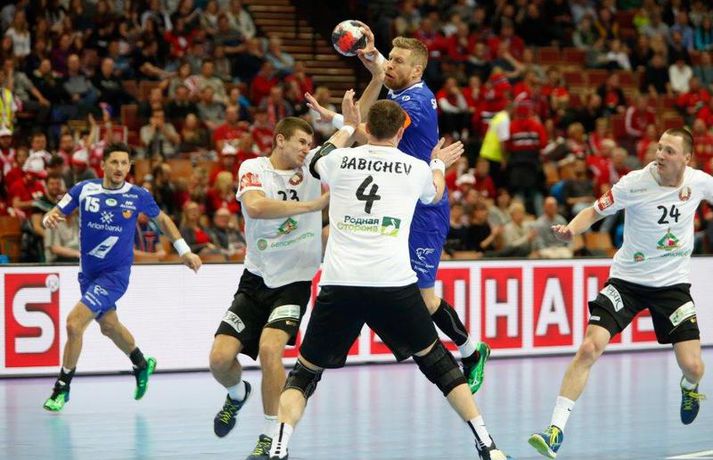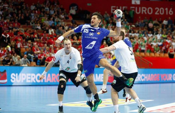 Umfjöllun og myndir: Ísland - Hvíta Rússland 38-39 | Varnarleysi í Katowice 17. janúar 2016 17:00 Ísland tapaði fyrir Hvít-Rússum, 38-39, í öðrum leik sínum í B-riðli á Evrópumótinu í Póllandi í dag.Valgarður Gíslason, ljósmyndari Vísis og Fréttablaðsins, var á leiknum og náði þessum myndum hér fyrir ofan. Eins og tölurnar gefa til kynna var sóknarleikur íslenska liðsins í leiknum frábær en varnarleikurinn var stórkostlega lélegur og markvarslan lítil sem engin. Til marks um það hefur íslenska liðið aldrei fengið á sig fleiri mörk í leik á Evrópumóti. Ísland náði fjögurra marka forystu, 24-20, snemma í seinni hálfleik og hefði þá átt að klára dæmið. Það tókst ekki, Hvít-Rússar voru eldsnöggir að jafna og voru svo með frumkvæðið á lokakaflanum og lönduðu að lokum eins marks sigri, 38-39. Ísland er því enn með tvö stig í B-riðli, jafnmörg og Hvít-Rússar og Króatar sem mæta Noregi á eftir. Alexander Petersson var markahæstur í íslenska liðinu með sex mörk. Róbert Gunnarsson, Guðjón Valur Sigurðsson og Arnór Þór Gunnarsson komu næstir með fimm mörk hver. Fyrri hálfleikurinn var mjög frábrugðinn leiknum gegn Noregi, miklu hraðari og mörkin fleiri. Snorri Steinn Guðjónsson kom inn í byrjunarliðið og byrjaði leikinn af krafti. Snorri var beittur og skoraði þrjú af fyrstu átta mörkum íslenska liðsins. Ásgeir Örn Hallgrímsson átti einnig góðan fyrri hálfleik og skoraði þrjú mörk úr fjórum skotum. Íslenski sóknarleikurinn gekk smurt þrátt fyrir að Aron Pálmarsson væri tekinn út en alls komust níu leikmenn Íslands á blað í fyrri hálfleik. Eina áhyggjuefnið voru tapaðir boltar sem voru sex í fyrri hálfleik. Varnarleikurinn var hins vegar hörmulegur, ólíkt því sem var gegn Noregi. Björgvin Páll Gústavsson byrjaði leikinn vel en varði aðeins tvö skot á síðustu 15 mínútum fyrri hálfleiks. Ísland var með frumkvæðið í fyrri hálfleiknum en tókst aldrei að slíta sig frá Hvít-Rússunum sem eru ólseigir. Íslensku strákarnir leiddu með einu marki í hálfleik, 18-17, og ljóst að þeir þyrfti að bæta varnarleikinn í seinni hálfleik. Sú varð þó ekki raunin. Íslenska liðið byrjaði seinni hálfleikinn af krafti og þegar sjö mínútur voru liðnar af honum var staðan orðin 24-20 og útlitið gott. Það forskot hvarf eins og dögg fyrir sólu. Hvít-Rússarnir jöfnuðu í 24-24 gegn varnarlausum Íslendingum. Lærisveinar Yuri Shetsov keyrðu grimmt í bakið á íslenska liðinu, skoruðu 10 mörk úr hraðaupphlaupum auk nokkurra marka eftir hraða miðju. Liðin skiptust á að skora næstu mínúturnar en smám saman náðu Hvít-Rússar yfirhöndinni. Sóknarleikur þeirra gekk smurt gegn skelfilega slakri íslenskri vörn. Það var sama hvað Hvít-Rússar gerðu, það gekk allt upp á meðan íslensku varnarmennirnir stóðu og horfðu á. Markvarslan var sömuleiðis engin. Hvít-Rússar voru sem áður sagði á undan að skora á lokakaflanum en alltaf jöfnuðu Íslendingar. Alexander fór á kostum í seinni hálfleik og skoraði að vild. Róbert var sömuleiðis öflugur inni á línunni en hann nýtti öll fimm skot sín í leiknum. Siarhei Shylovich kom Hvíta-Rússlandi í 38-37 þegar rúmar tvær mínútur voru eftir. Næsta sókn Íslands gekk erfiðlega og endaði með skoti Alexanders í hvít-rússnesku vörnina. Hvít-Rússar fóru í sókn og voru við það að fá dæmda á sig leiktöf þegar Shevtsov tók leikhlé. Að því loknu stilltu Hvít-Rússar upp í kerfi fyrir Uladzislau Kulesh sem þrumaði boltanum í netið og jók muninn í 39-37. Aron Kristjánsson tók leikhlé þegar 35 sekúndur voru eftir. Ísland þurfti mark sem fyrst og Arnór Þór fékk dauðafæri til að minnka muninn í eitt mark en Viachaslau Saldatsenka varði skot hans. Hvít-Rússar töpuðu boltanum strax aftur og Vignir Svavarsson minnkaði muninn í 38-39 en tíminn til að jafna metin var einfaldlega of lítill. Lokatölur 38-39, Hvíta-Rússlandi í vil. Ísland mætir Króatíu í lokaleik sínum í B-riðli á þriðjudaginn.vísir/valliAlexander Petersson, besti maður íslenska liðsins, svekktur í leikslok.Vísir/Valli EM 2016 karla í handbolta Mest lesið Vonast til að komast í Kórinn: „Menn hafa aldrei séð annað eins“ Fótbolti Fær þrjár milljónir á dag næstu sex árin fyrir að gera ekkert Sport Stöðufundur í Laugardal klukkan 10:30 Fótbolti Enska úrvalsdeildin í jólaköttinn Enski boltinn Elsta konan til klára Járnkarlinn Sport Nýi íþróttastjóri Kjartans stal mörgæs og endaði í fangelsi í Singapúr Fótbolti Markvörður Inter banaði háöldruðum manni í hjólastól Sport Brendan Rodgers sagði starfinu sínu lausu eftir ásakanir Fótbolti Tyrkneska sambandið segir dómara hafa veðjað á þúsundir leikja Fótbolti Einkaviðtal við Carrick: „Hálfgerð tískubylgja sem einkennir fótboltann í dag“ Enski boltinn Fleiri fréttir Gísli bjó til meira en þriðjung markanna Haukur magnaður í sigri Löwen Blær skoraði þrjú og lagði upp jöfnunarmarkið KA/Þór sótti sigur gegn Fram og stigalausar Stjörnukonur Fram kjöldró HK og spenna í Eyjum Meistararnir unnu gegn ÍBV og ÍR hafði betur gegn Selfyssingum Donni og félagar björguðu stigi undir lokin Afturelding komst upp að hlið Hauka Seldu bleika búninginn hennar Herrem fyrir meira en milljón „Leið vel þegar ég fór inn úr færinu“ Uppgjörið FH - Haukar 27-26 | Birgir Már tryggði FH sigur eftir spennutrylli Bernard fór mikinn en Valsmenn sluppu með sigurinn Fyrsti sigur Þórsara síðan í byrjun september Ómar Ingi með fullkomnan leik í Meistaradeildinni Guðjón Valur og lærisveinar hársbreidd frá því að vinna Kiel Hlakka til að sjá Viktor Gísla aftur og senda honum skilaboð Neyddar í sömu stöðu og Ísland og límdu melónur