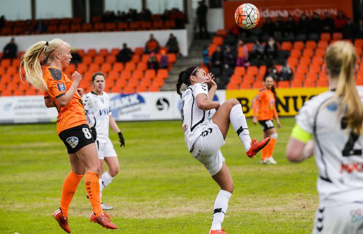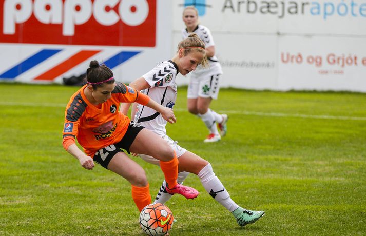ÍBV með góðan sigur í Árbæ | Myndir Anton Ingi Leifsson skrifar 18. maí 2016 19:50 Sóley Guðmundsdóttir með boltann, en Berglind Björg Þorvaldsdóttir, markaskorari Fylkis, sækir að henni. Vísir/Vilhelm ÍBV er komið með þrjú stiga í Pepsi-deild kvenna eftir 3-1 sigur á Fylki í Árbæ í kvöld. Þór/KA vann svo stórsigur á ÍA. Rebekah Bass kom ÍBV yfir á níundu mínútu og Nathasha Moraa Anasi tvöfaldaði forystuna á 25. mínútu. Þannig stóðu leikar í hálfleik. Lisa-Marie Woods kom svo ÍBV í 3-0 í upphafi síðari hálfleiks áður en Berglind Björg Þorvalsdóttir minnkaði metin. Lokatölur 3-1. ÍBV er með þrjú stig eftir fyrstu tvo leikina, en Fylkir er með eitt stig. Vonbrigðarbyrjun í bæði karla- og kvennaflokki í Árbænum. Þór/KA rúllaði yfir nýliða ÍA á Akureyri í dag. Sandra Stephany Mayor Gutierrez kom Akureyrarliðinu yfir eftir rúman hálftíma, en staðan var 1-0 í hálfleik. Í síðari hálfleik gerði Sandra María Jessen sér lítið fyrir og skoraði þrennu, en fyrsta markið kom af vítapunktinum. Lokatölur 4-0. Þór/KA náði því í sín fyrstu stig þarna, en þær töpuðu í fyrsta leiknum gegn Stjörnunni. ÍA er enn án stiga eftir tap gegn FH í fyrstu umferð.vísir/vilhelmvísir/anton Pepsi Max-deild kvenna Mest lesið Arsenal jafnaði rúmlega aldargamalt félagsmet Fótbolti Segir Amorim ekki geta gert kraftaverk Fótbolti Liverpool vann risaslaginn Fótbolti Jafnteflin ríkjandi í Meistaradeildinni í kvöld Fótbolti Keflavíkursigur í kaflaskiptum leik Körfubolti Uppgjörið: Njarðvík - Hamar/Þór 88-61 | Auðsóttur sigur Njarðvíkinga Körfubolti Sneypuför danskra til Lundúna Fótbolti Meistararnir lágu á heimavelli Fótbolti Lýsir eftir leiðtoga íslenska landsliðsins Handbolti Ísland lenti í algjörum martraðarriðli Fótbolti Fleiri fréttir Fram líka fljótt að finna nýja ást „Í ástarsorg er gott að finna sér nýja ást sem fyrst“ Fanndís hefur ekkert heyrt frá Val og íhugar að hætta „Það verður hundleiðinlegt að spila við Val“ Hermann tekinn við Val Fóru nýja leið í ár og auglýstu eftir þjálfara: Tommy Nielsen ráðinn Pablo og Óskar Örn inn í þjálfarateymi Hauka FH-ingar kveðja Kjartan Henry Tölur úr Bestu: Bjartur Bjarmi fór í flestar tæklingar af öllum Gísli semur við Skagamenn Óskar Smári tekur við Stjörnunni Bretinn ráðinn tæknilegur ráðgjafi hjá Val Fram þvertekur fyrir metnaðarleysi og leitar að nýjum þjálfurum Tölur úr Bestu: Hallgrímur Mar bjó til langflest færi „Mjög sáttur með samninginn“ „Hefði séð eftir því alla ævi“ Magnús Már í viðræðum við HK Uppgjörið: Ísland - Norður-Írland 3-0 | Áfram hluti af elítunni Tölur úr Bestu 2025: Klúðraði langflestum dauðafærum í sumar FH bíður með að tilkynna nýjan þjálfara Óskar Hrafn fer ekki fet Birnir frá Akureyri í Garðabæ Hættir með Fram Heimir kynntur til leiks í Árbænum Túfa rekinn frá Val Leyndarmáli ljóstrað upp þegar Heimir og Björn kvöddu Leikmenn kusu Patrick og Guðmund Sjáðu bananabombu Antons Loga og önnur síðustu mörk tímabilsins Uppgjörið: Stjarnan - Breiðablik 2-3 | Stjarnan í Evrópu þrátt fyrir tap „Held að ég geti ekki gert mikið meira“ Sjá meira
