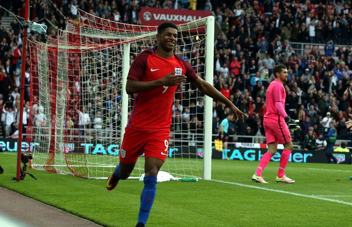 United-mennirnir sáu um mörkin hjá Englendingum í kvöld Óskar Ófeigur Jónsson skrifar 27. maí 2016 20:38 Marcus Rashford fagnar marki sínu í kvöld. Vísir/Getty England vann 2-1 sigur á Ástralíu í vináttulandsleik í Sunderland í kvöld en þetta var síðasti landsleikur Englendinga áður en Roy Hodgson sker hópinn niður um þrjá og velur þá 23 sem fara á Evrópumótið í Frakklandi. Gamli og nýi tíminn hjá Manchester United og enska landsliðinu sáum um mörkin í leiknum í kvöld. Hinn átján ára gamli Marcus Rashford skoraði eftir aðeins 135 sekúndur í sínum fyrsta landsleik og hinn þrítugi Wayne Rooney skoraði síðan í fyrsta sinn á landsliðsferlinum eftir að hafa komið inná sem varamaður. Báðir settu þeir met með þessum mörkum. Marcus Rashford var yngsti leikmaður enska landsliðsins sem skorar í sínum fyrsta landsleik og Wayne Rooney bætti við markamet sitt hjá landsliðinu og hefur nú skorað 52 mörk fyrir England. Marcus Rashford skoraði með sínu fyrsta skoti í sínum fyrsta leik með Manchester United, bæði í Evrópukeppni og ensku úrvalsdeildinni og hann lék það eftir í kvöld. Markið skoraði Rashford á 3. mínútu leiksins eftir að fyrirgjöf Raheem Sterling fór í varnarmann og datt fyrir hann í teignum. Wayne Rooney kom inná sem varamaður fyrir Adam Lallana í hálfleik og hann kom enska liðinu í 2-0 á 55. mínútu með laglegu langskoti eftir hraða sókn og sendingu frá Raheem Sterling. Eric Dier, leikmaður Tottenham, var ekki jafnheppinn og United-mennirnir þegar hann varð fyrir því að skalla boltann í gegnum klofið á markverðinum Fraser Forster og í eigið mark. Jose Mourinho tók við liði Manchester United í dag og nokkrum tímum seinna skora tveir verðandi leikmenn hans fyrir enska landsliðið. Hvort að það sé fyrirboði á tíma Mourinho á Old Trafford á hinsvegar eftir að koma í ljós.vísir/getty EM 2016 í Frakklandi Enski boltinn Mest lesið Líður alltaf yfir hana þegar hún kemur í mark Sport „Hefði séð eftir því alla ævi“ Íslenski boltinn „Mjög sáttur með samninginn“ Íslenski boltinn „Hann ætti bara að skrifa afsökunarbiblíuna“ Körfubolti Scholes hættir og setur einhverfan son sinn í fyrsta sætið Enski boltinn Rekinn fyrir ummæli sín um krabbameinssjúka handboltagoðsögn Handbolti Magnús Már í viðræðum við HK Íslenski boltinn Hefur spilað 16 mínútur og fengið tvö rauð spjöld Enski boltinn Rúmar tvær milljónir í boði ef þú finnur hundinn hans Aarons Ramsey Fótbolti Real Madrid vill stórar skaðabætur frá UEFA Fótbolti Fleiri fréttir Fantasýn: „Þessi vörn er eitthvað skrímsli“ Scholes hættir og setur einhverfan son sinn í fyrsta sætið Rúmar tvær milljónir í boði ef þú finnur hundinn hans Aarons Ramsey Carrick í einkaviðtali: Sigurinn á Anfield stór stund fyrir Man. Utd Hefur spilað 16 mínútur og fengið tvö rauð spjöld Bættu Evrópumet AC Milan liðsins með Gullit og Van Basten innanborðs Slot: Engin auka pressa við þetta tap Real Madrid vill stórar skaðabætur frá UEFA „Mjög sáttur með samninginn“ „Hefði séð eftir því alla ævi“ Magnús Már í viðræðum við HK Bað alla nema þjálfarann afsökunar Vísar slúðrinu til föðurhúsanna Ísak Bergmann lagði upp gegn Bayern „Við tókum bara þá ákvörðun að fara í Svanavatnið“ Albert og Mikael Egill í vondum málum á Ítalíu Palace neitar að sleppa takinu á Liverpool „Eitthvað sem ég mun aldrei gleyma“ Einkunnir Íslands: Þrjár heitastar í frostinu Viktor Bjarki skoraði og lagði upp í fyrsta byrjunarliðsleiknum Uppgjörið: Ísland - Norður-Írland 3-0 | Áfram hluti af elítunni Pedri gæti verið frá keppni til langs tíma Arteta fyrstur stjóranna á fætur Þorsteinn breytir engu á milli leikja Snjóbræðslukerfi Þróttar kom KSÍ til bjargar Tölur úr Bestu 2025: Klúðraði langflestum dauðafærum í sumar Segja spurningar vakna um stöðu Elísabetar Litu á hann sem risaeðlu en sjáið hvað er í tísku núna Formaðurinn hjálpaði til við að moka völlinn Formenn sambandanna hjálpuðu við að moka völlinn Sjá meira